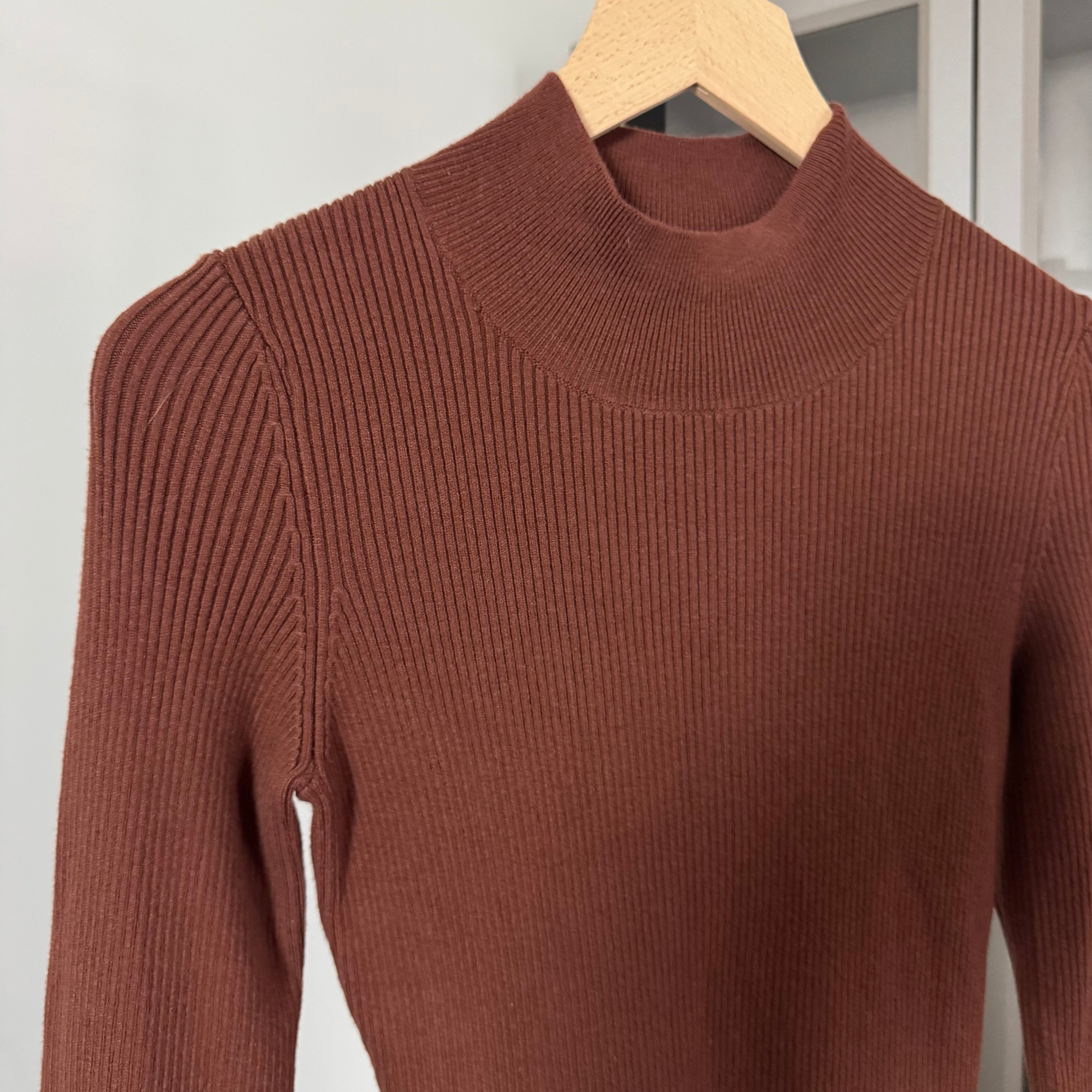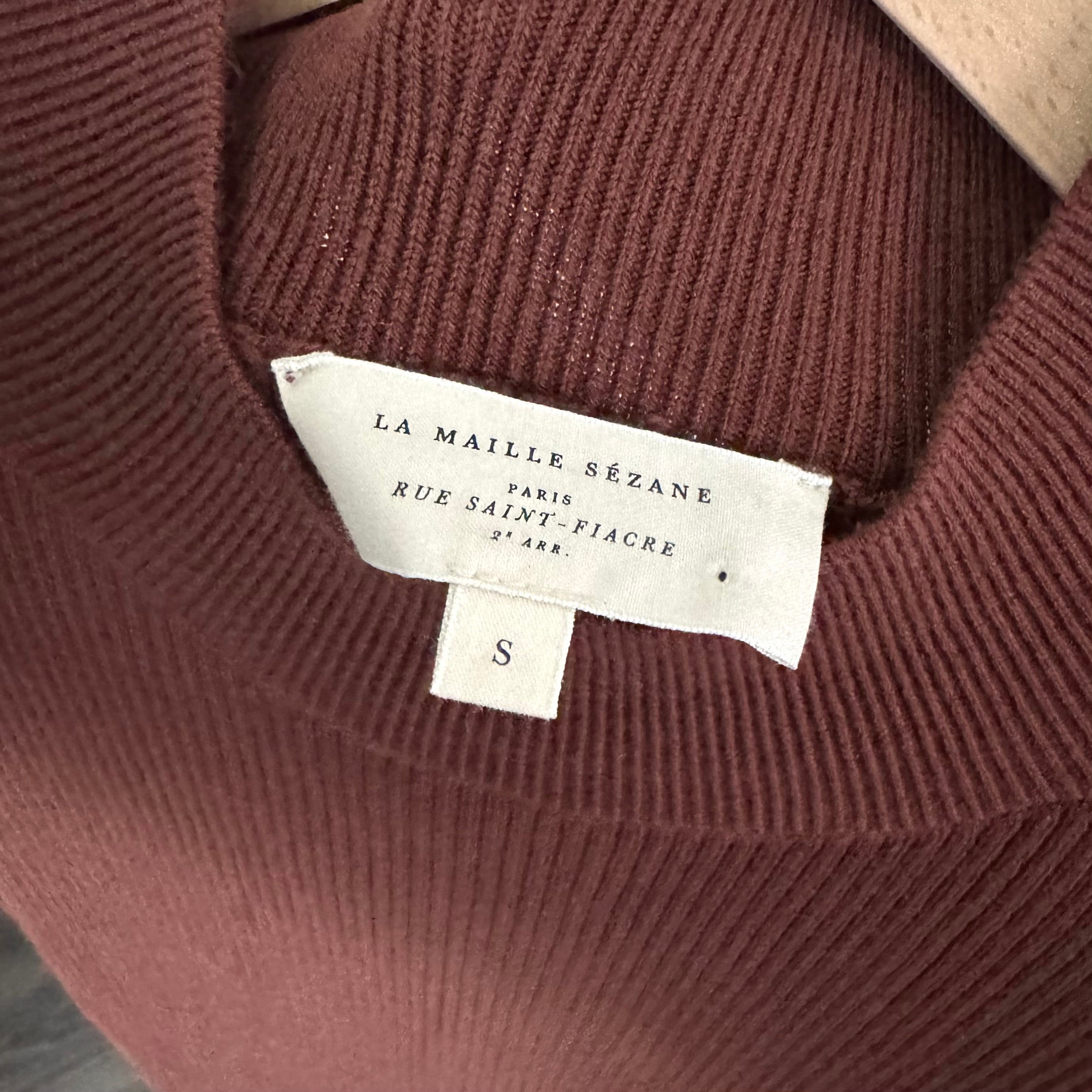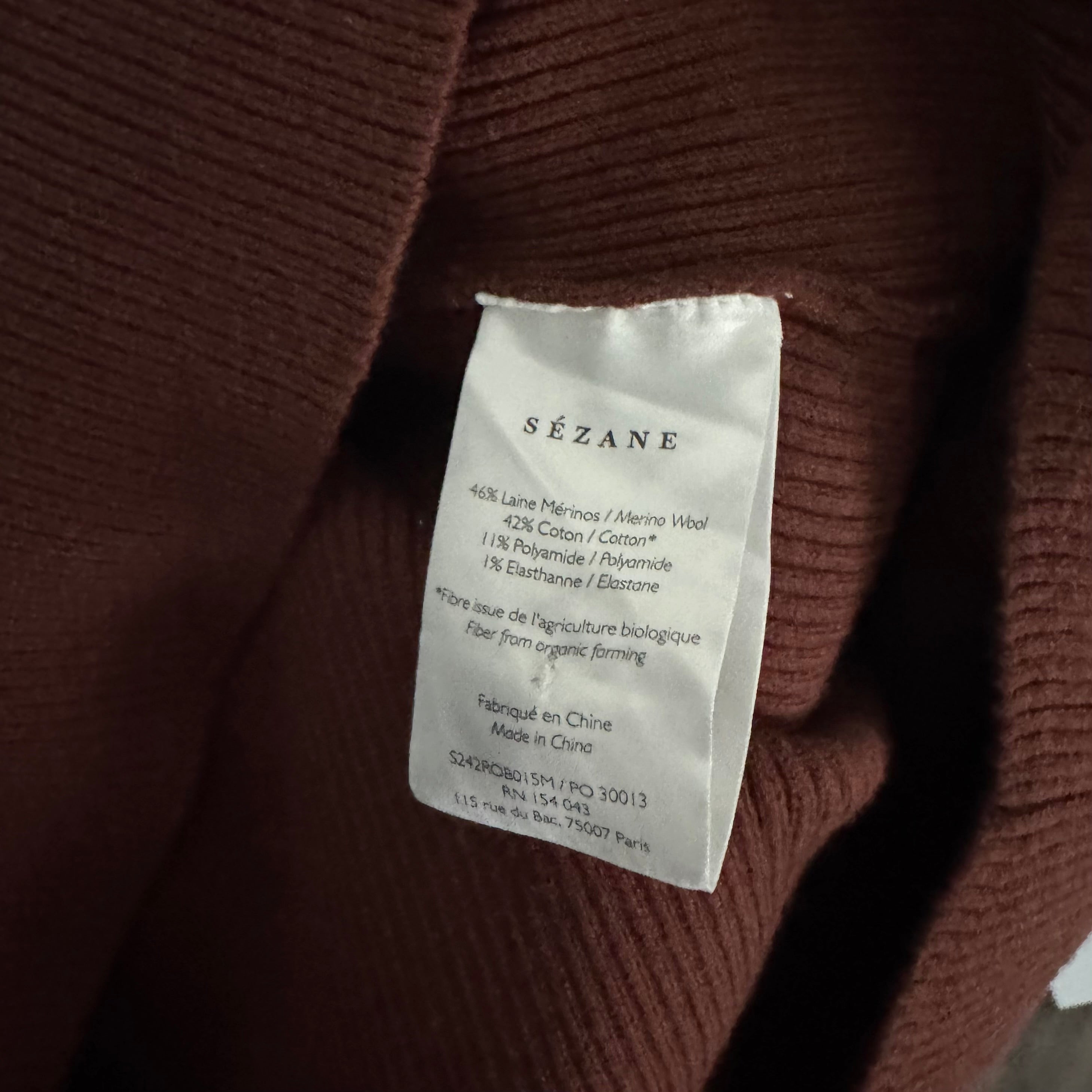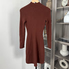 Sezane Holy Mock Neck Rib-Knit Long Sleeve Chestnut Brown Dress