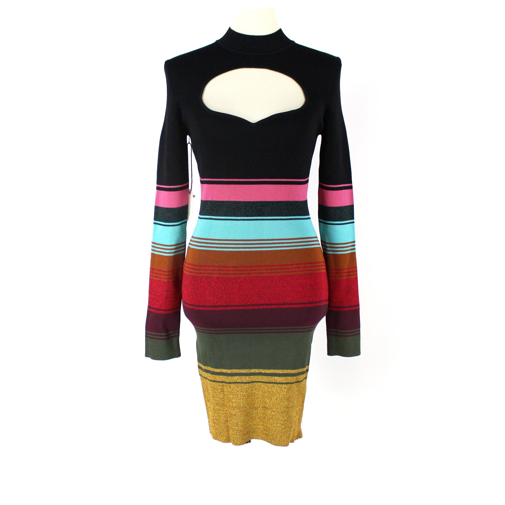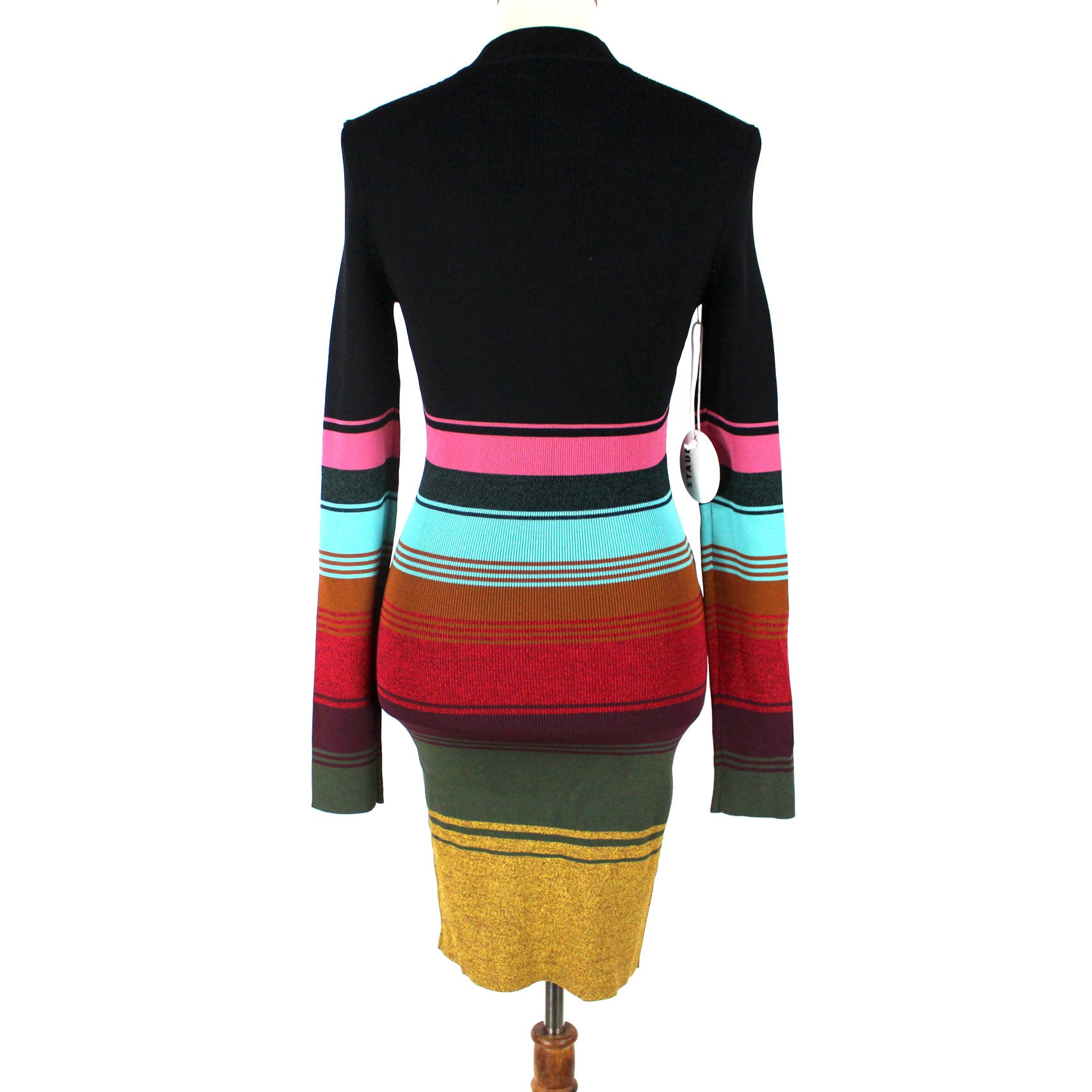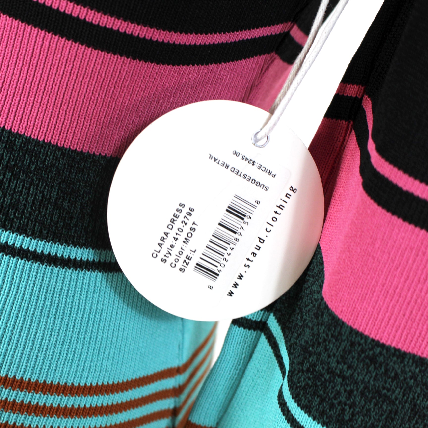 STAUD Clara Stripe Ribbed Knit Stretch Mock New Long Sleeve Dress