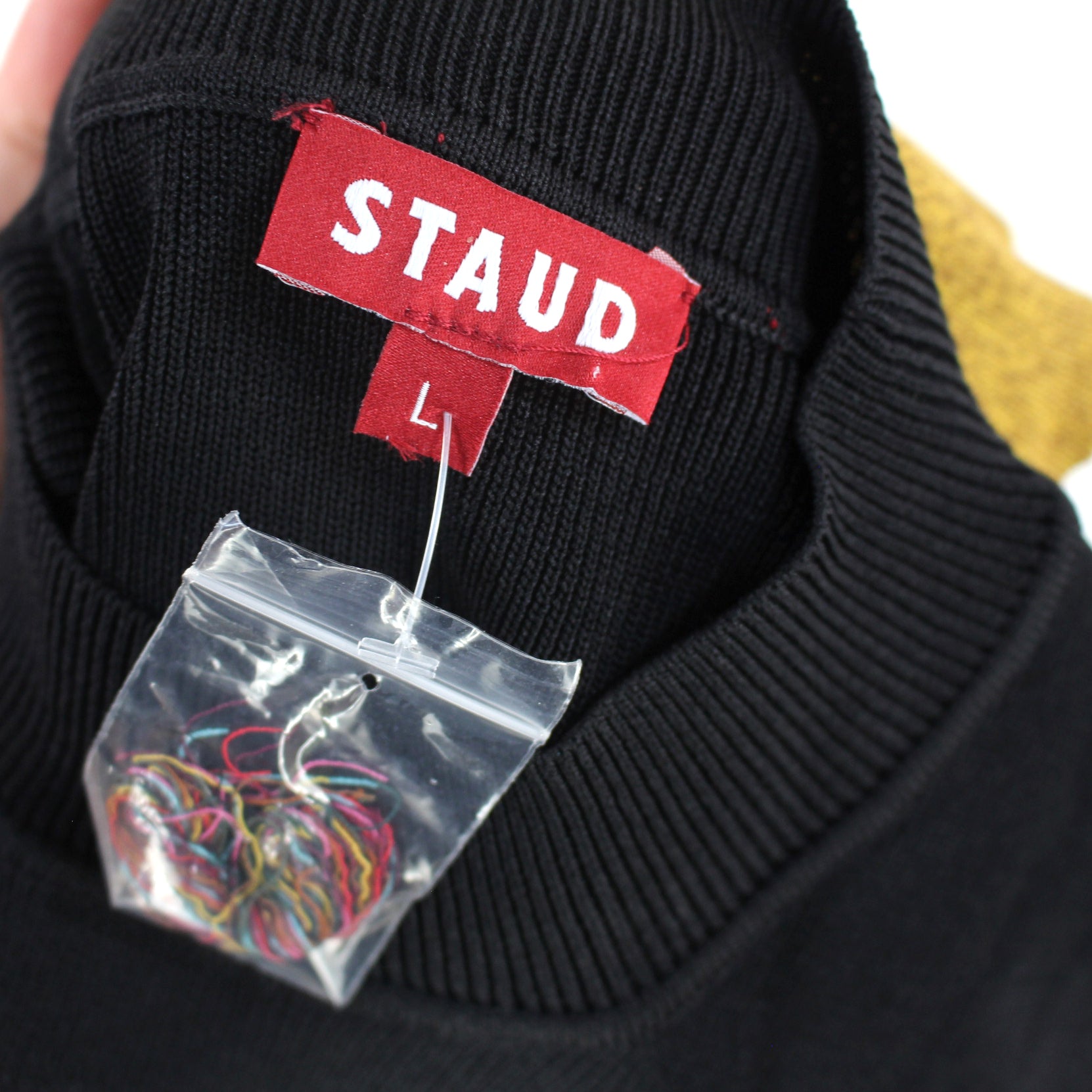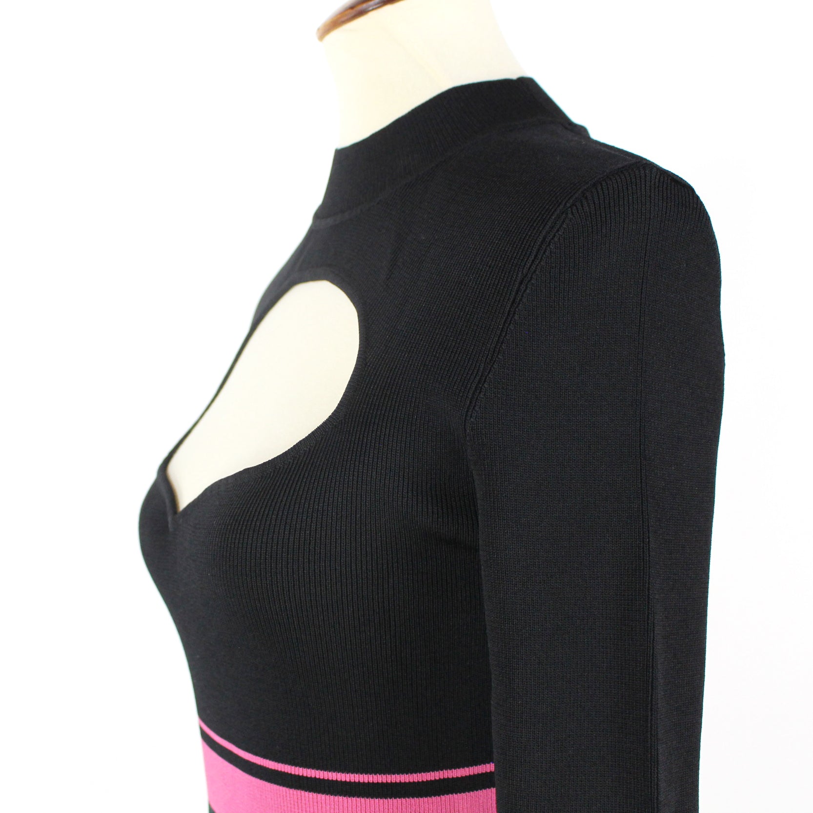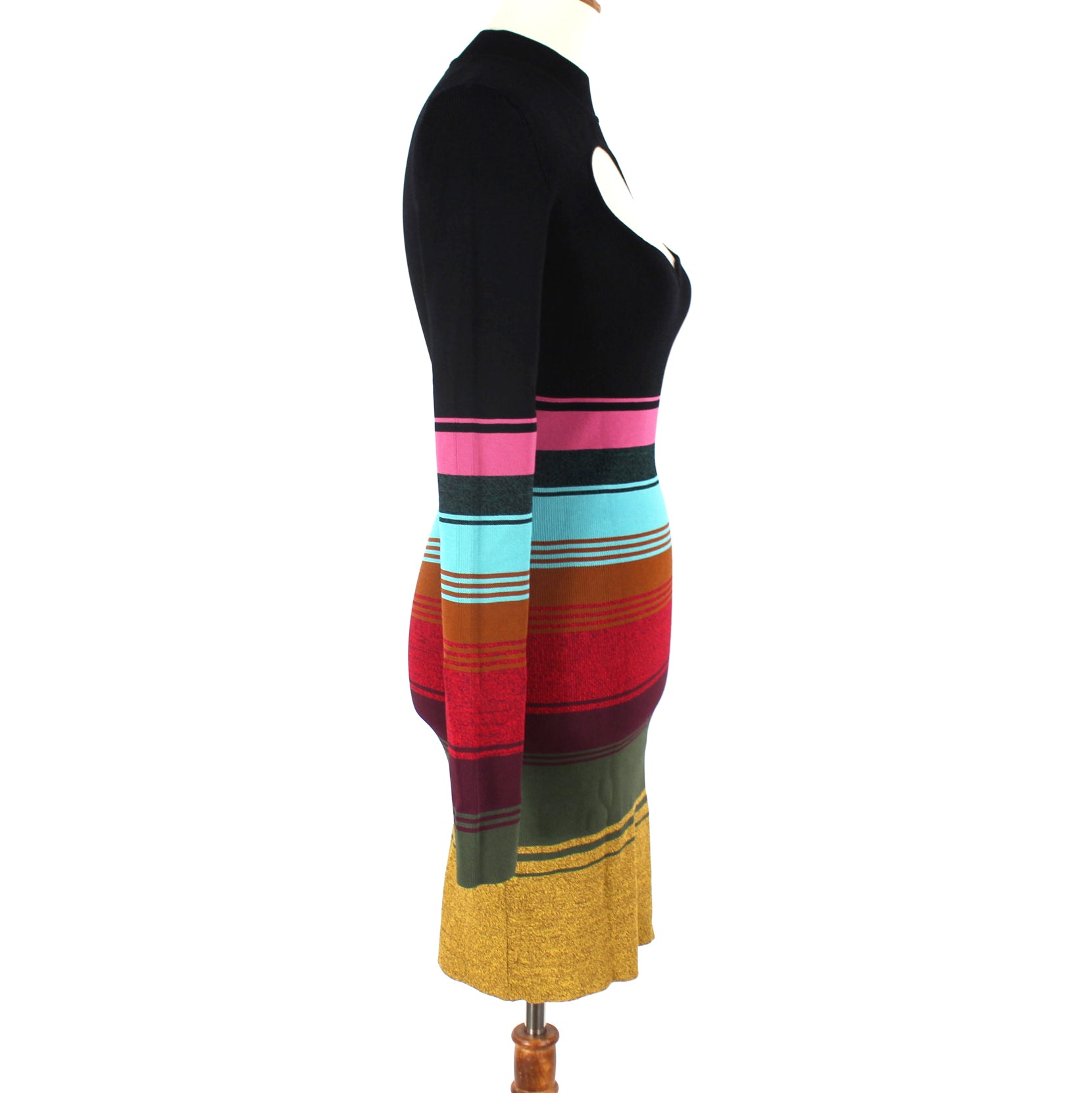 STAUD Clara Stripe Ribbed Knit Stretch Mock New Long Sleeve Dress