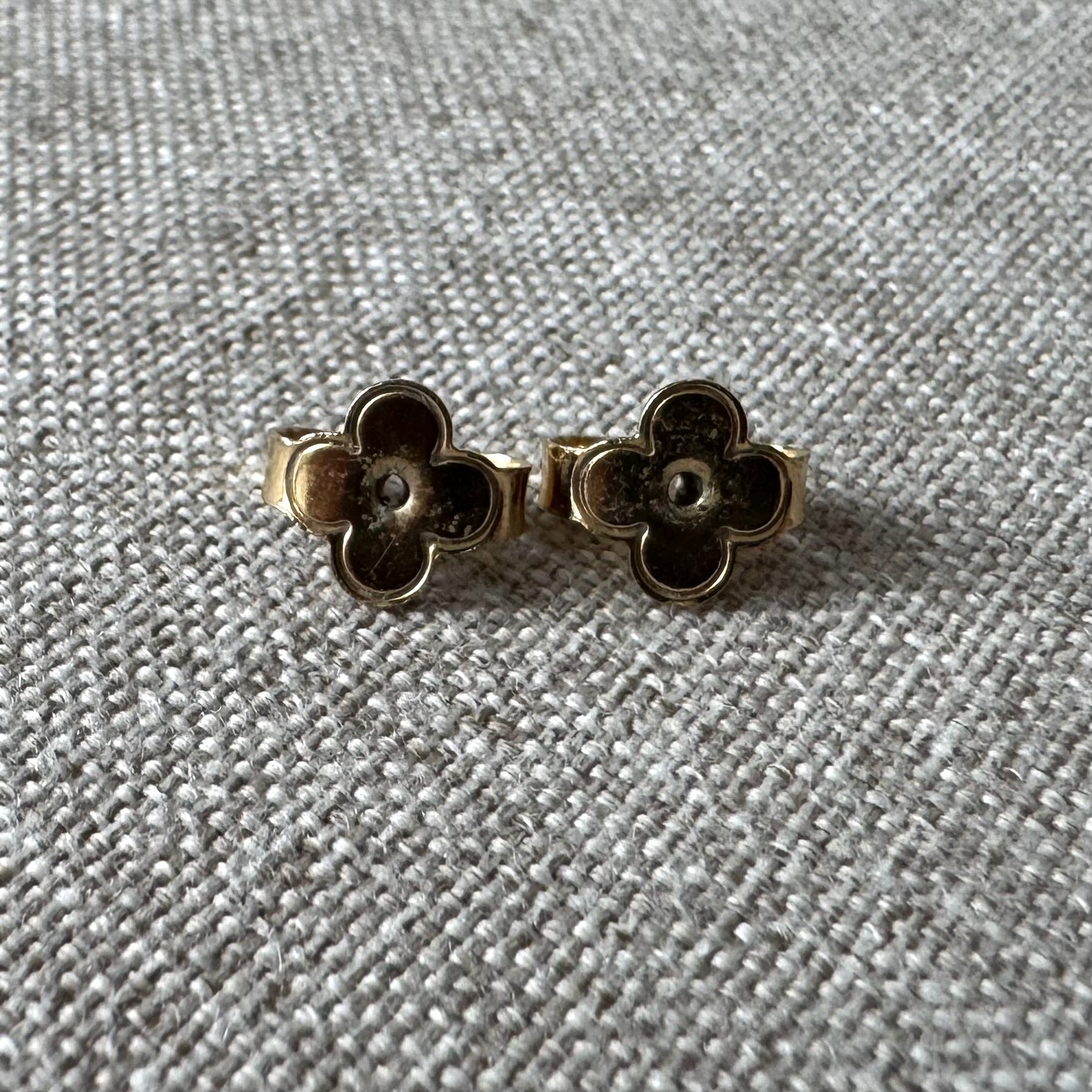 - Brass logo round post with butterfly clasp
