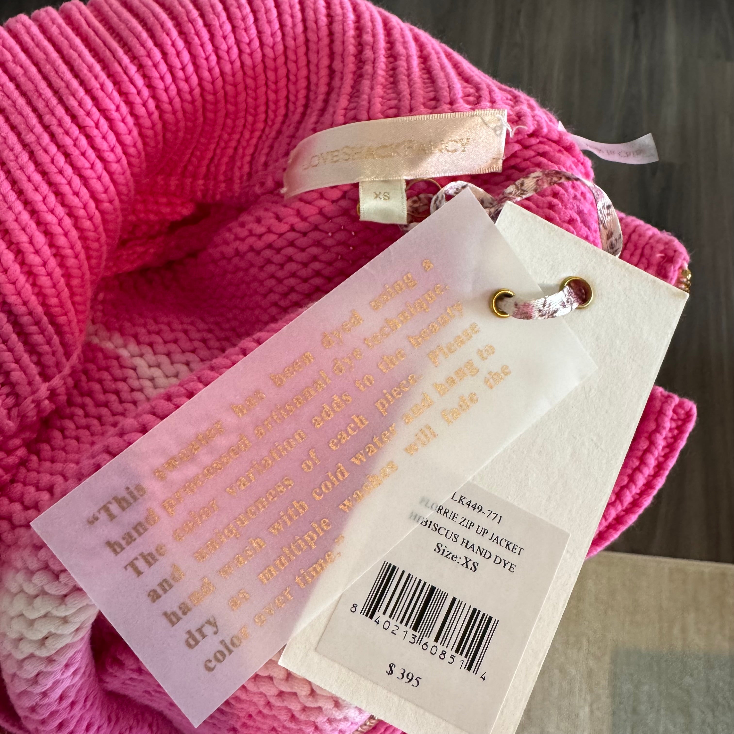 LoveShackFancy Florrie Pink Hibiscus   white Hand Dye Zip-Up Knit Jacket