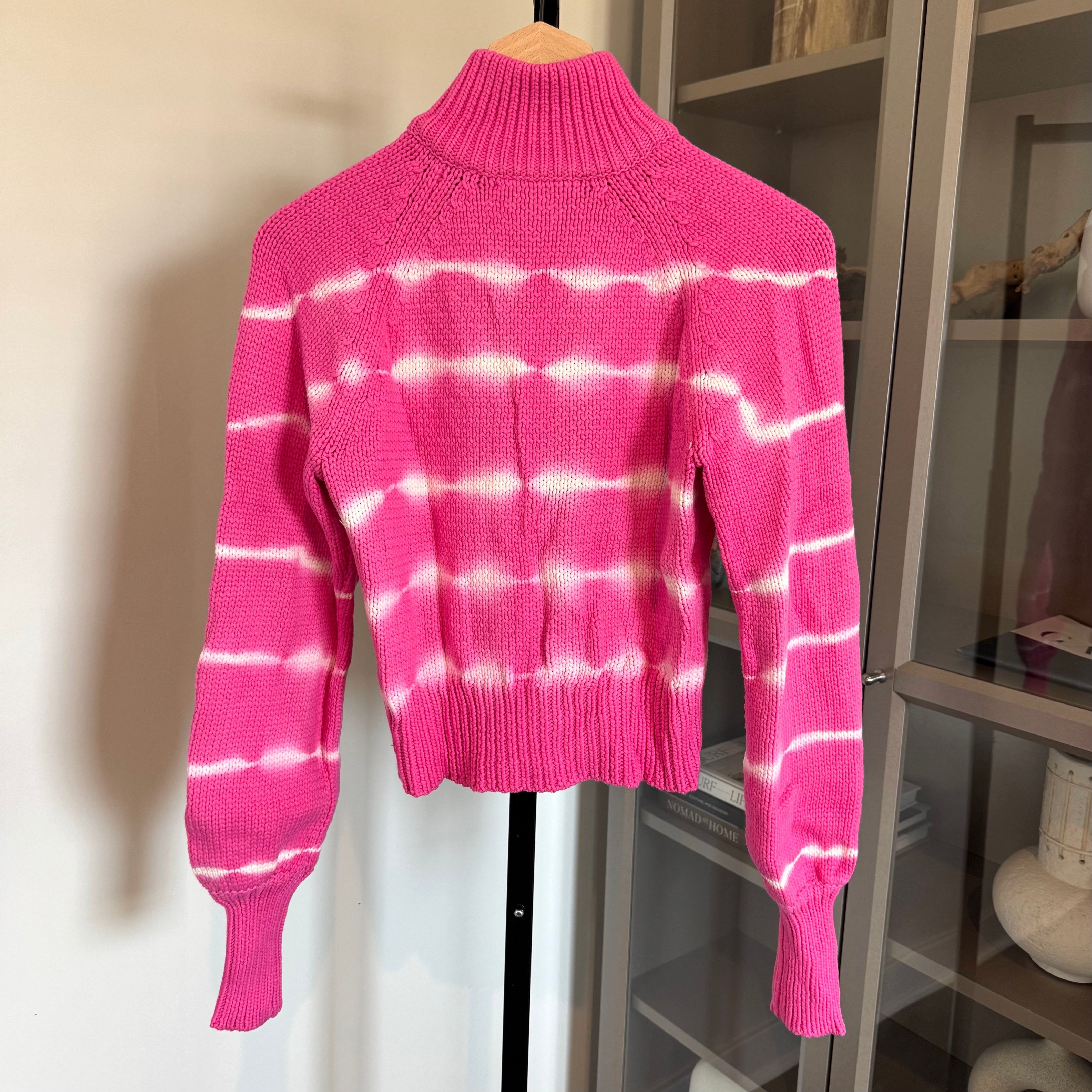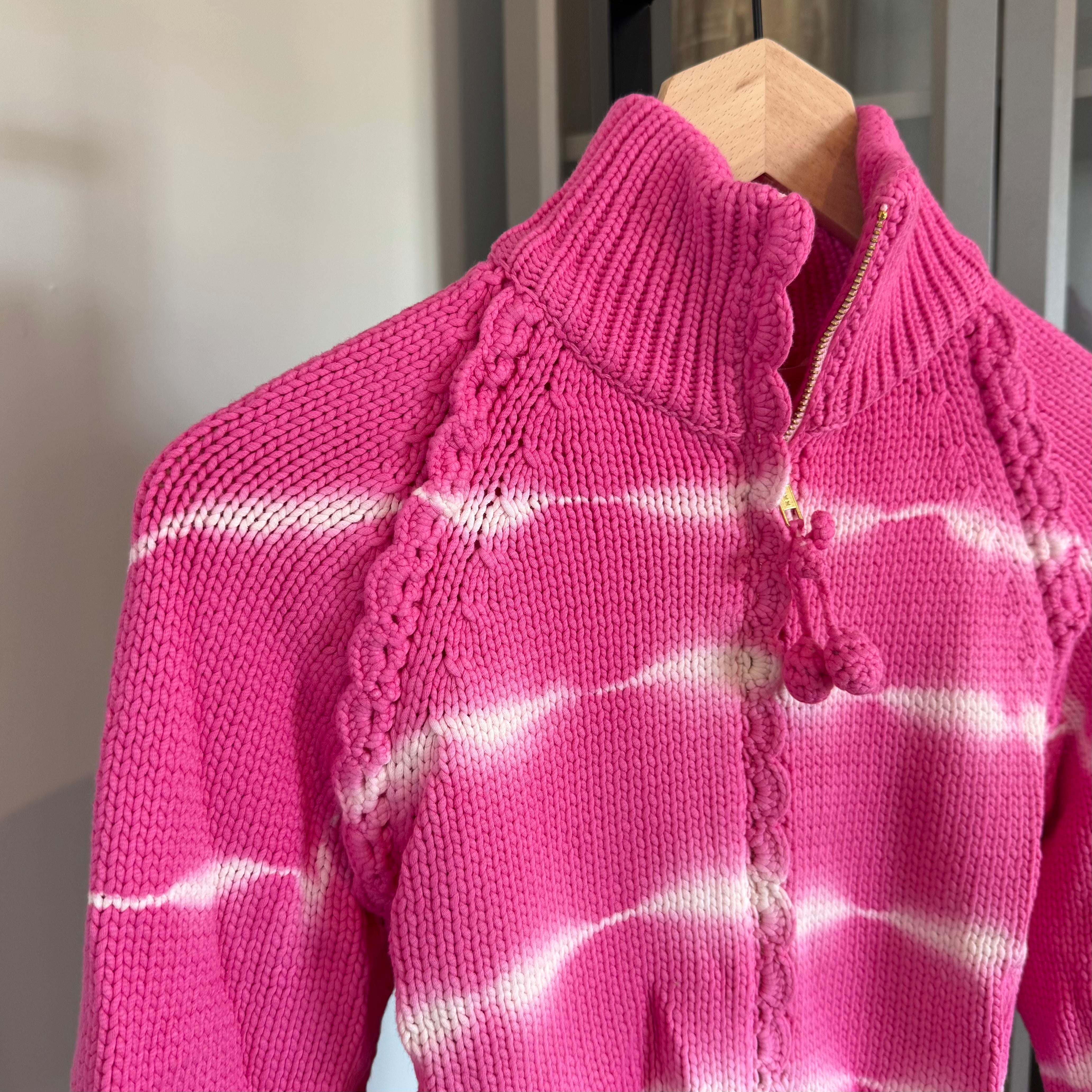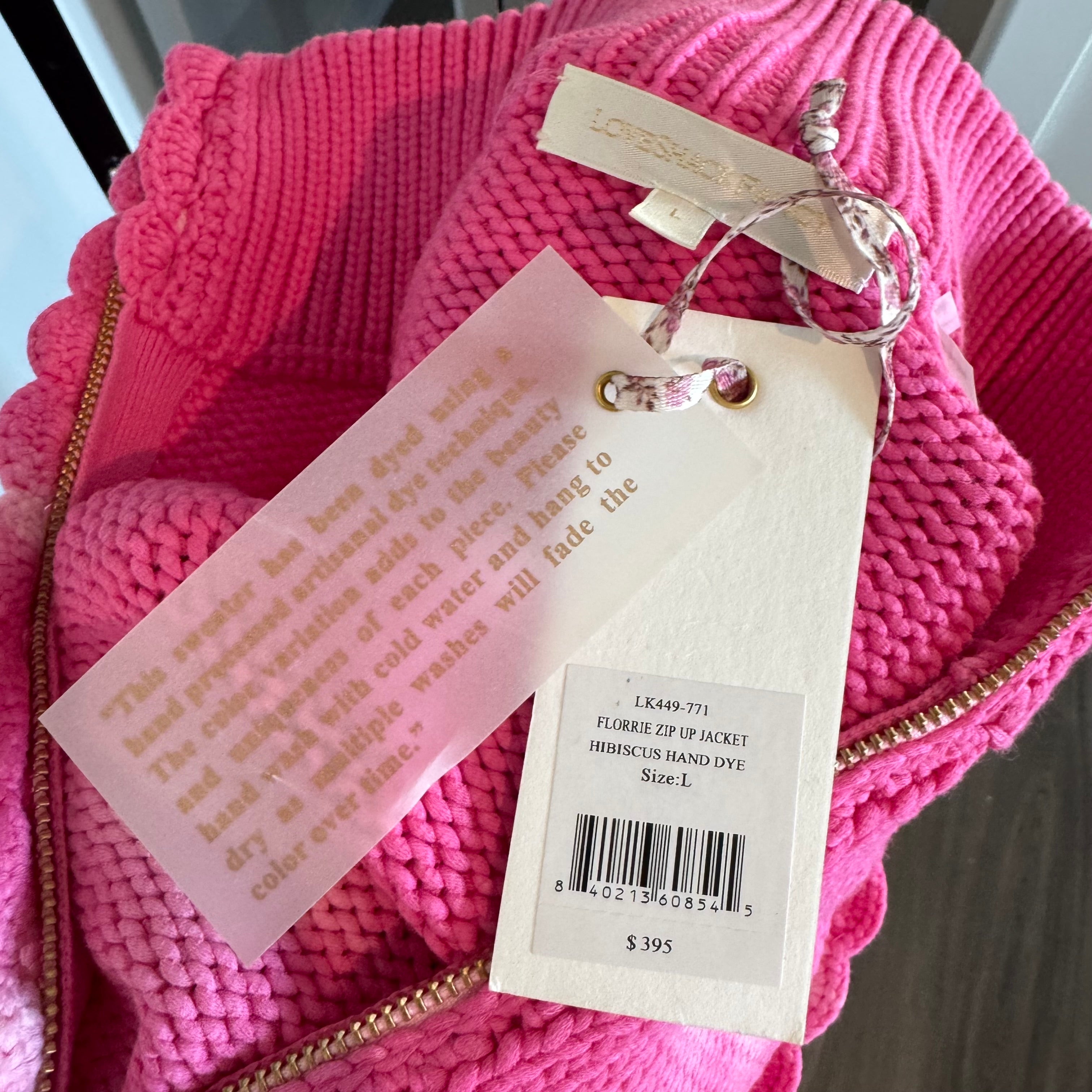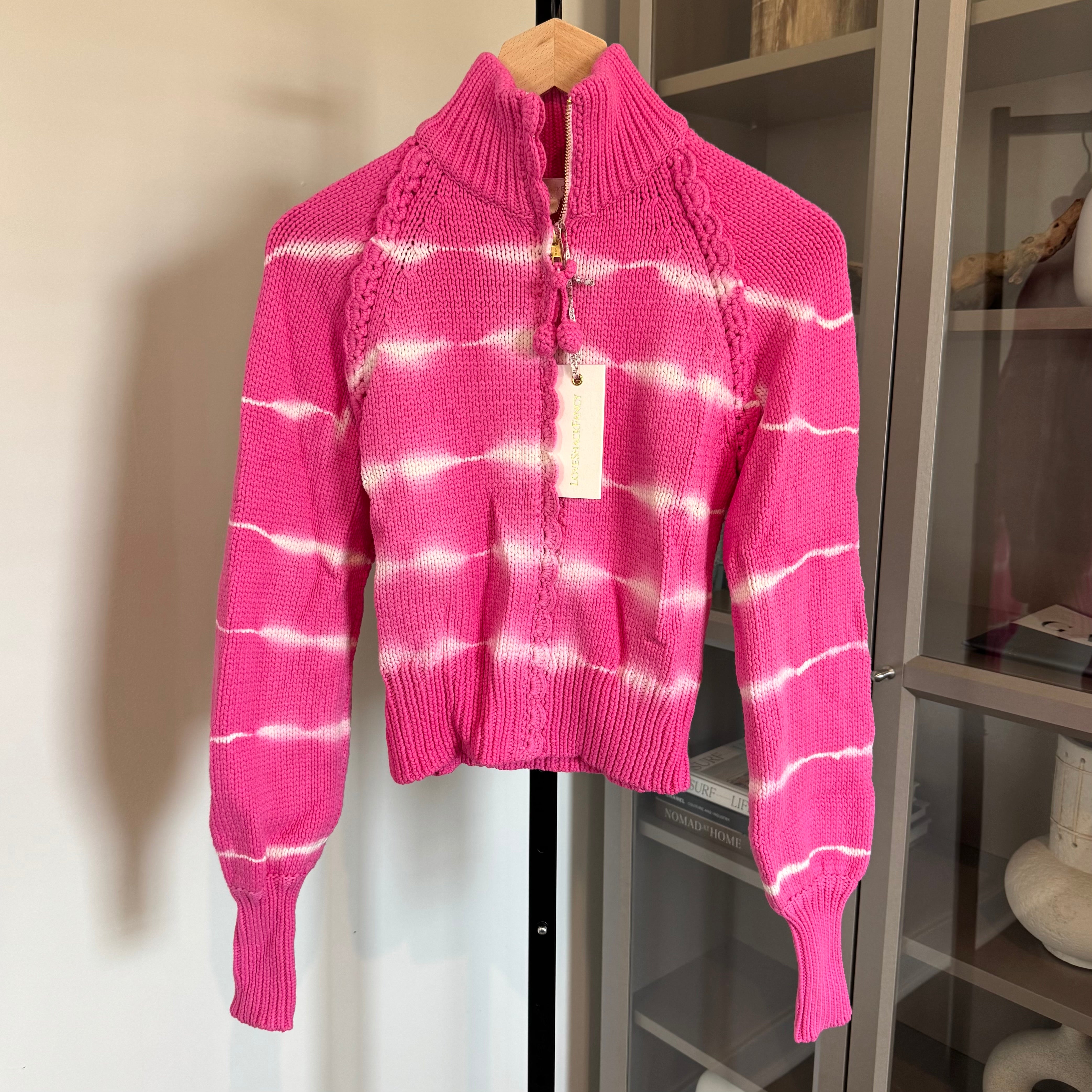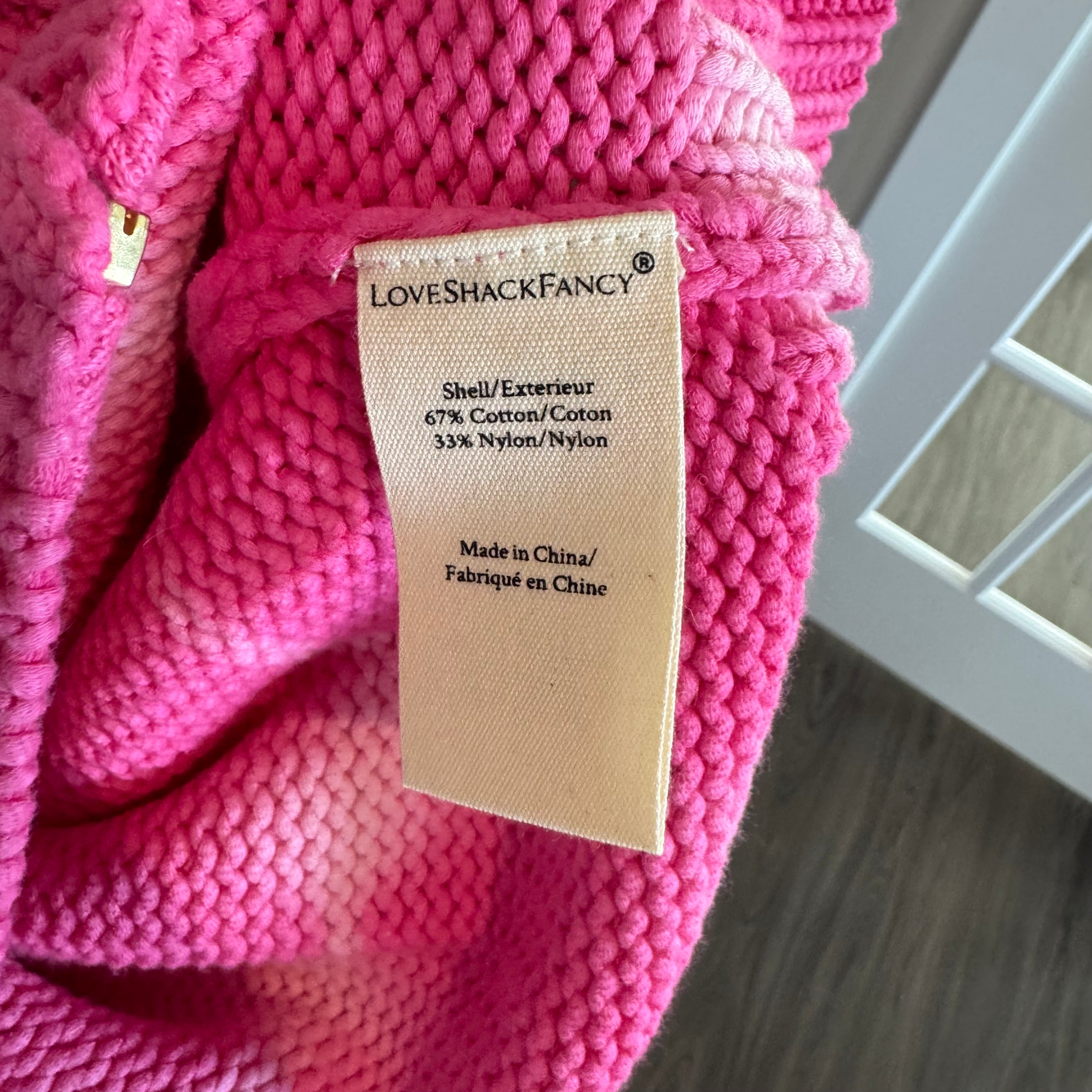 LoveShackFancy Florrie Pink Hibiscus white Hand Dye Zip-Up Knit Jacket