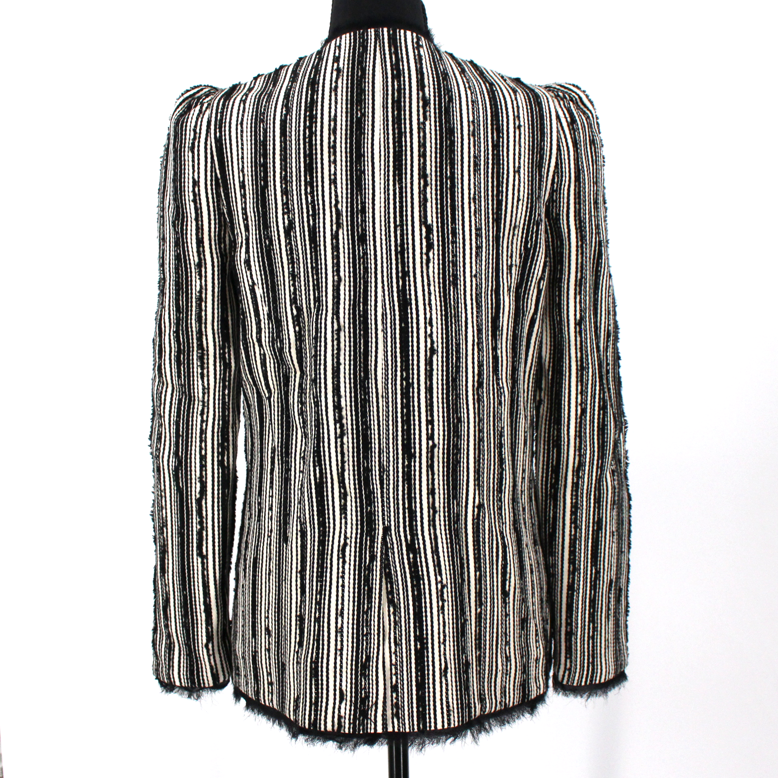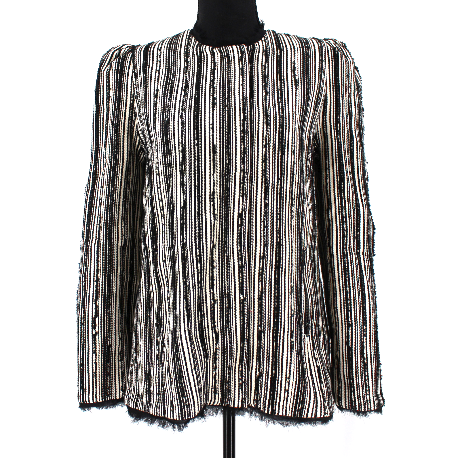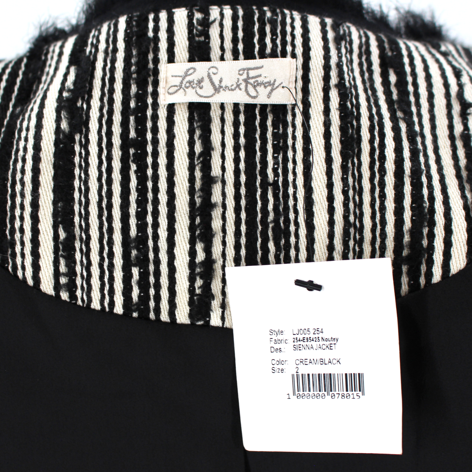 LoveShackFancy Sienna Black Cream Stripe Crewneck Zip-Up Blazer Jacket.