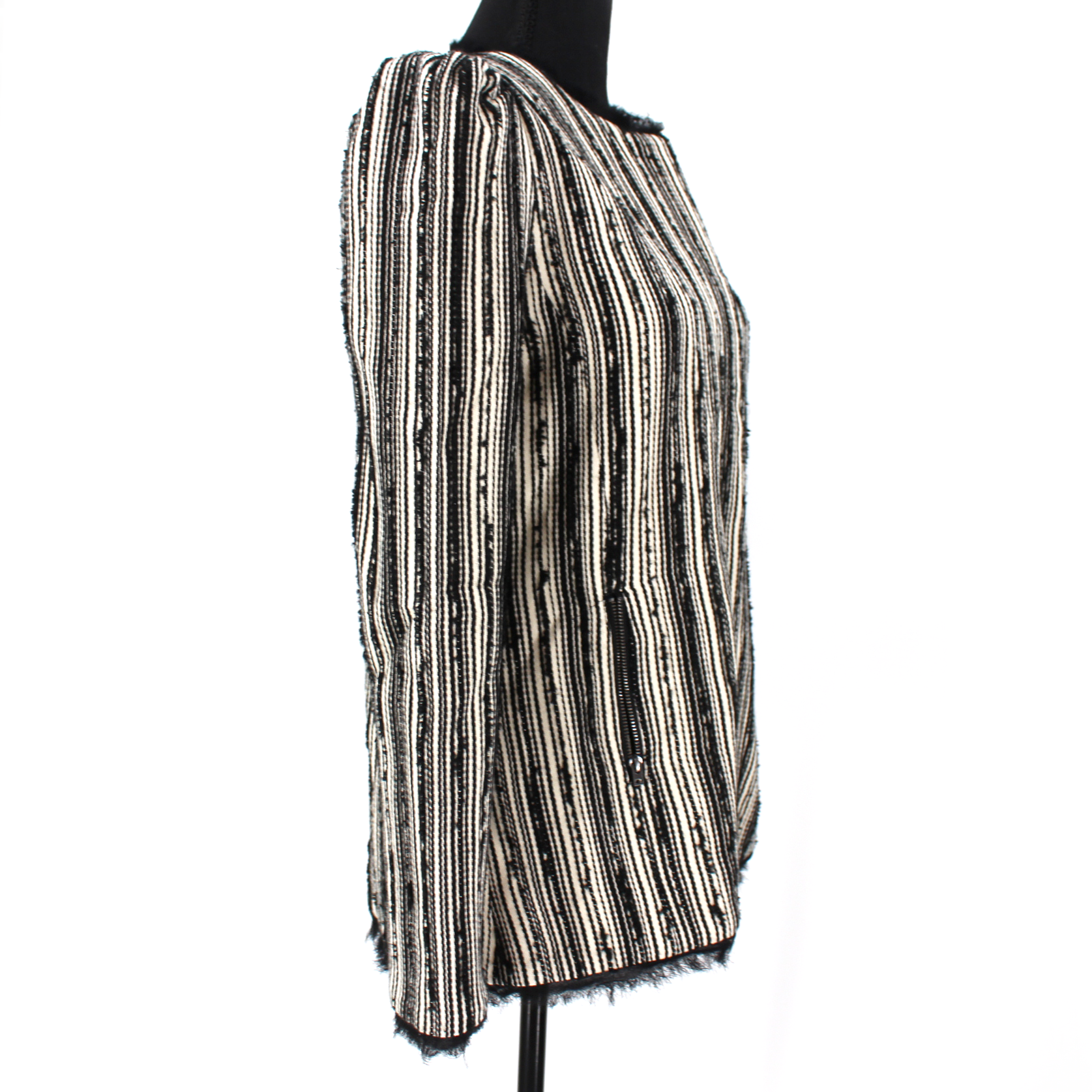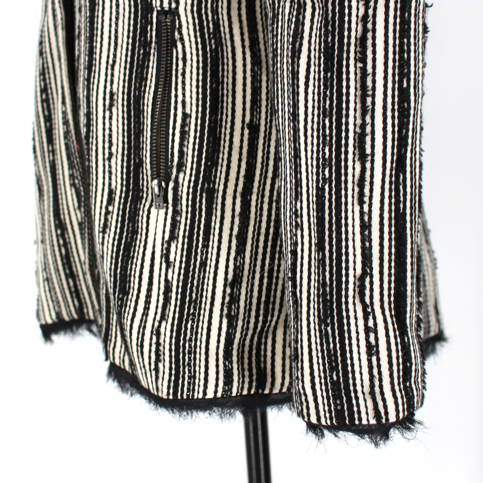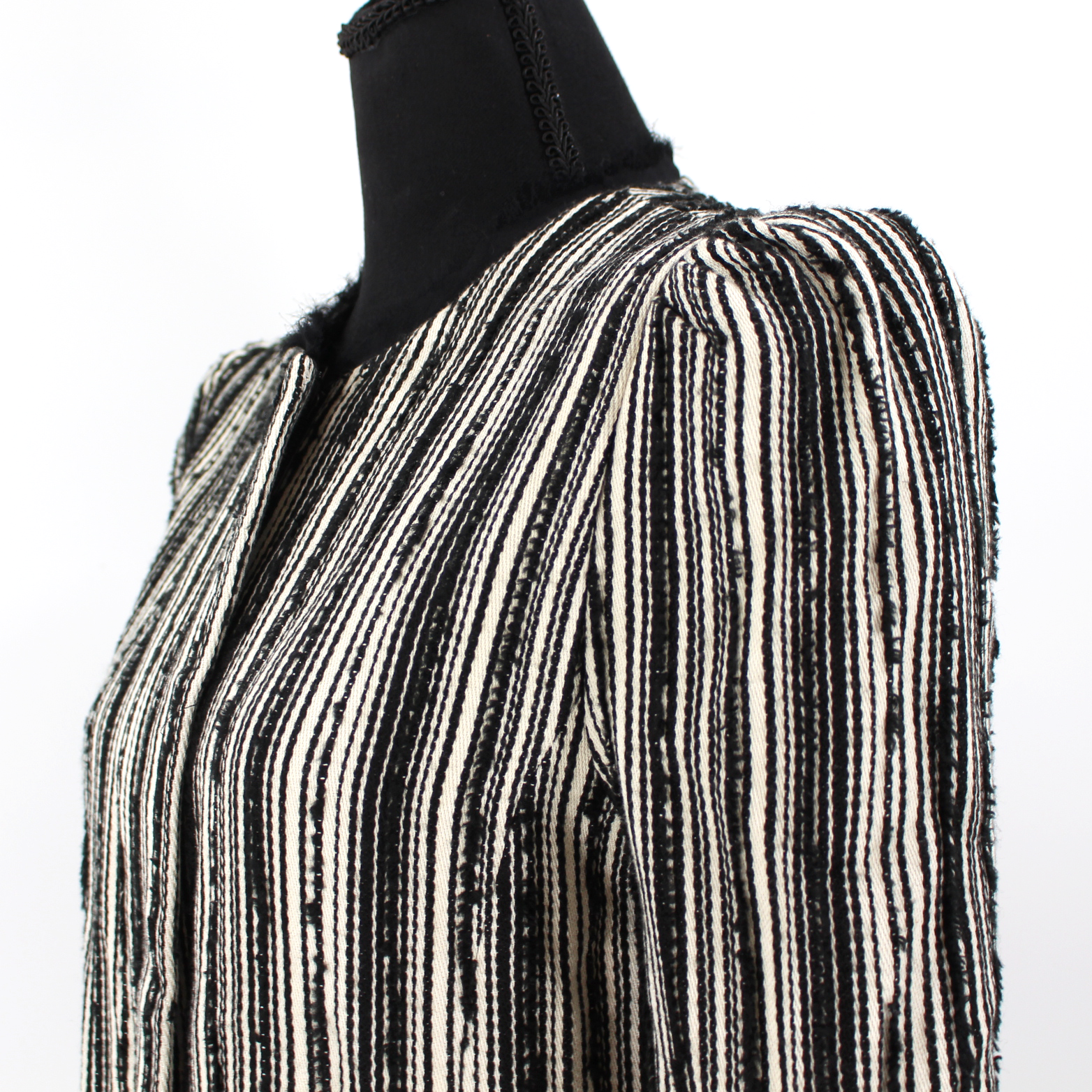LoveShackFancy Sienna Black Cream Stripe Crewneck Zip-Up Blazer Jacket.