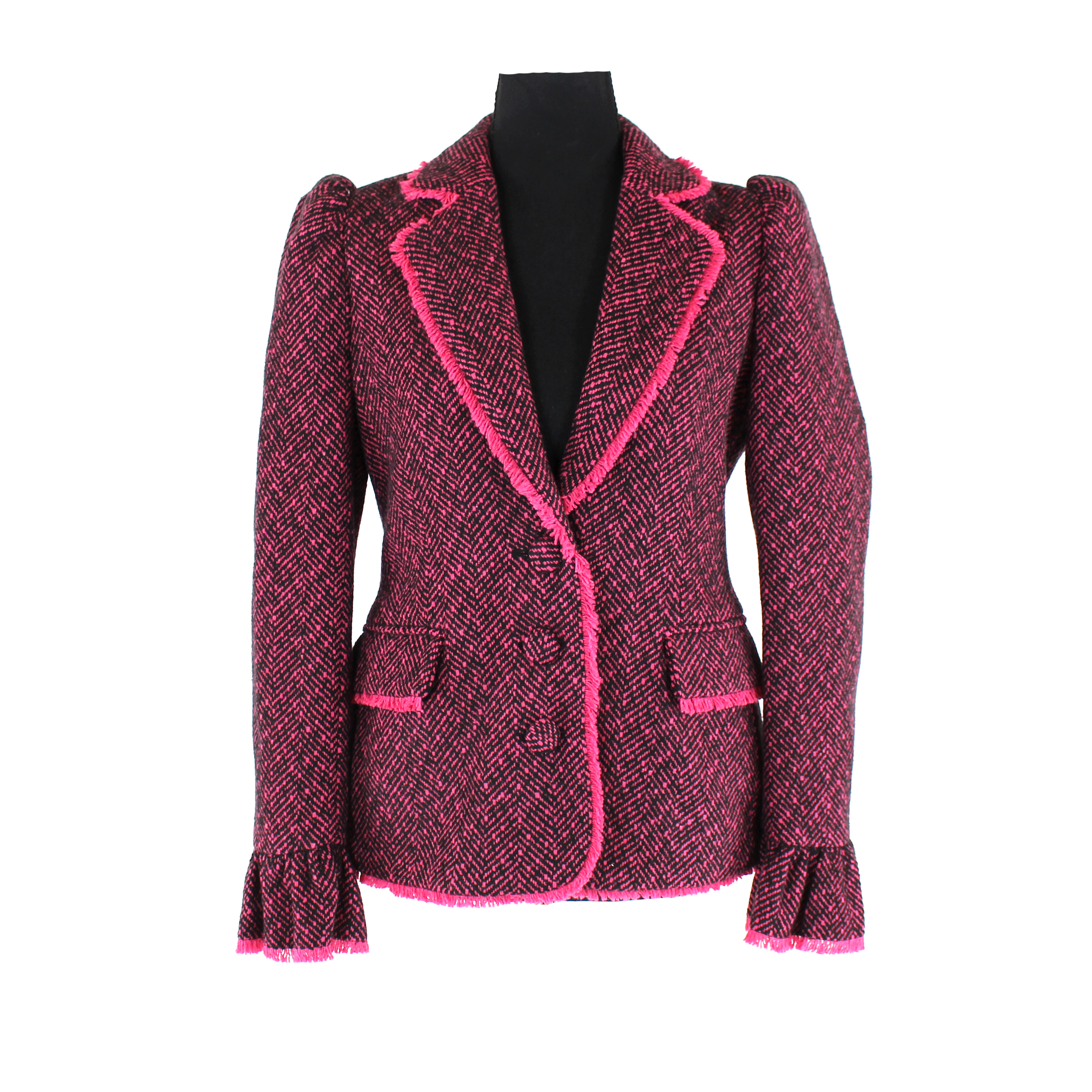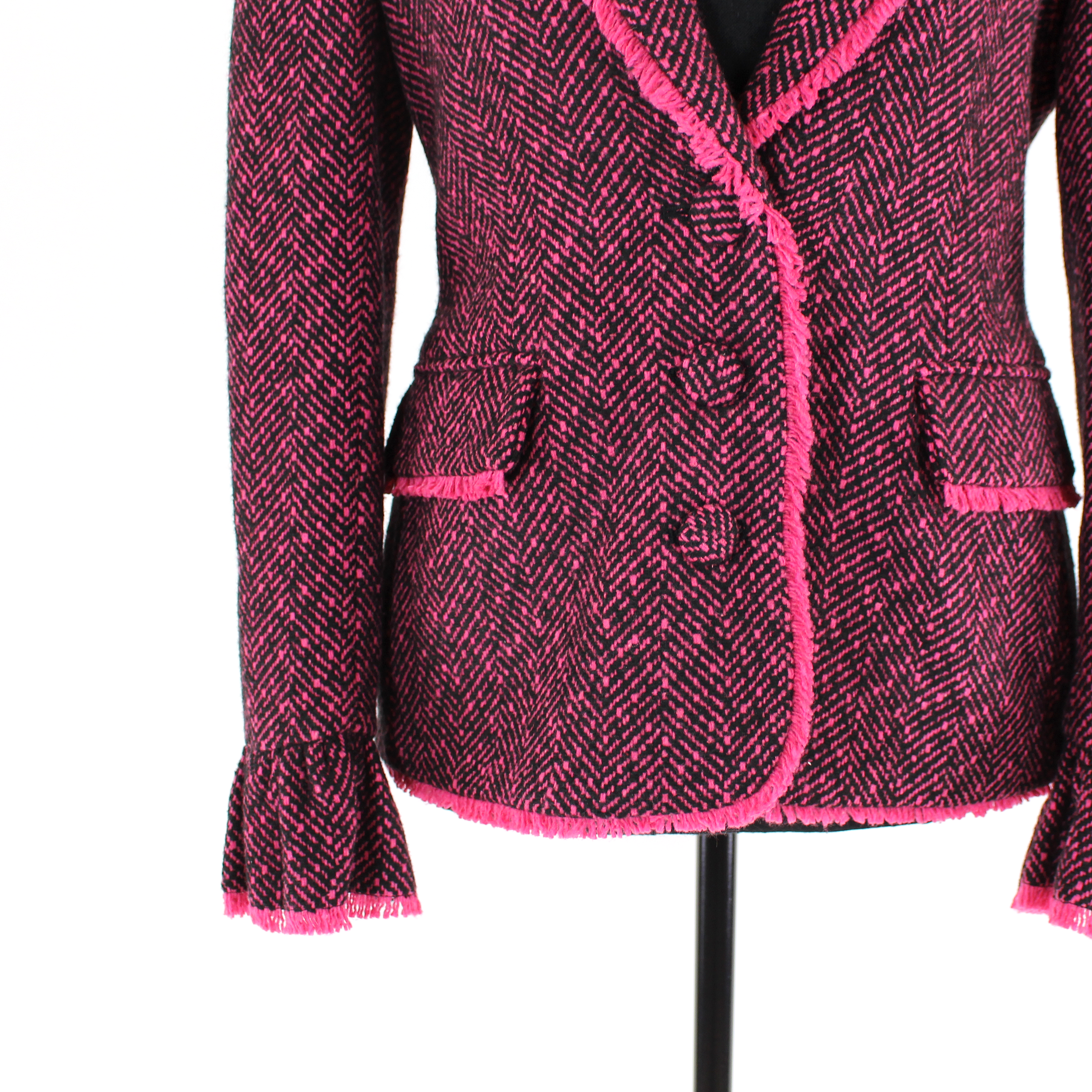 LoveShackFancy Yoland Blazer Boisen Berry Pink Black Tweed Jacket Blazer