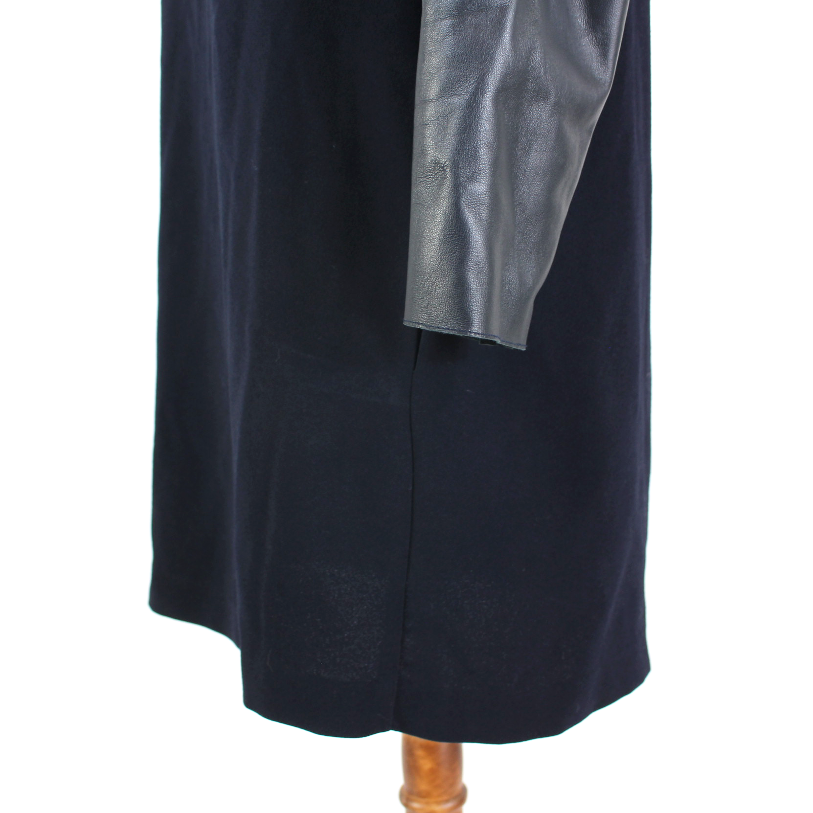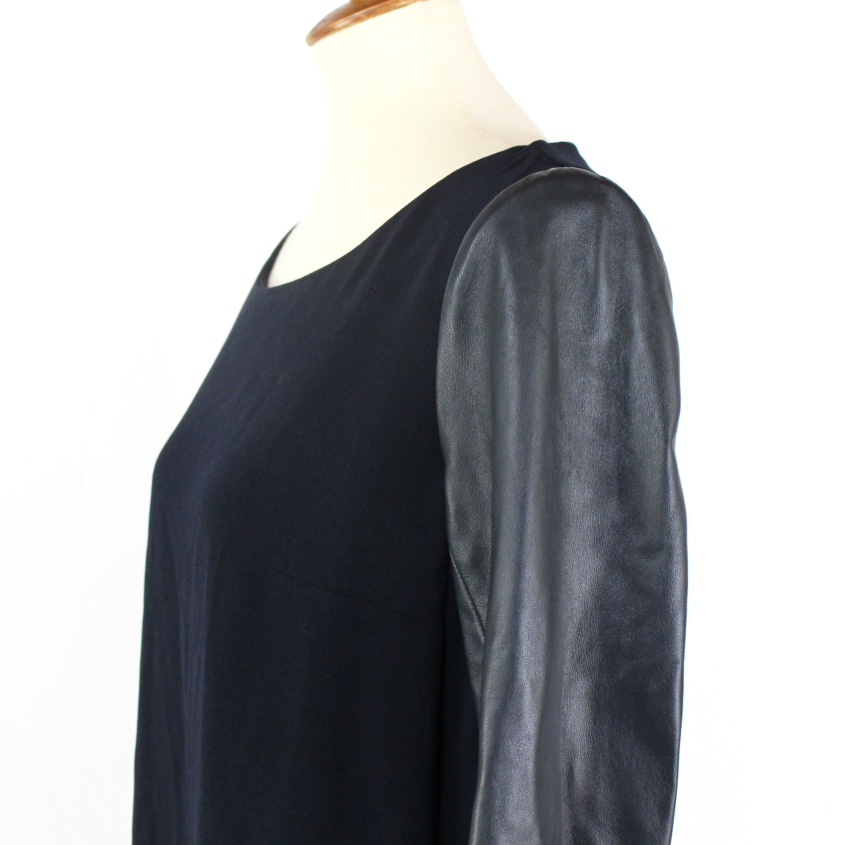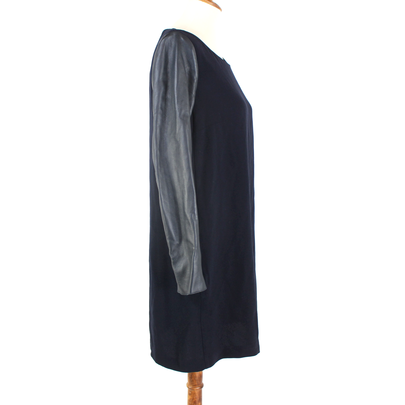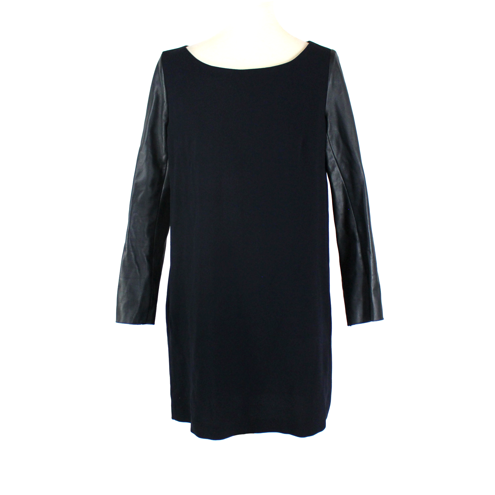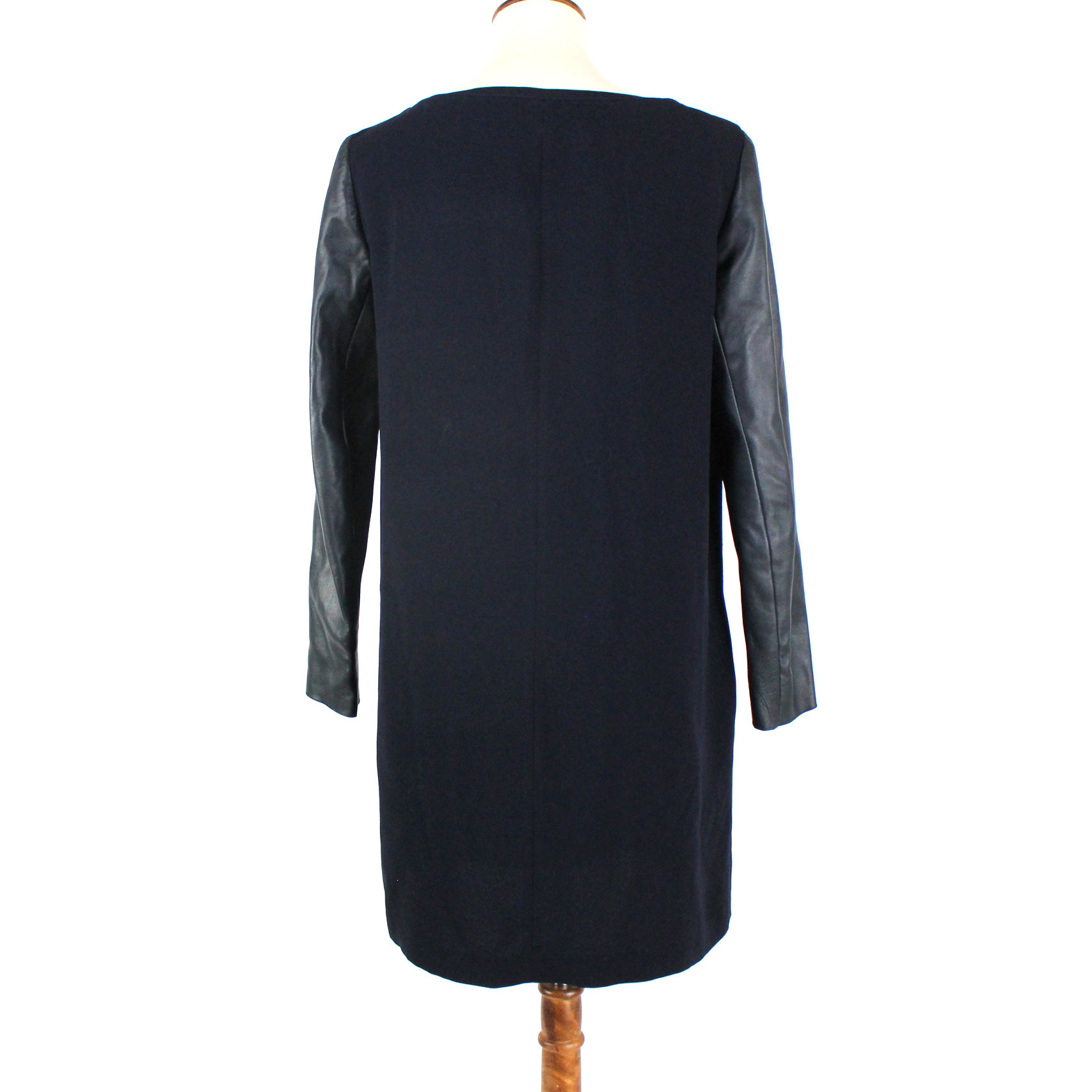 Maje Navy Blue Leather Long Sleeve Mini Boat Neck Sheath Dress