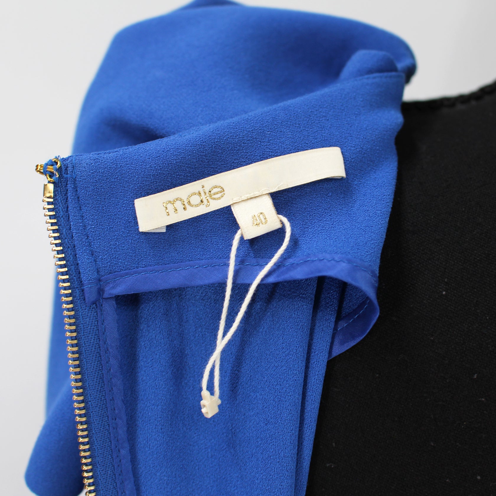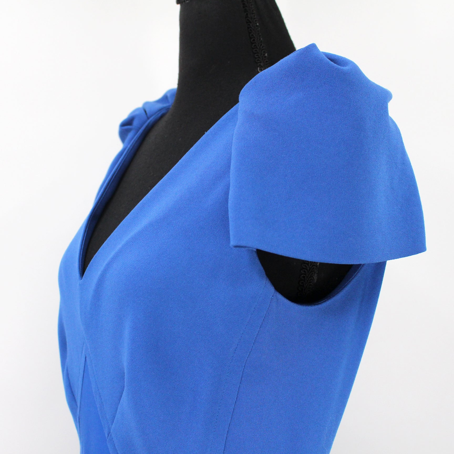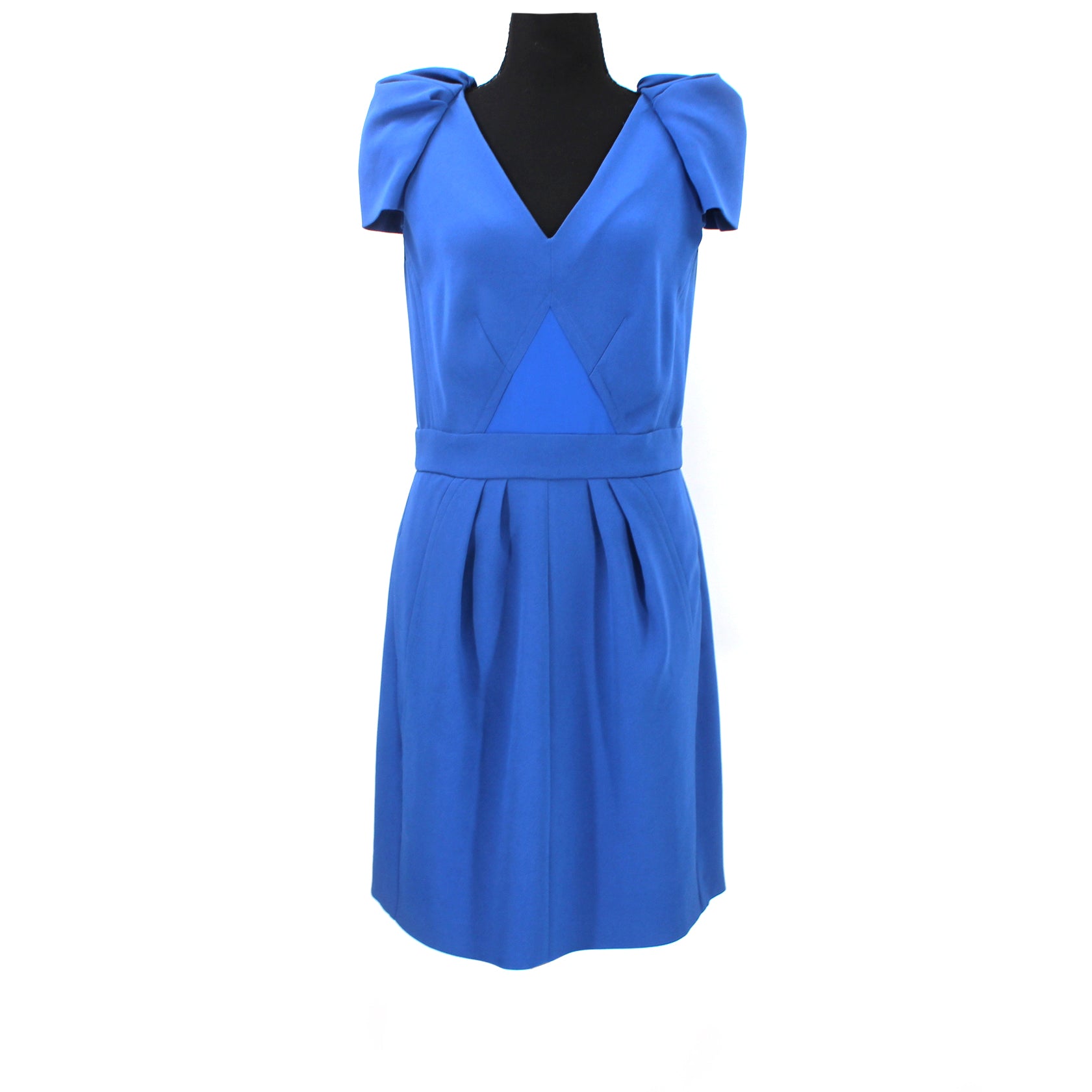 Maje Royal Blue V-Neckline Short Sleeve Pleat Detail Mini Dress