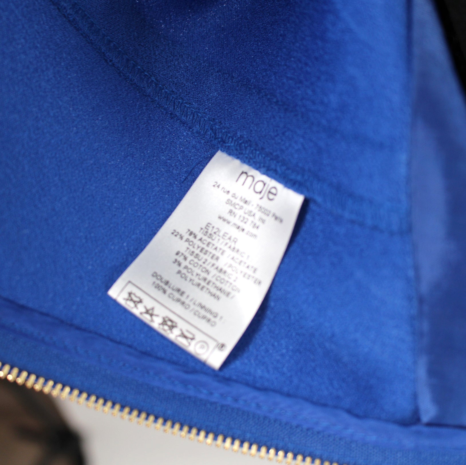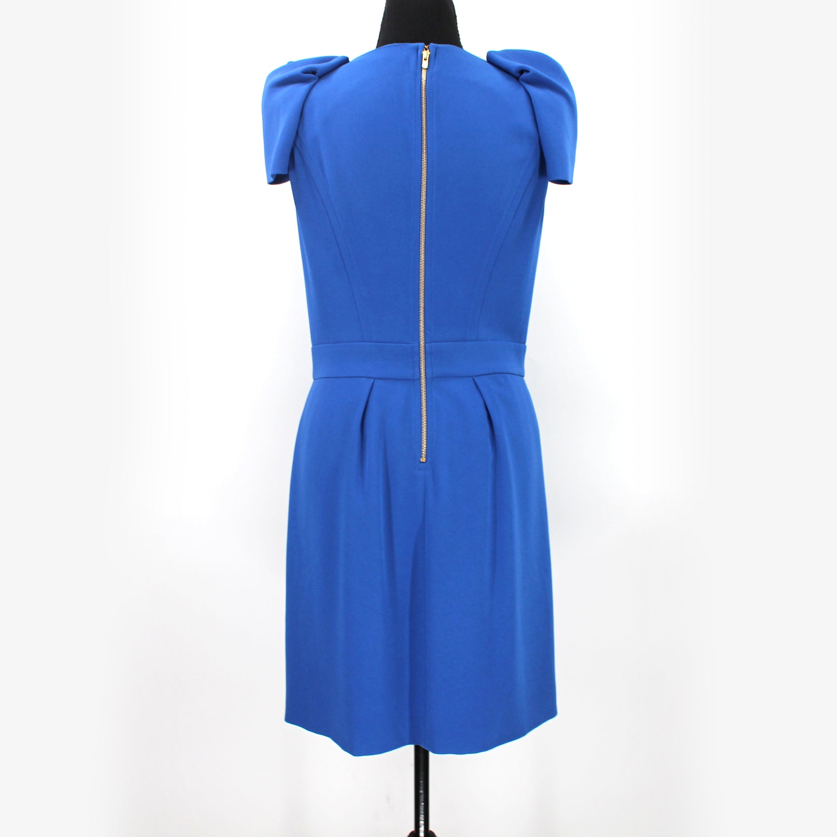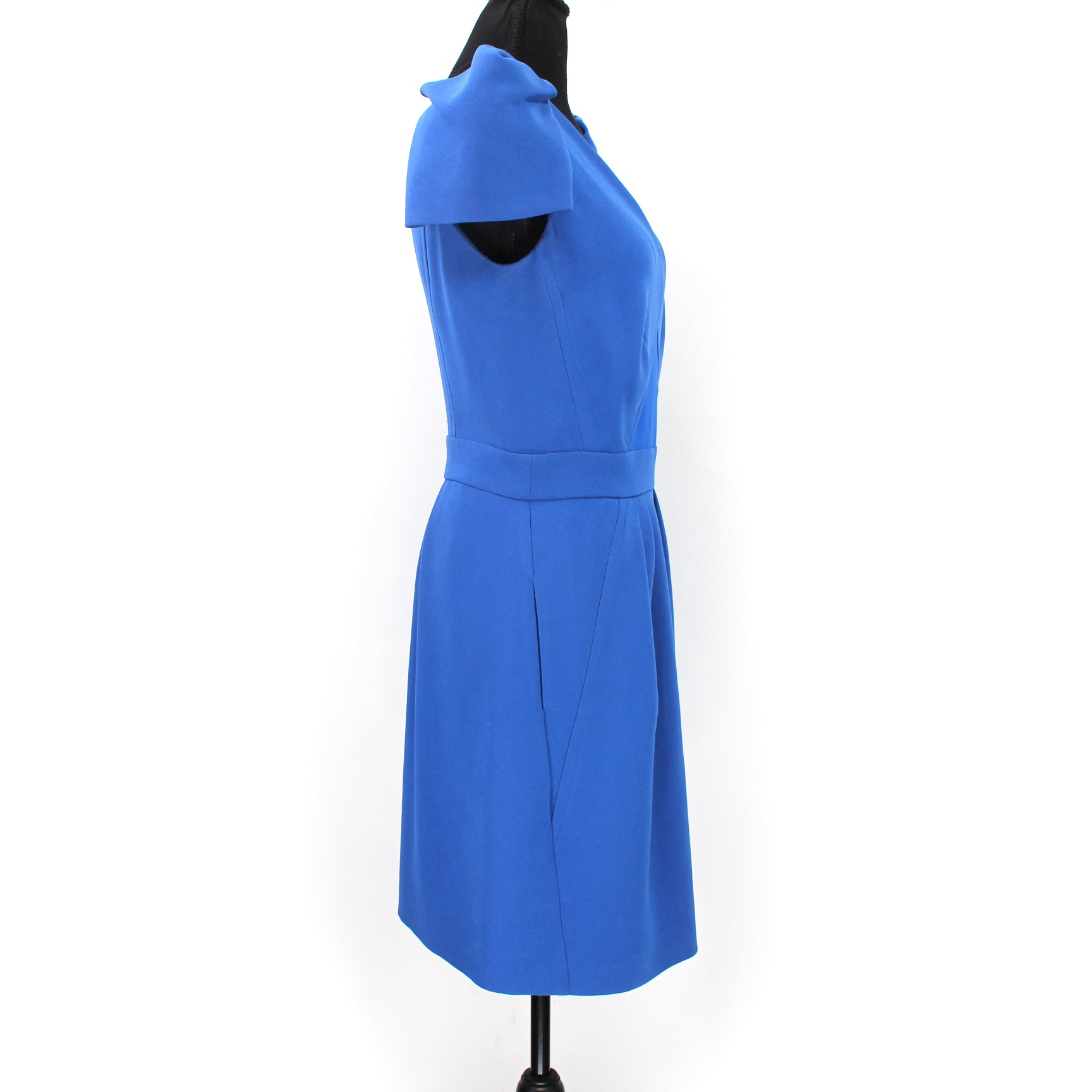 Maje Royal Blue V-Neckline Short Sleeve Pleat Detail Mini Dress