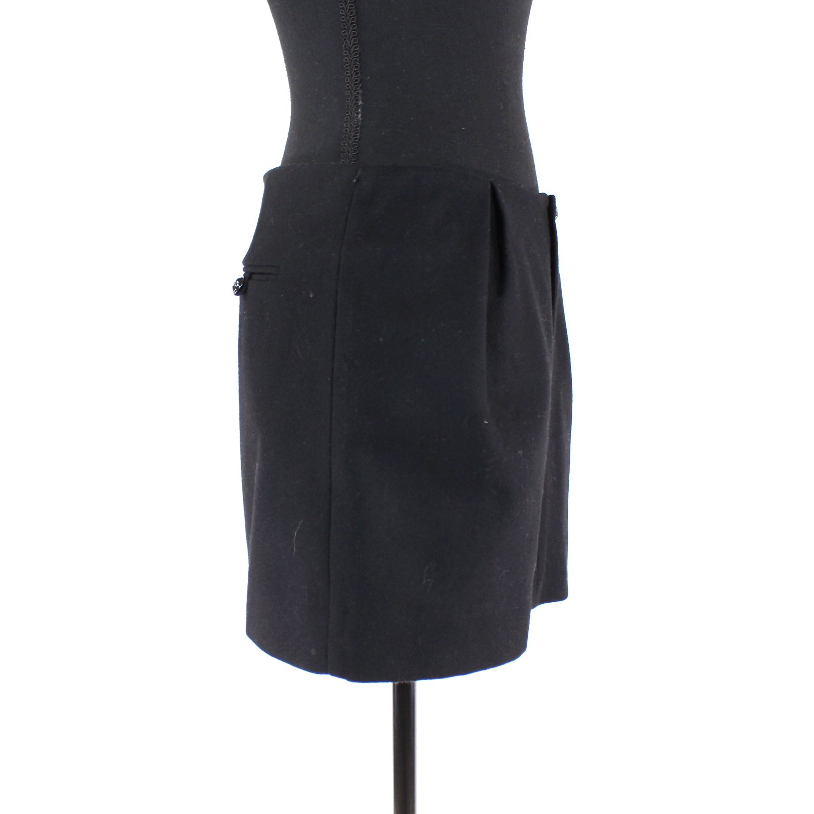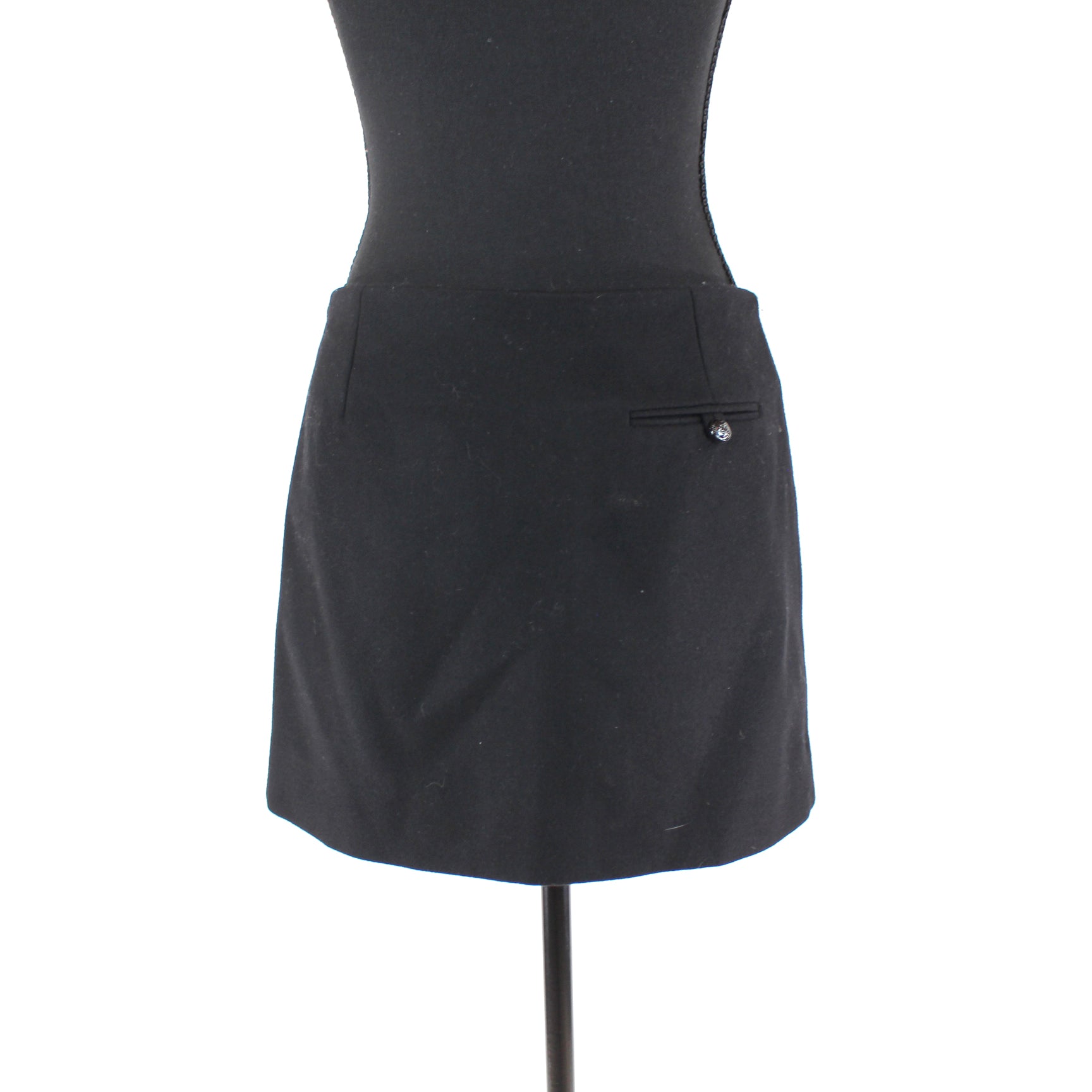Maje Black Wool Blend Button A-line Mini Skirt