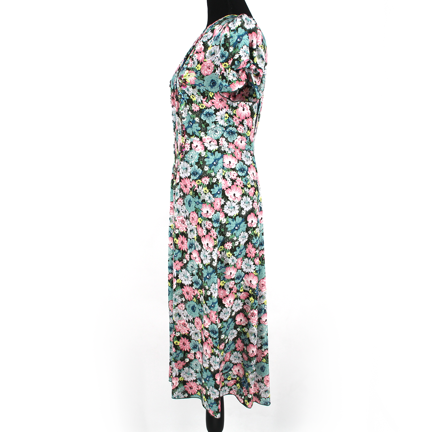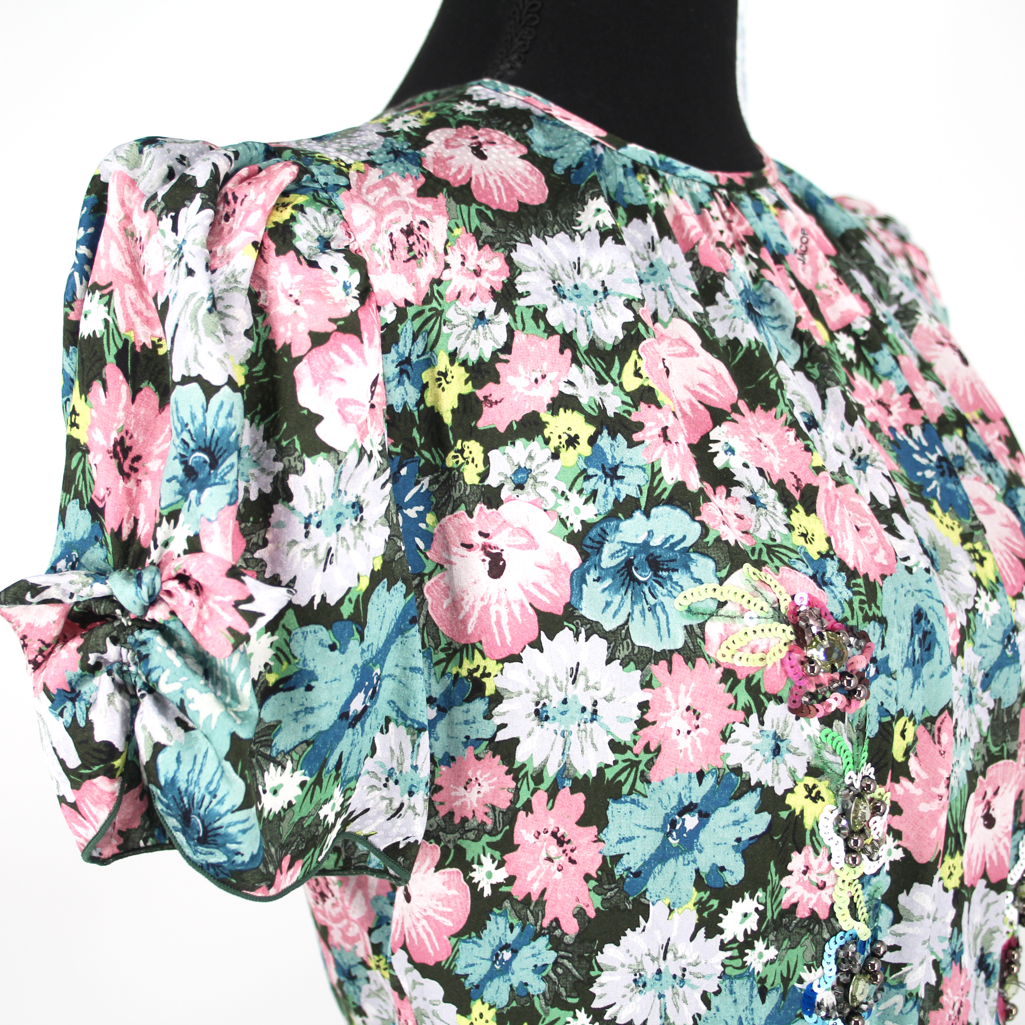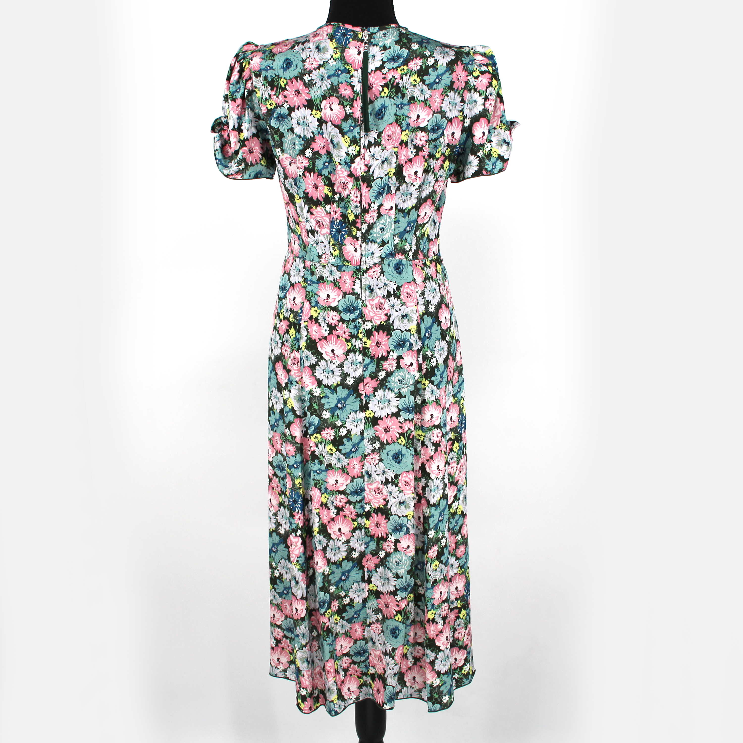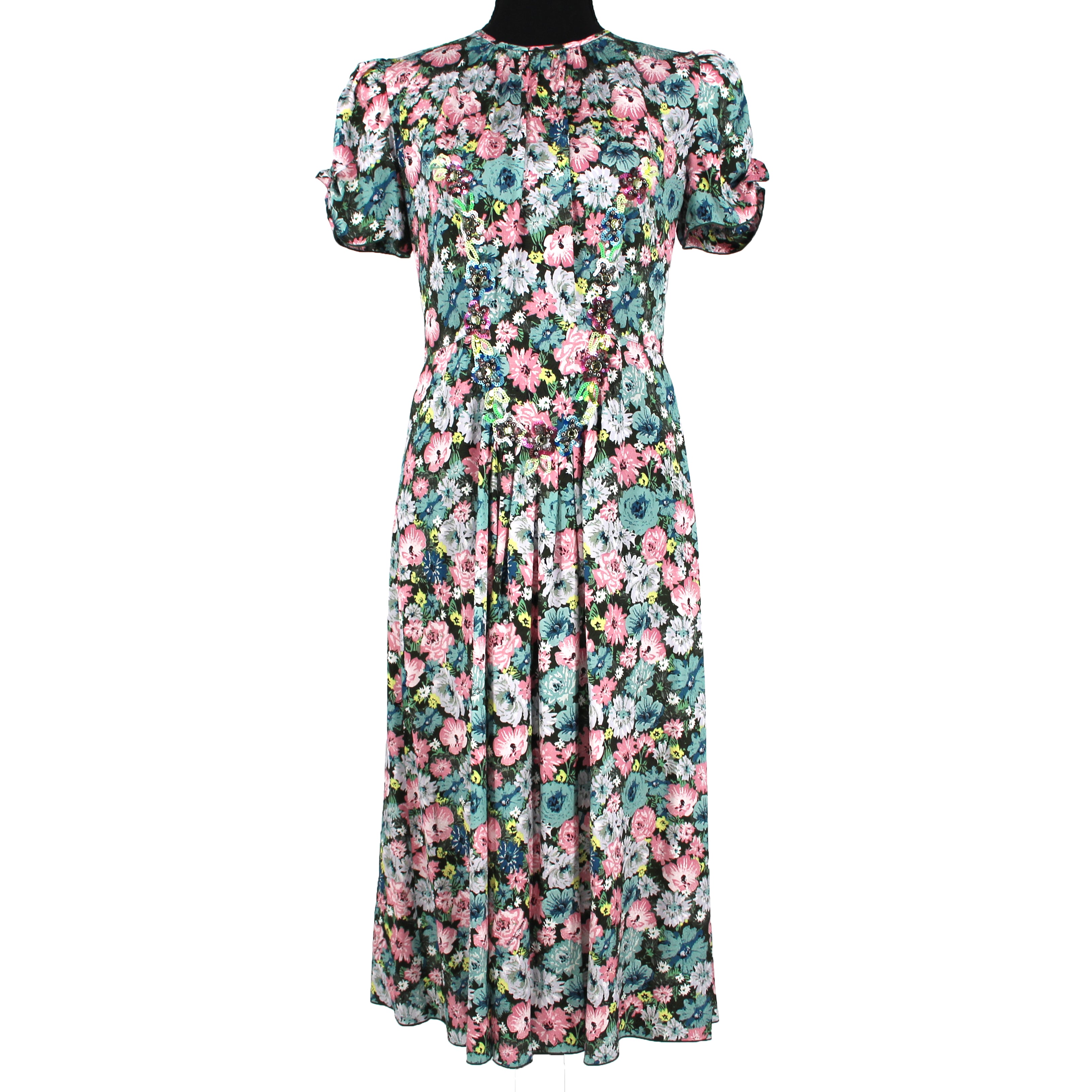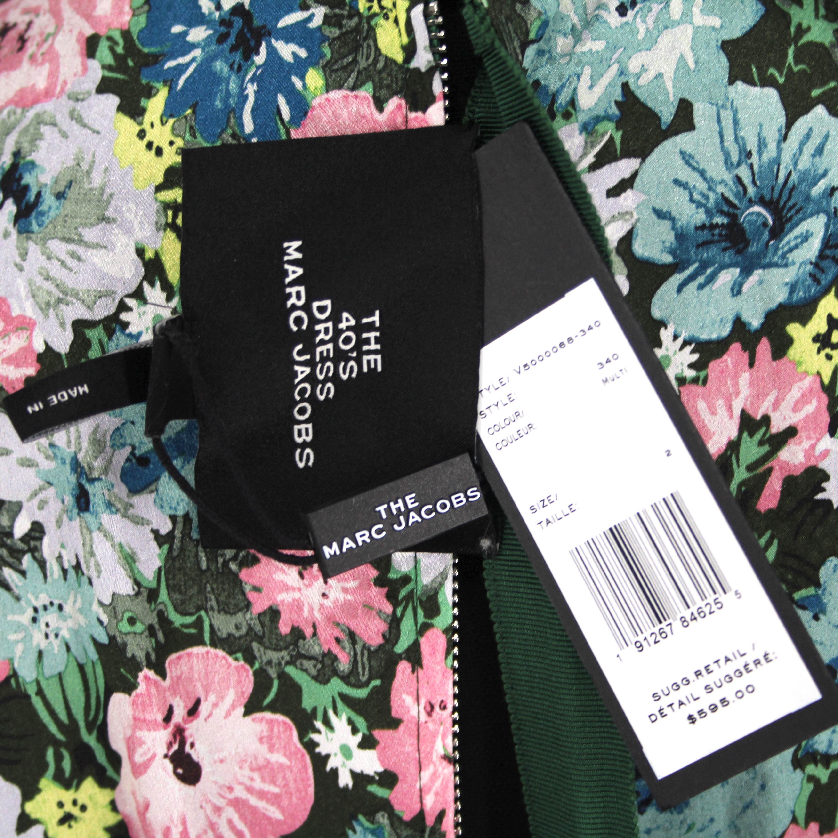 Marc Jacobs The 40's Pleated Silk Multicolor Floral Embellished Midi Dress.