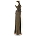 Reformation Anaiis Silk Morel Brown Open Back High Neck Maxi Dress
