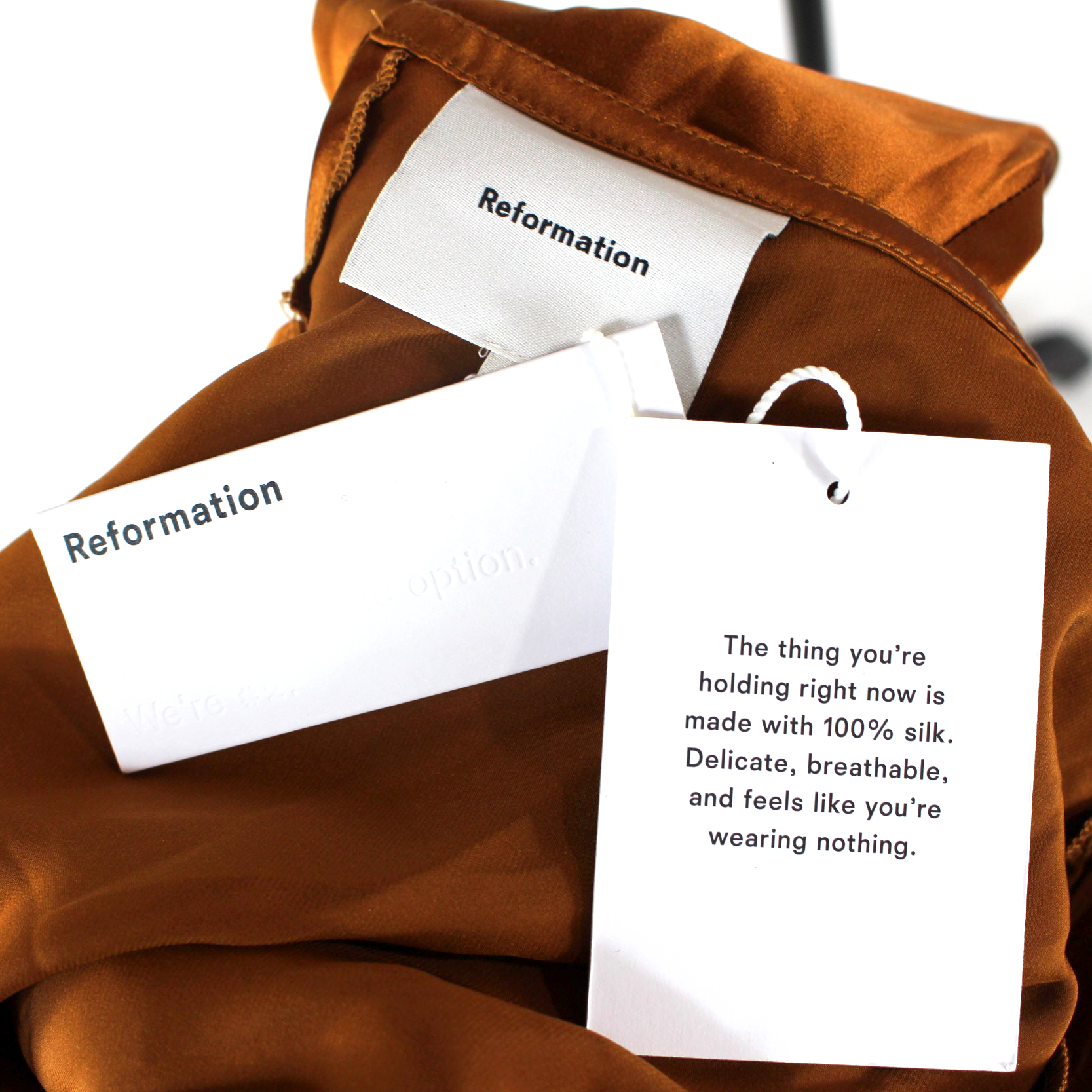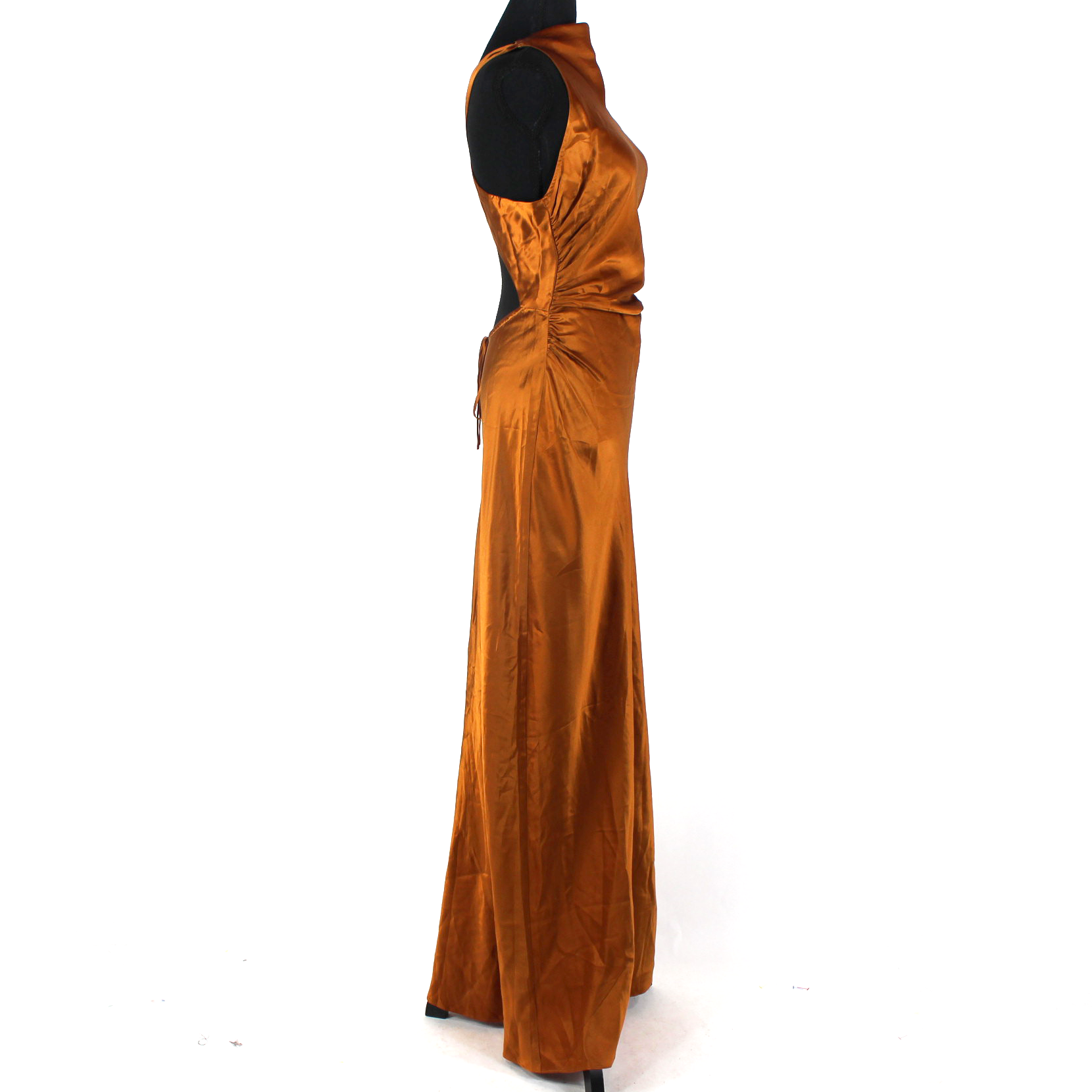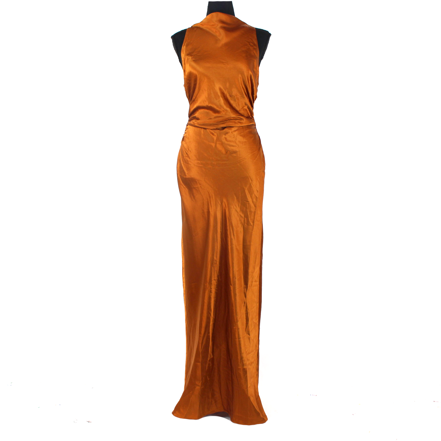 Reformation Anaiis Copper Silk High Neck Satin Sleeveless Maxi Dress