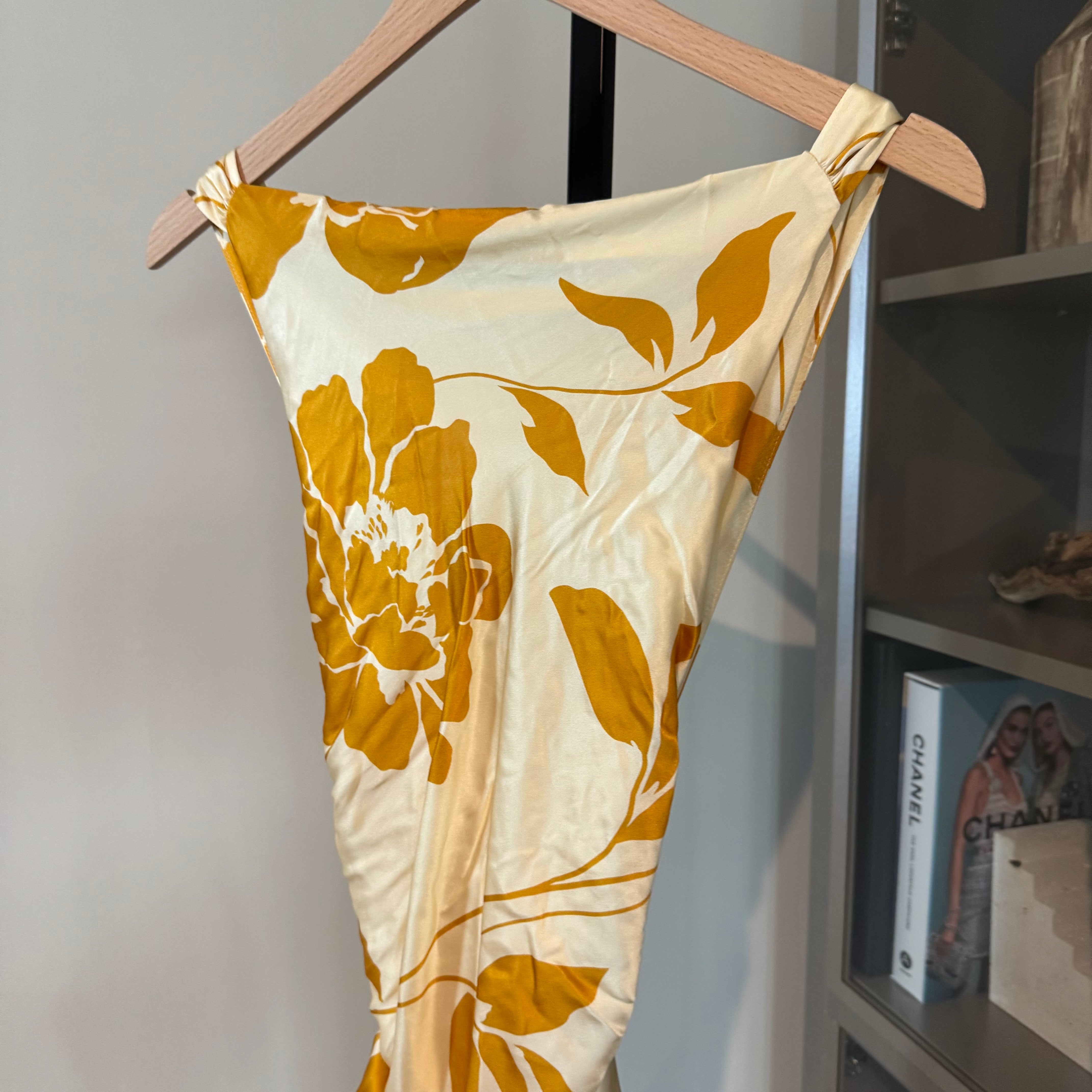 Reformation Anaiis Silk Lined Maracuya Golden Floral Open Back Maxi Dress