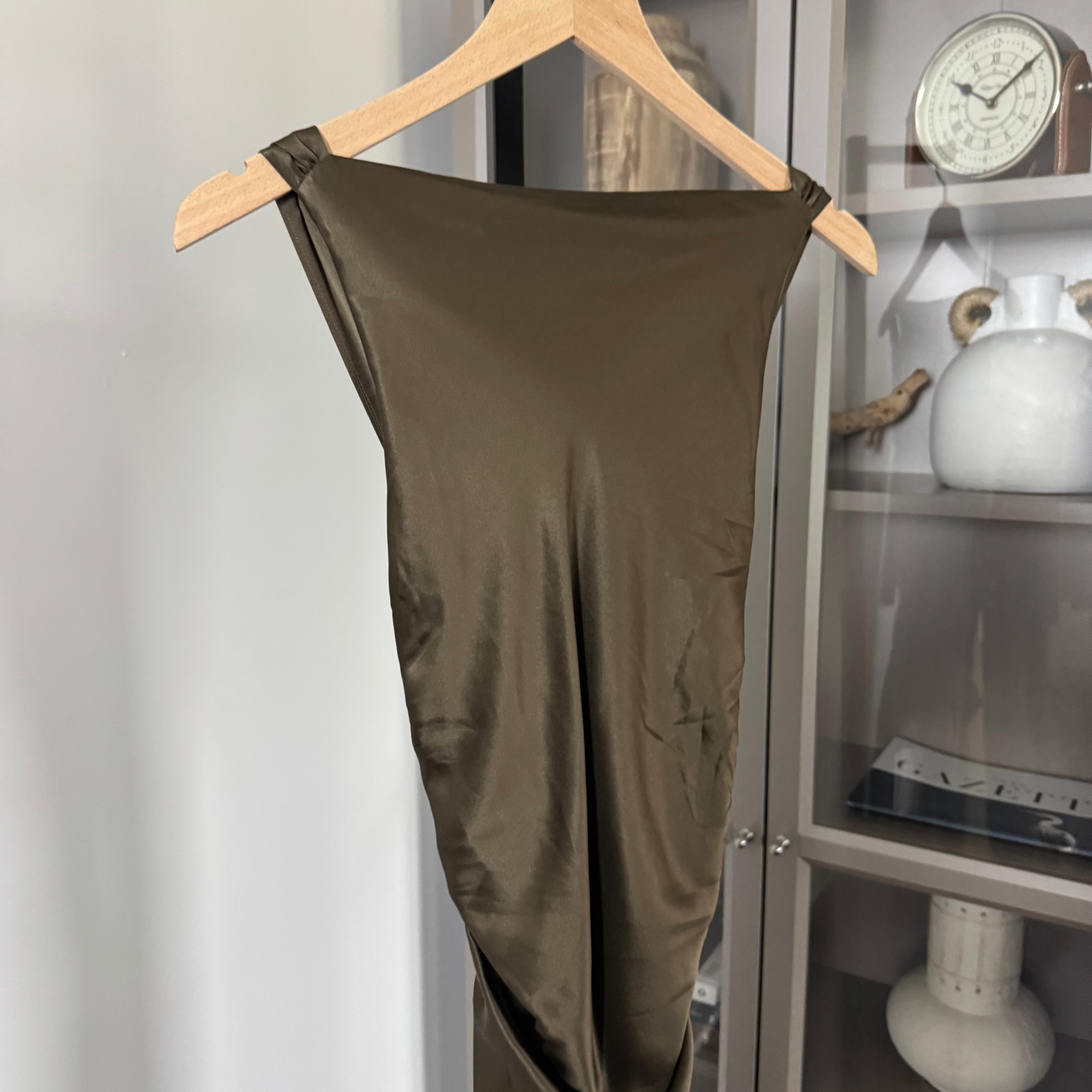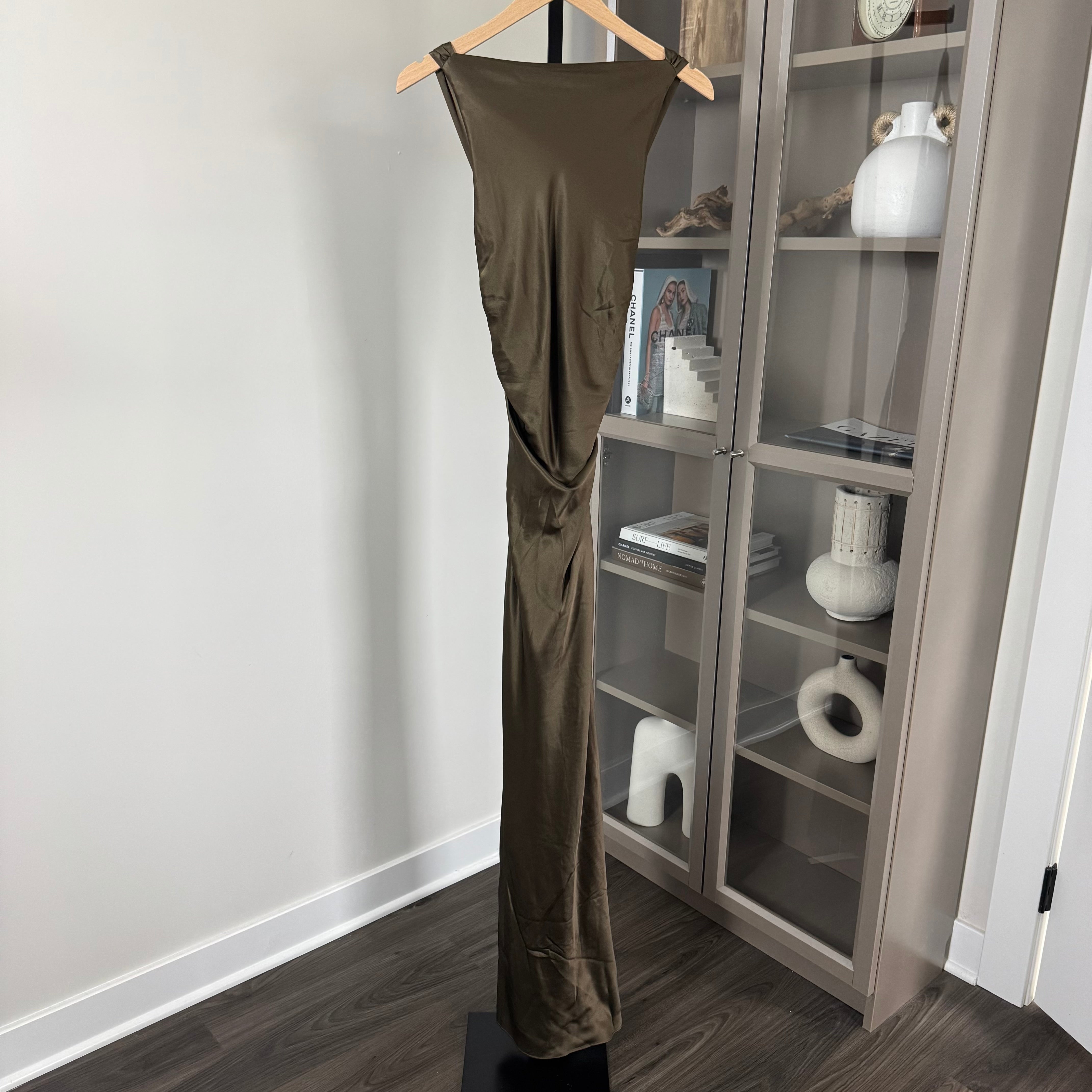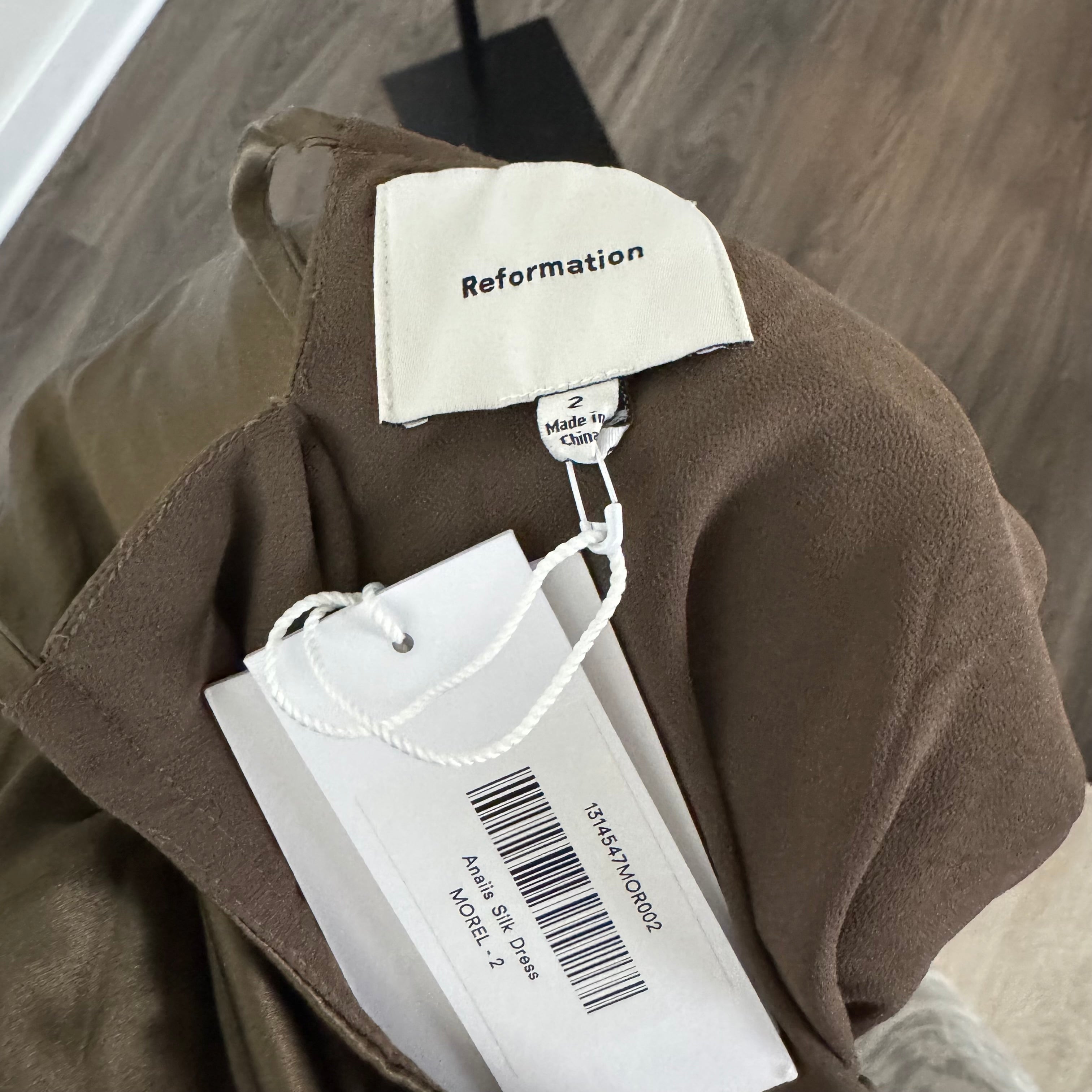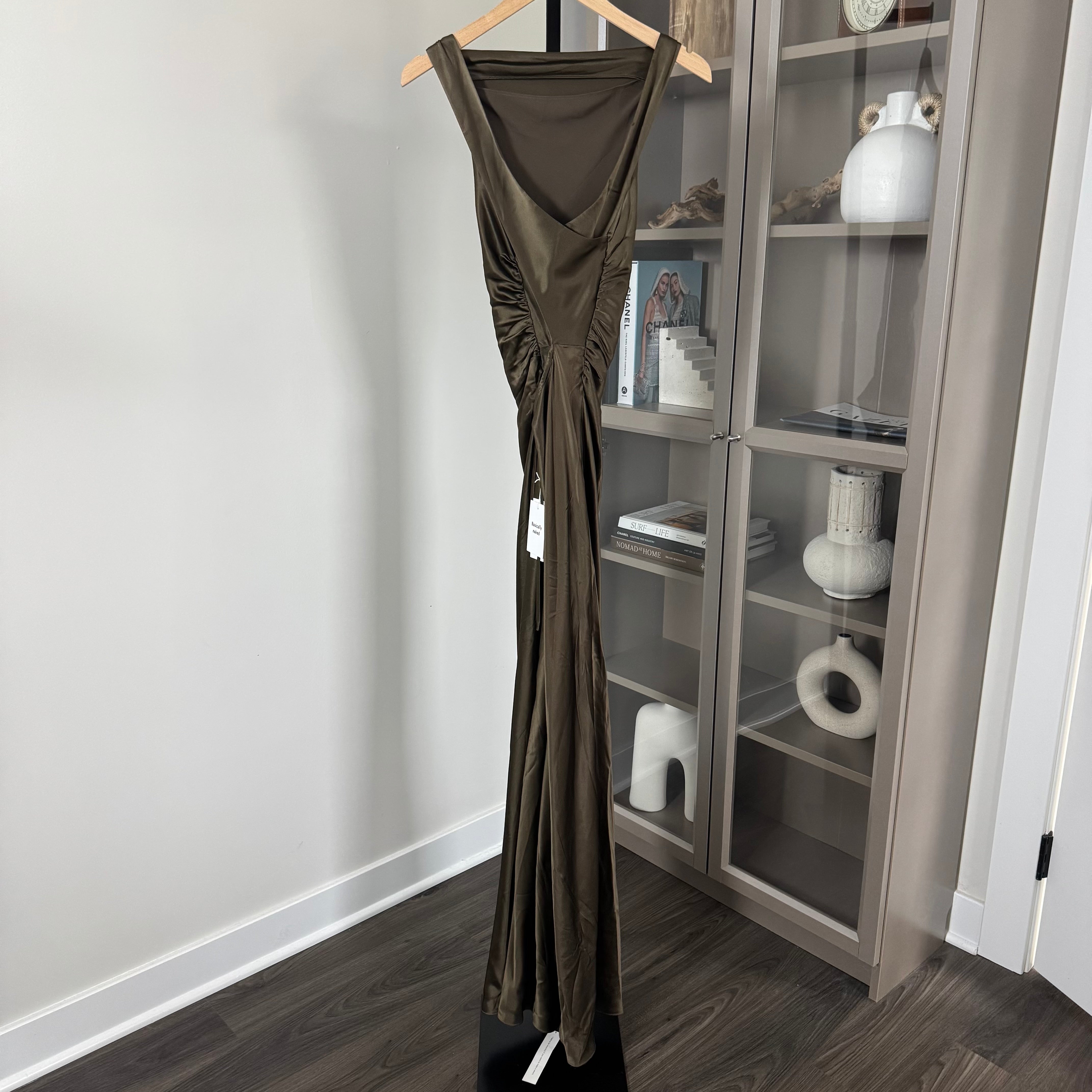 Reformation Anaiis Silk Morel Brown Sleeveless Cowl Neckline Maxi Dress