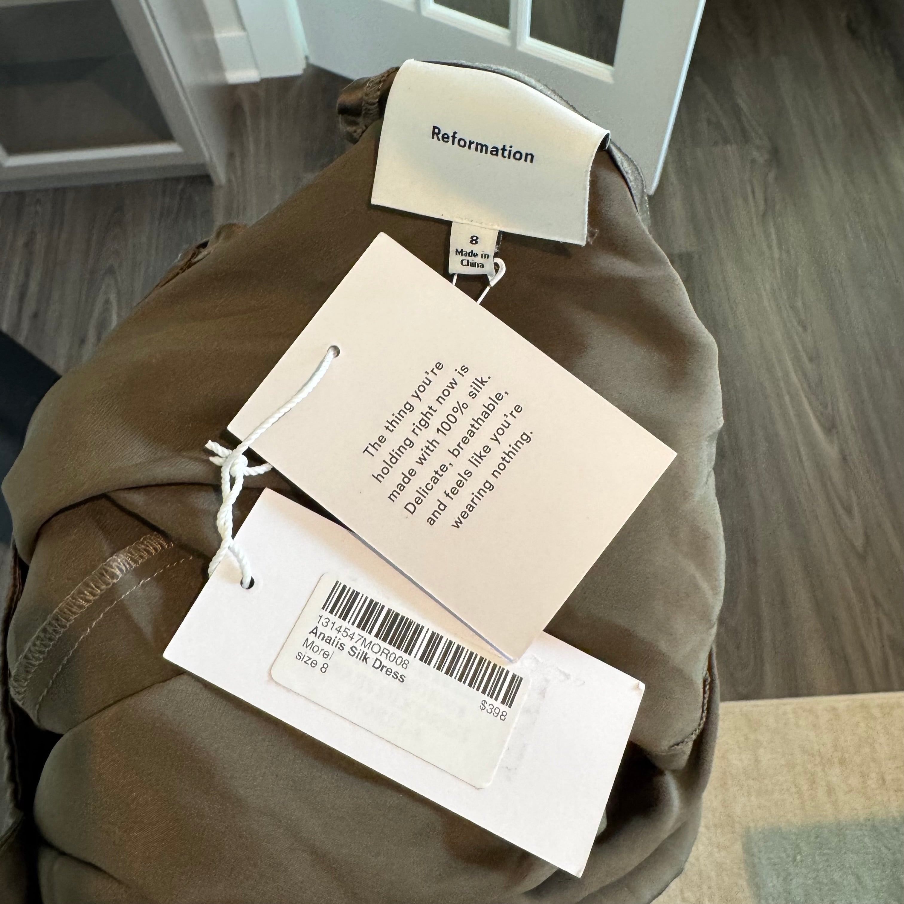 Reformation Anaiis Morel Brown Silk High Neck Open Back Maxi Dress