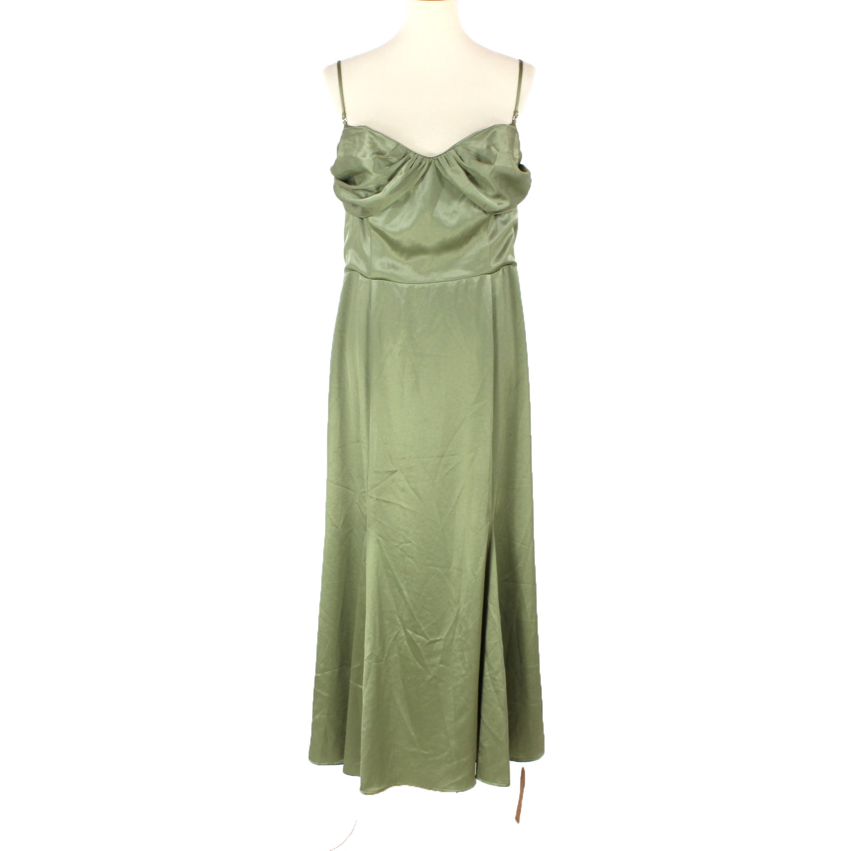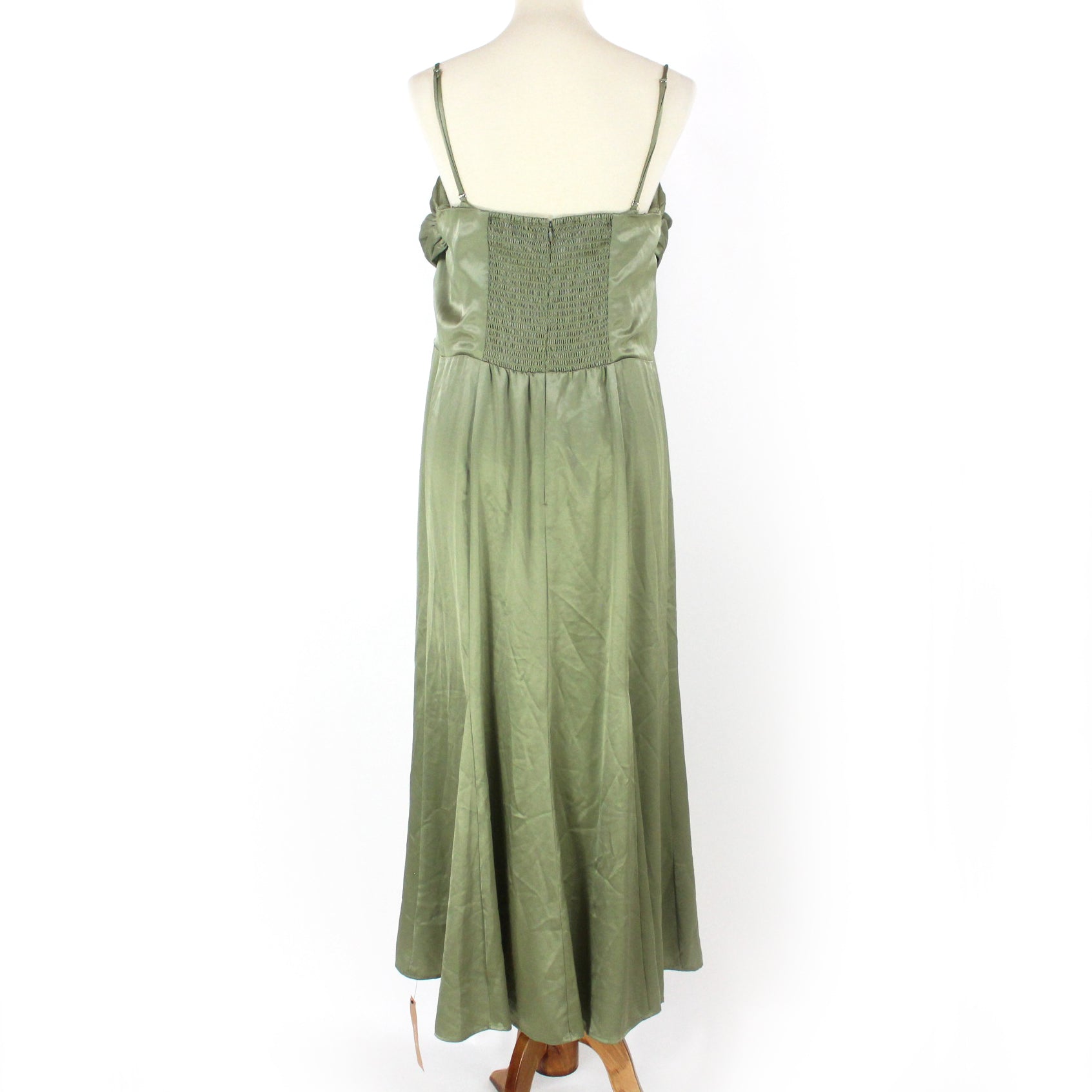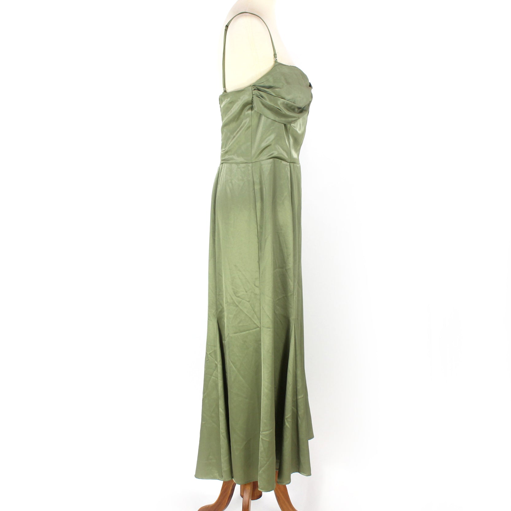 Reformation Hensley Artichoke Green Satin Sweetheart Neckline Maxi Dress