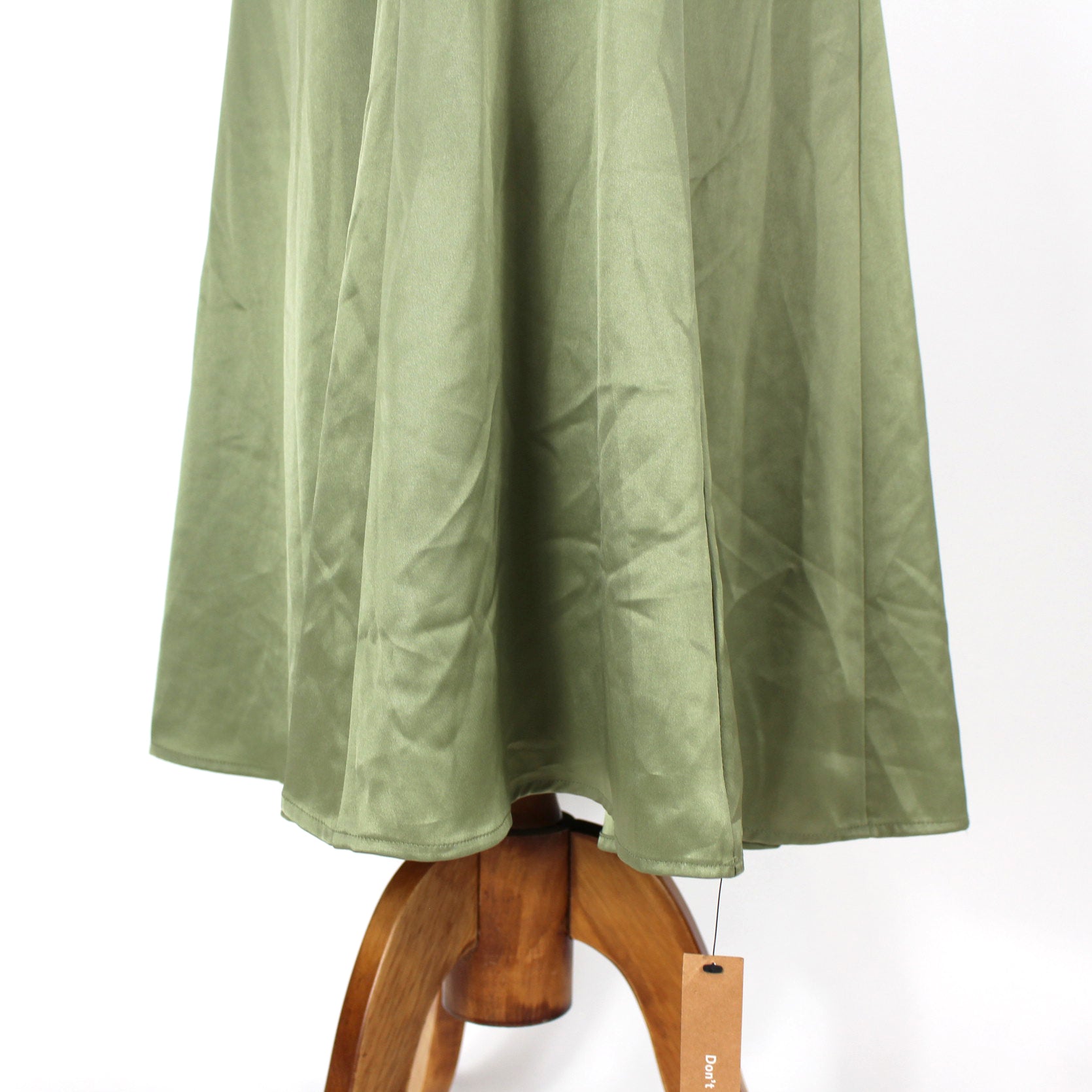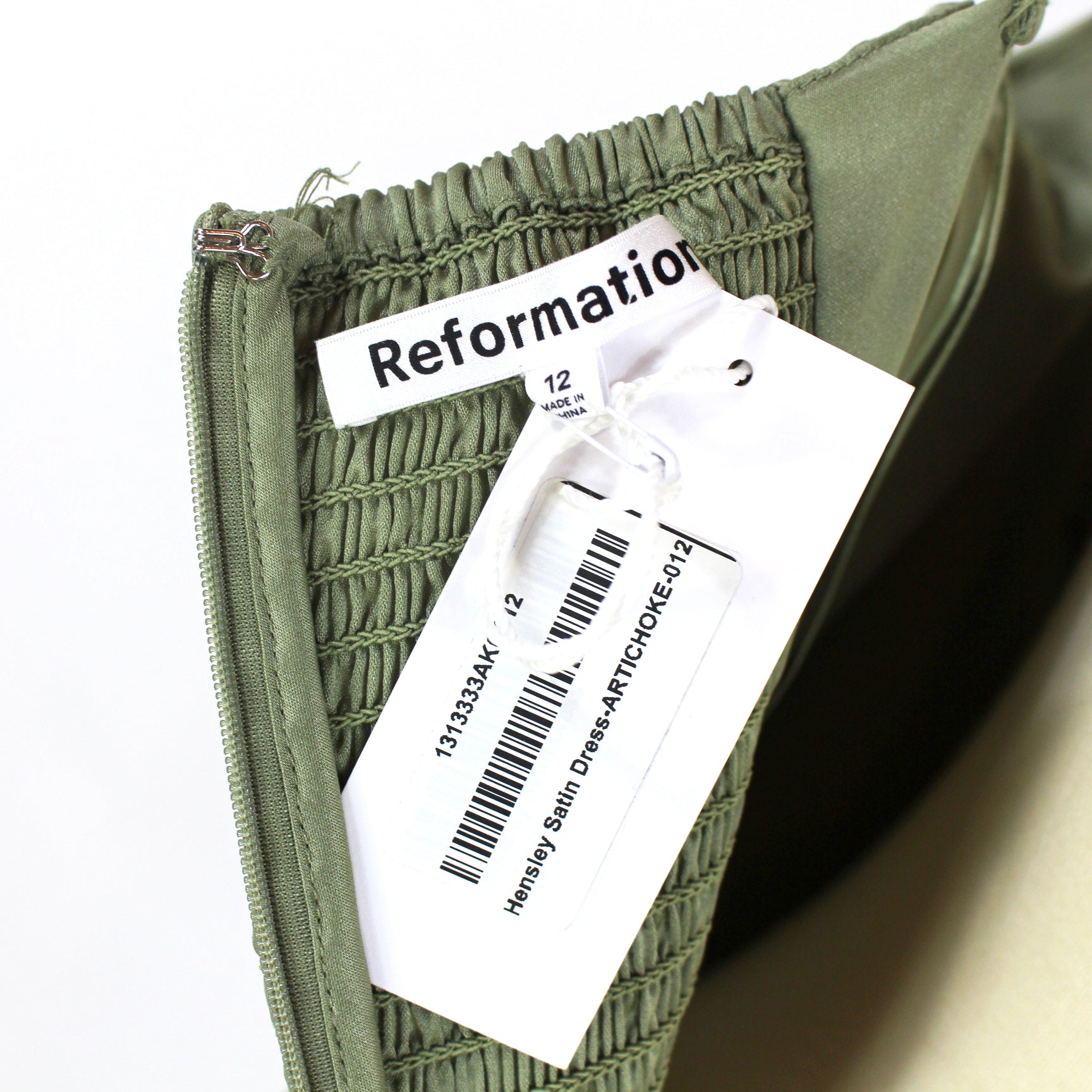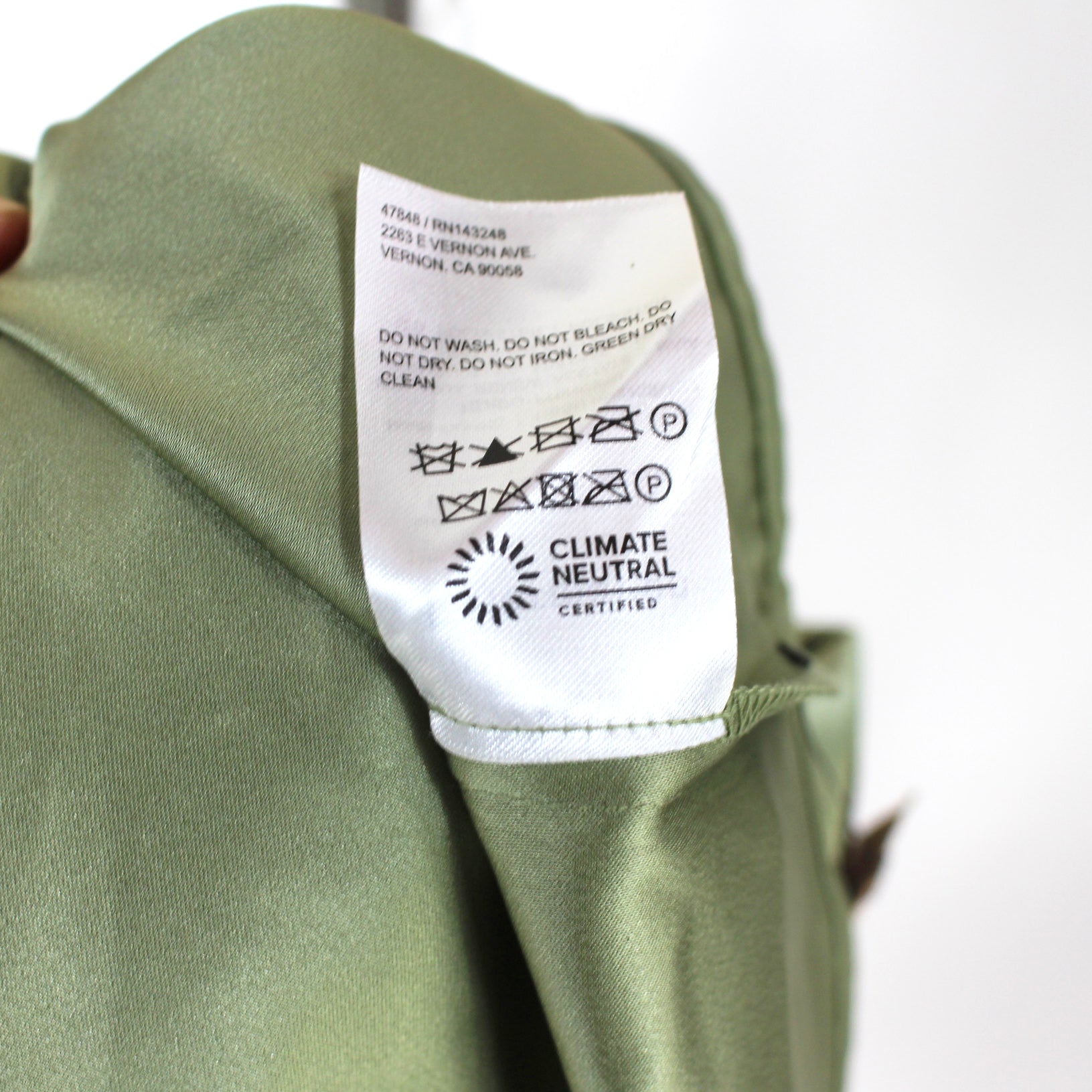Reformation Hensley Artichoke Green Satin Sweetheart Neckline Maxi Dress