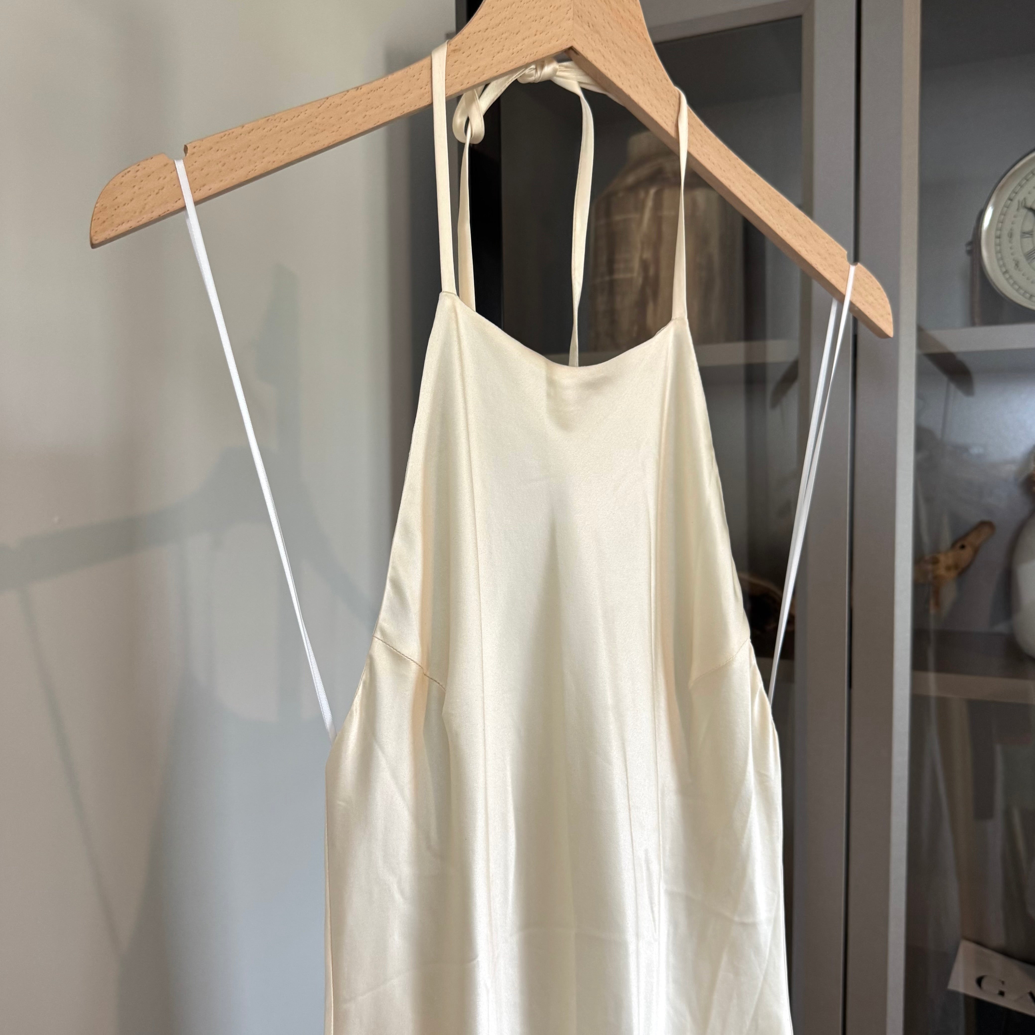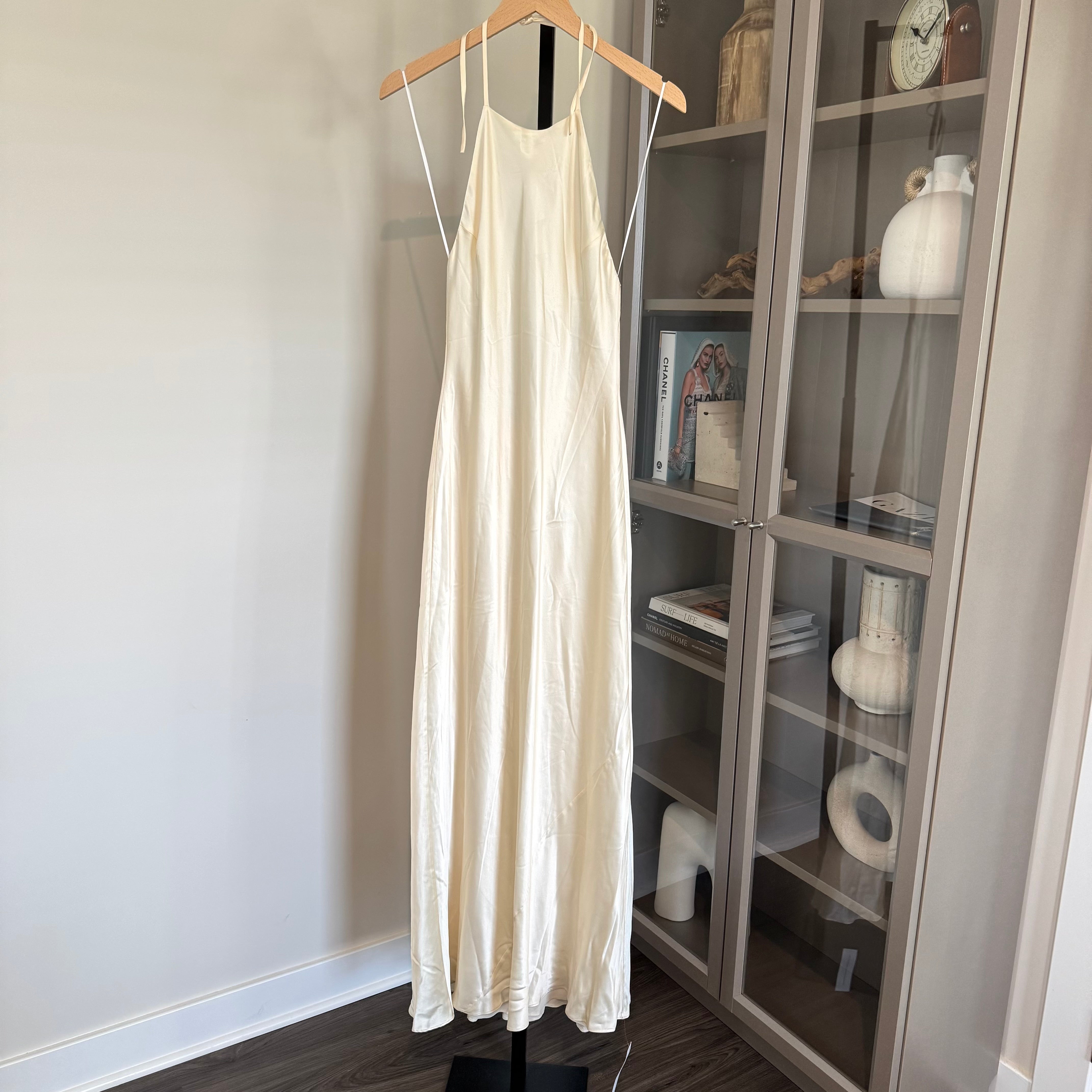 Reformation Jeany Silk Charmeuse Fior Di Latte Halter Neck Maxi Dress