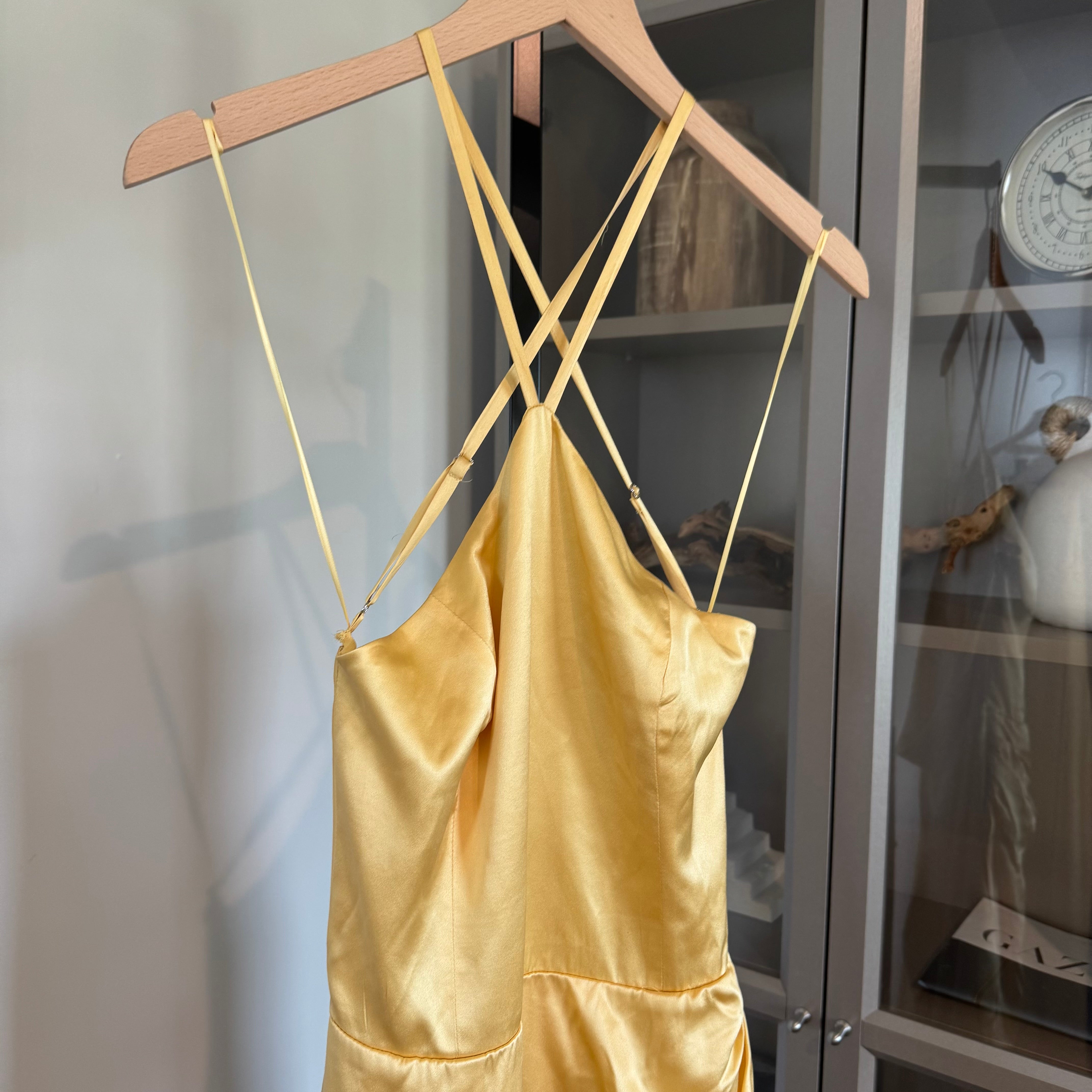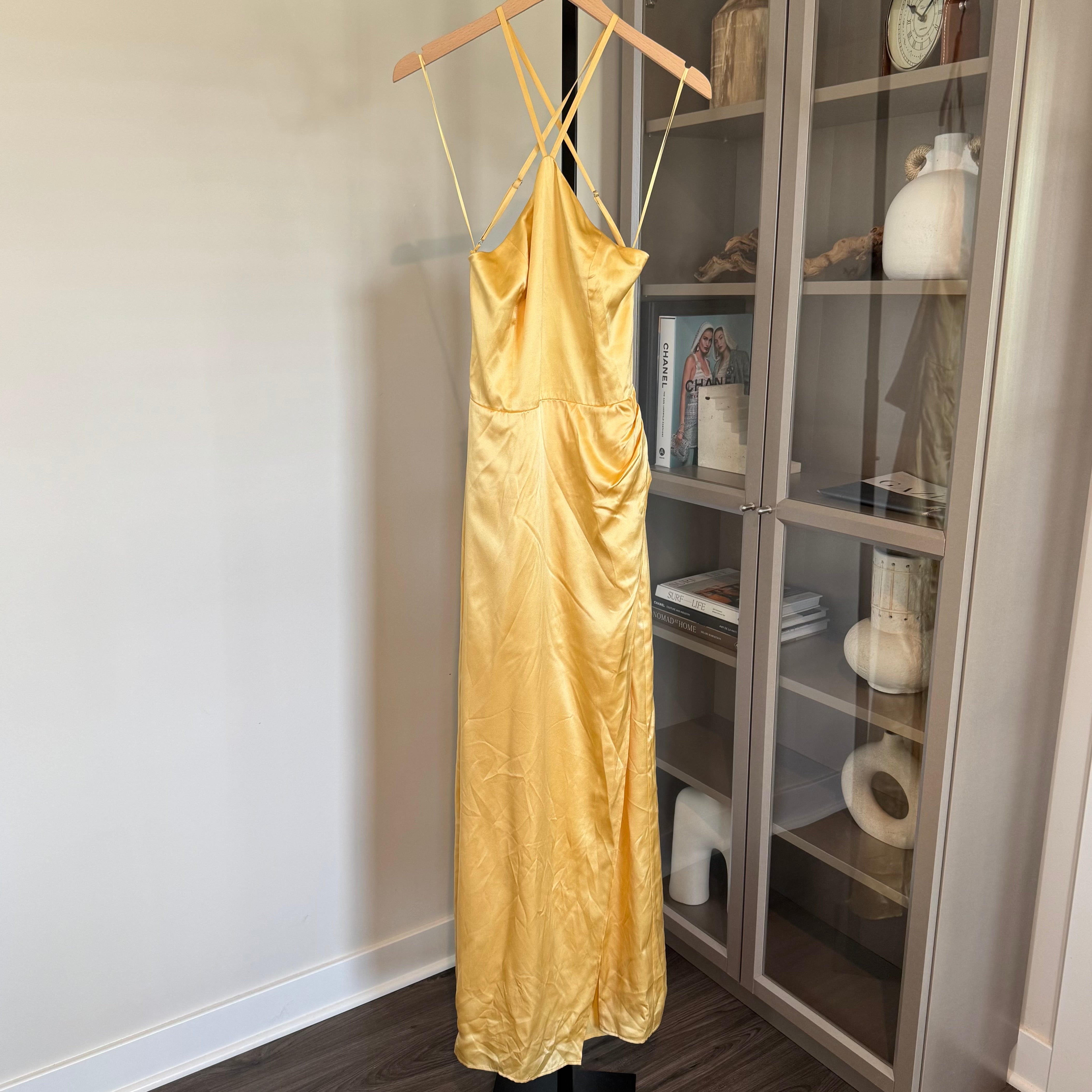Reformation Myla Silk Sunshine Yellow Halter Neck Maxi Dress
