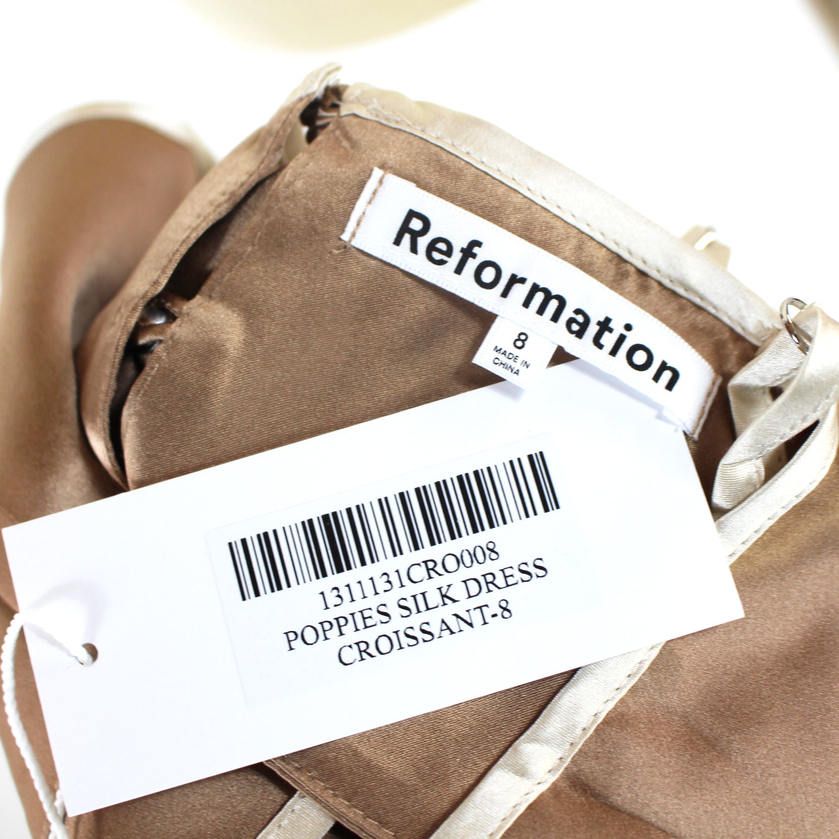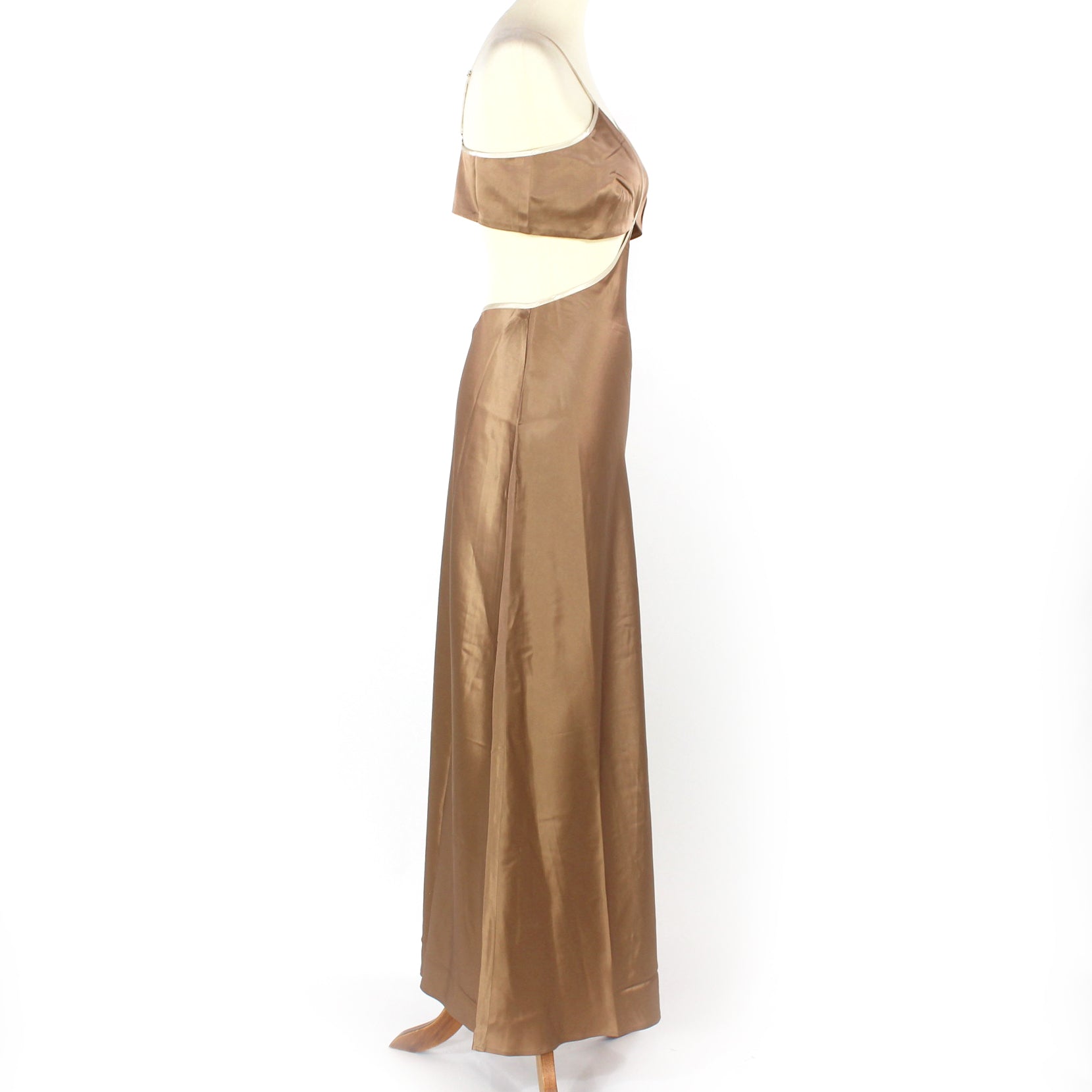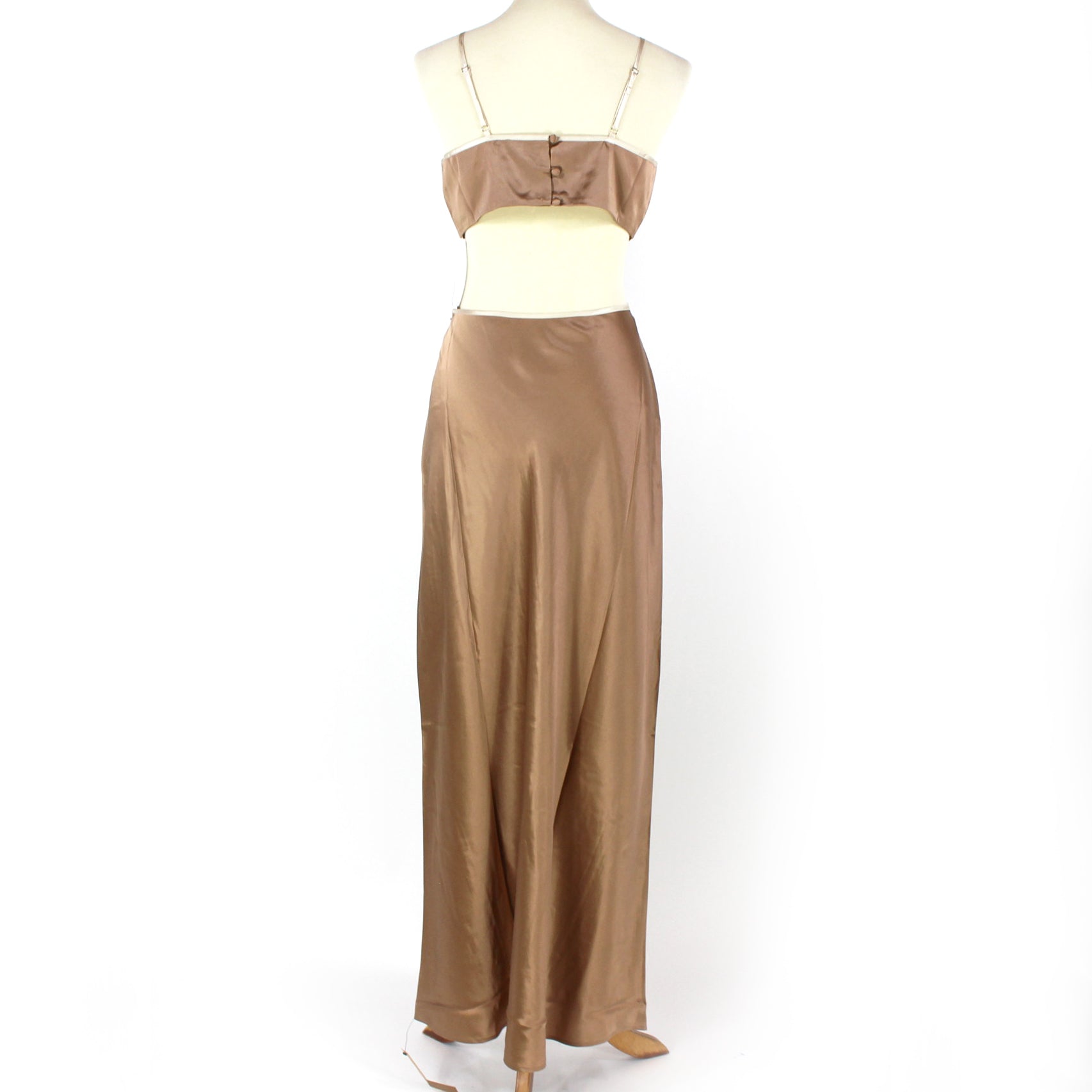 Reformation Poppies Silk Croissant Tan V-Neck Side Cut-Out Maxi Dress
