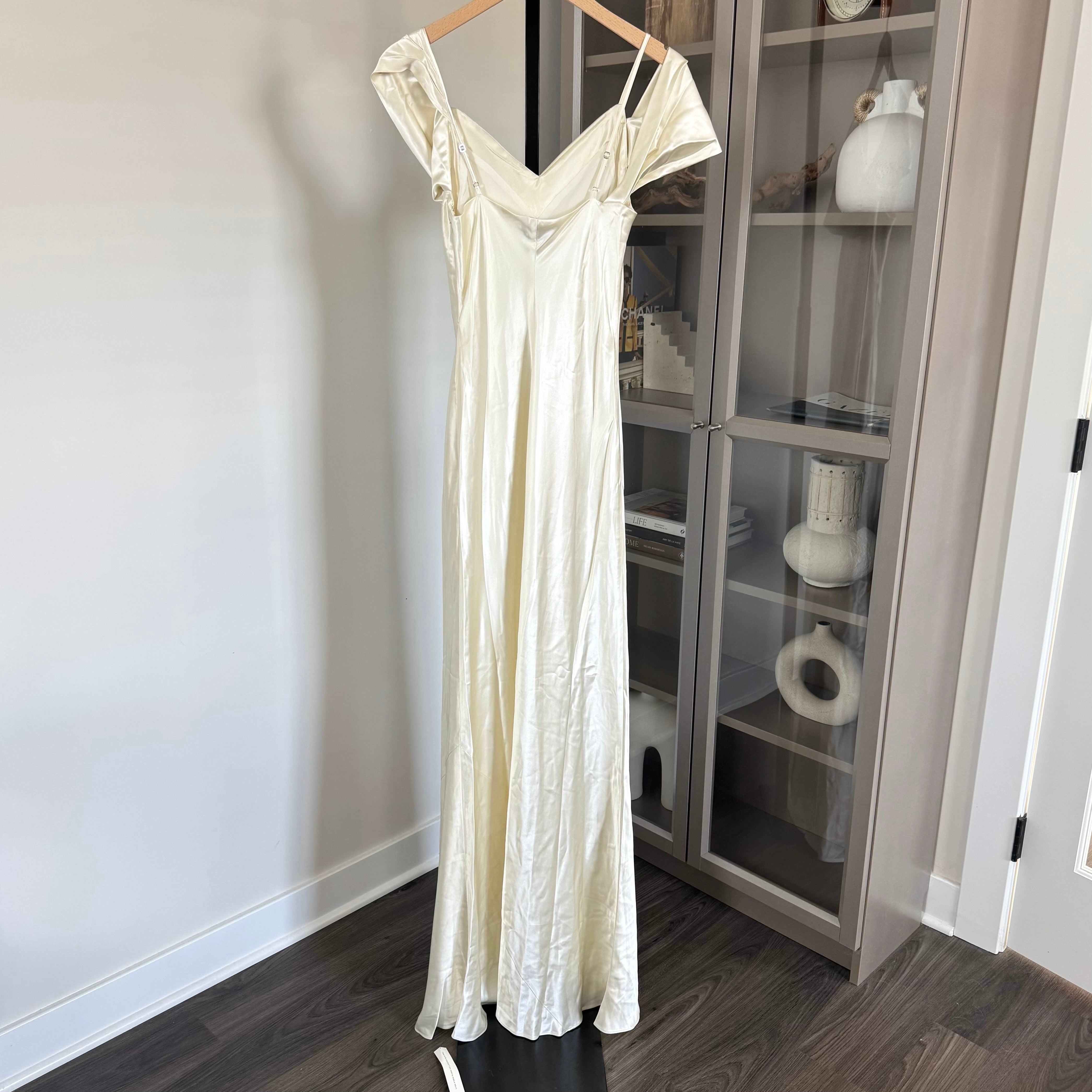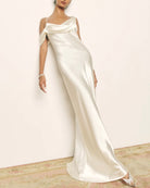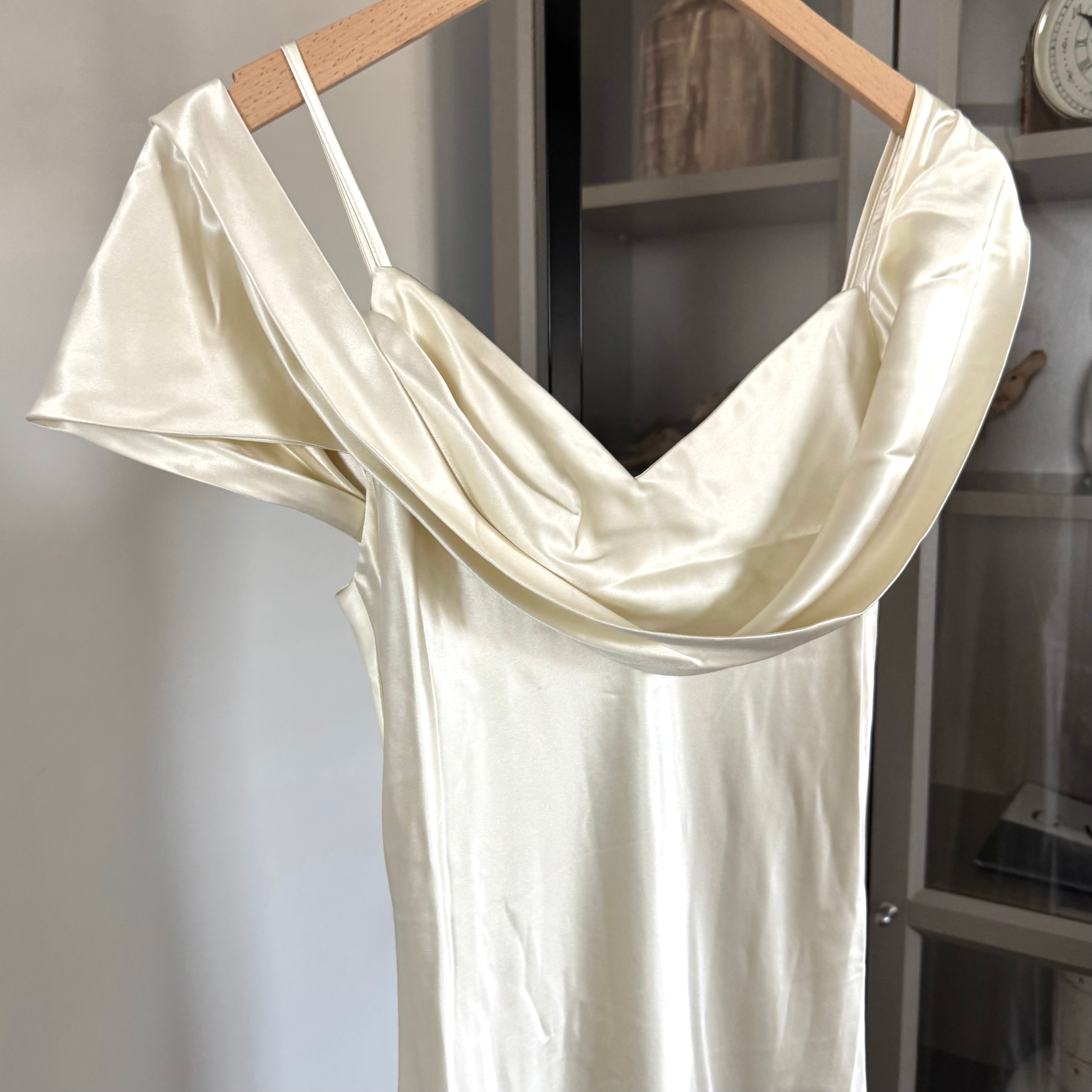Reformation Ronda Silk Ivory Asymmetrical Cowl Neck Maxi Dress