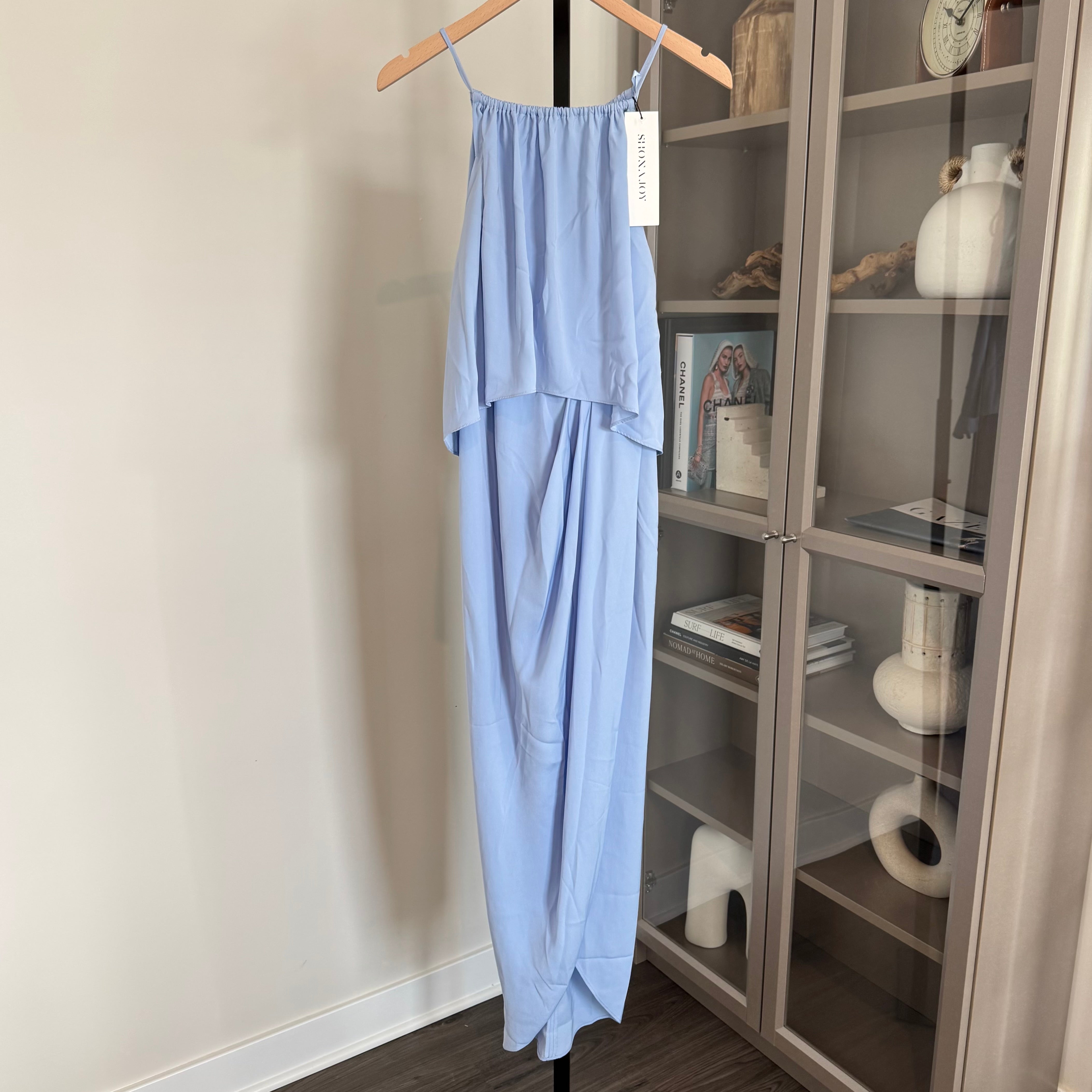 Shona Joy Luxe Frill Blue Sleeveless Tulip Hem Maxi Dress