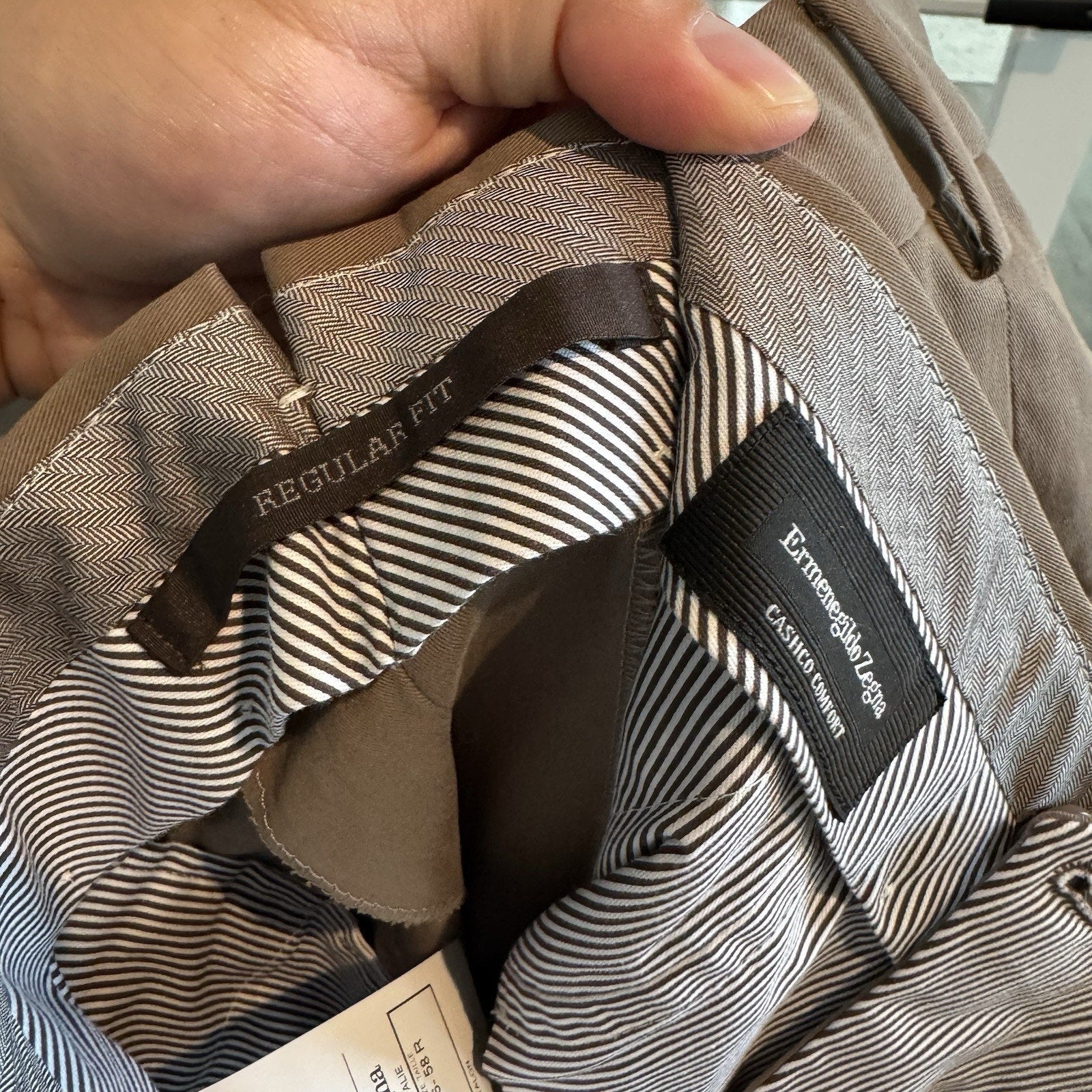 Ermenegildo Zegna Brown Cotton Cashmere Tapered Leg Trouser Pants