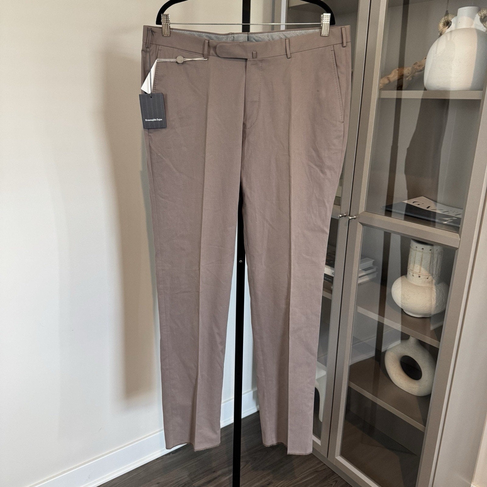 Ermenegildo Zegna Slim Fit Tapered Brown Cotton Cashmere Chino Pants