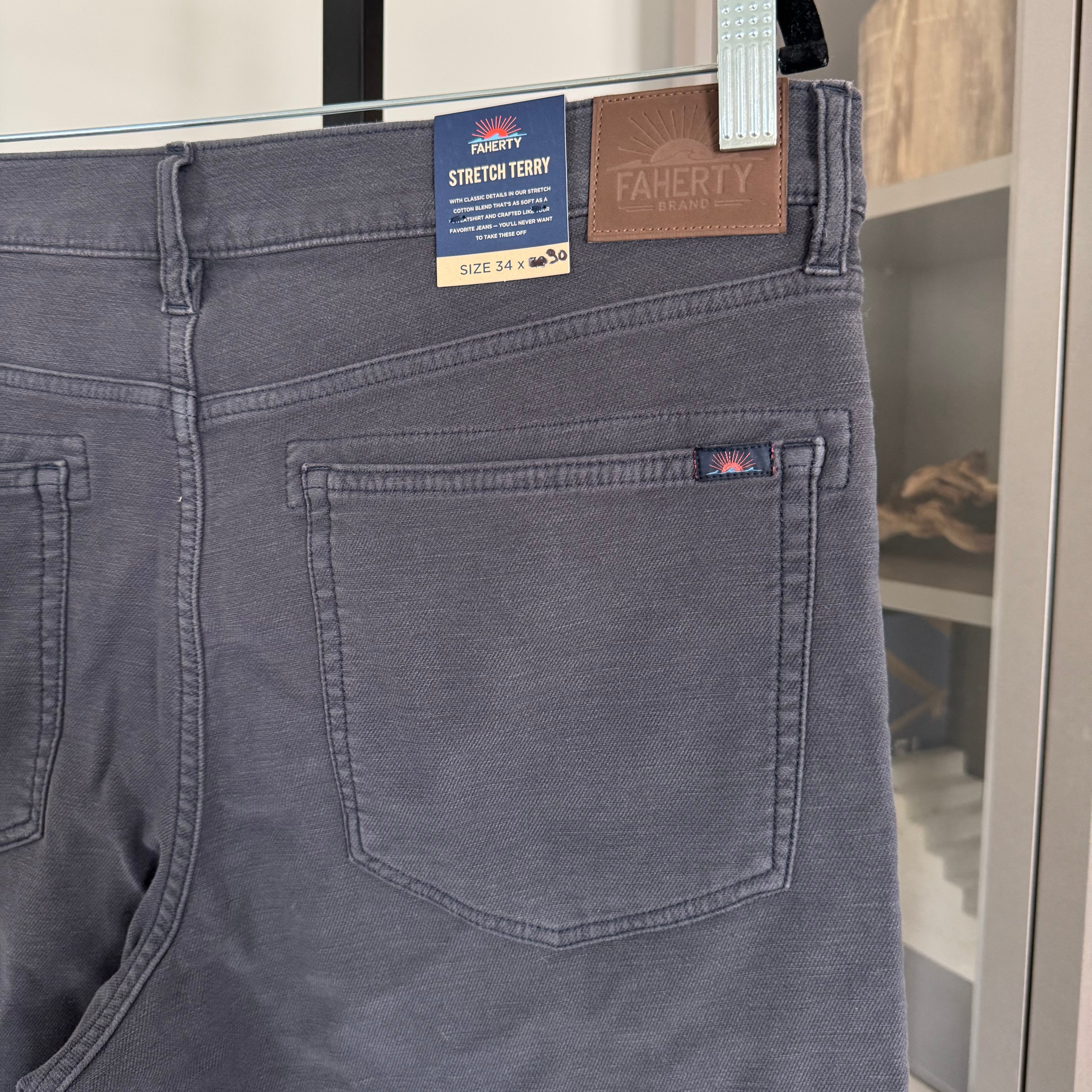 Faherty Stretch Terry 5 Pocket Slim Straight Leg Navy Blue Pants