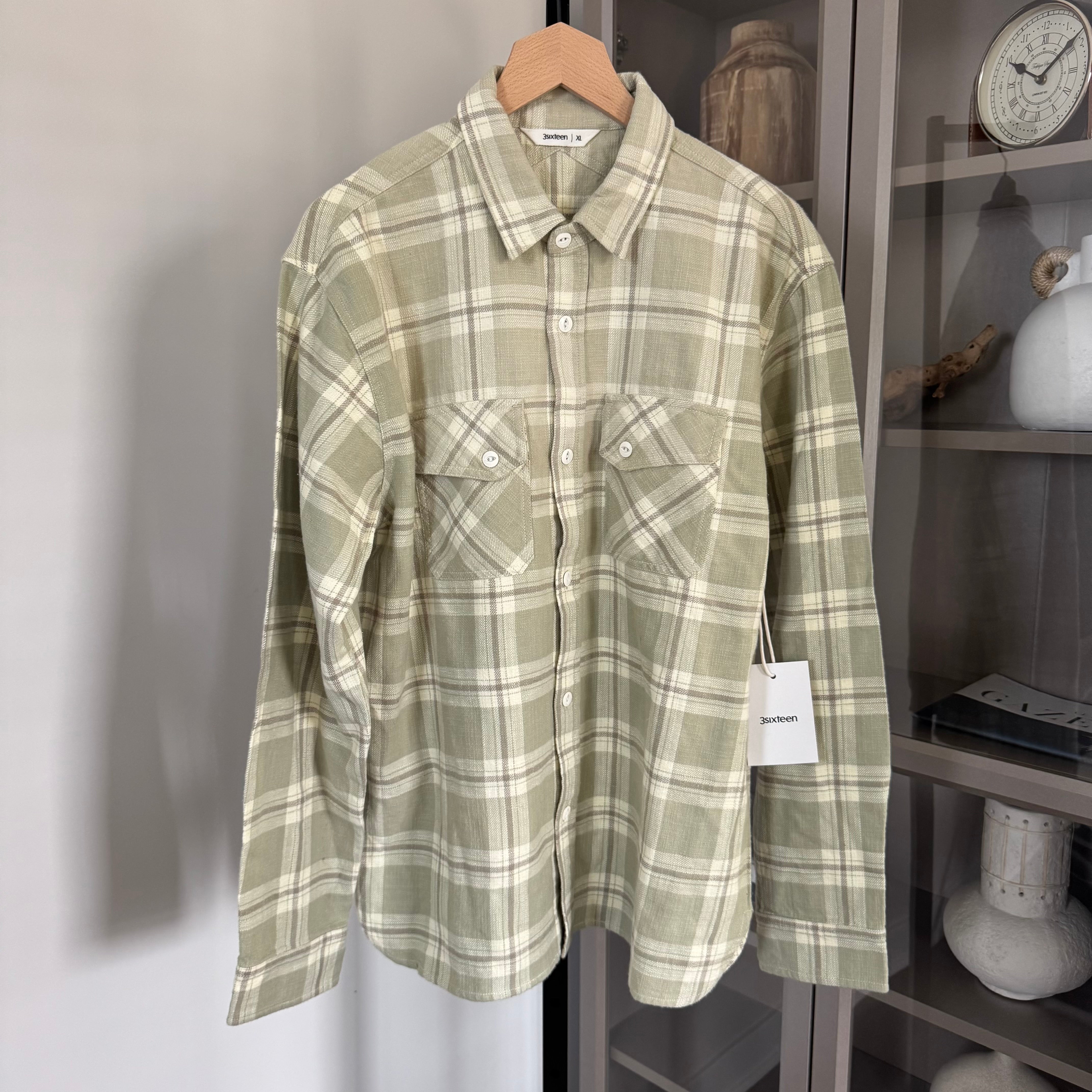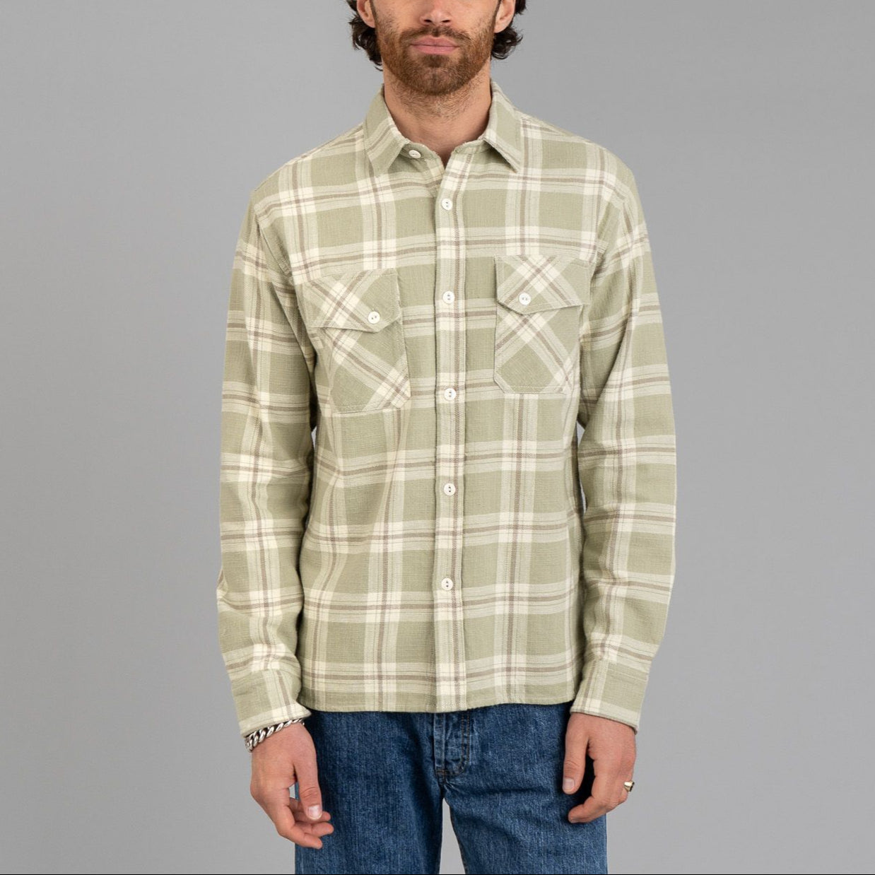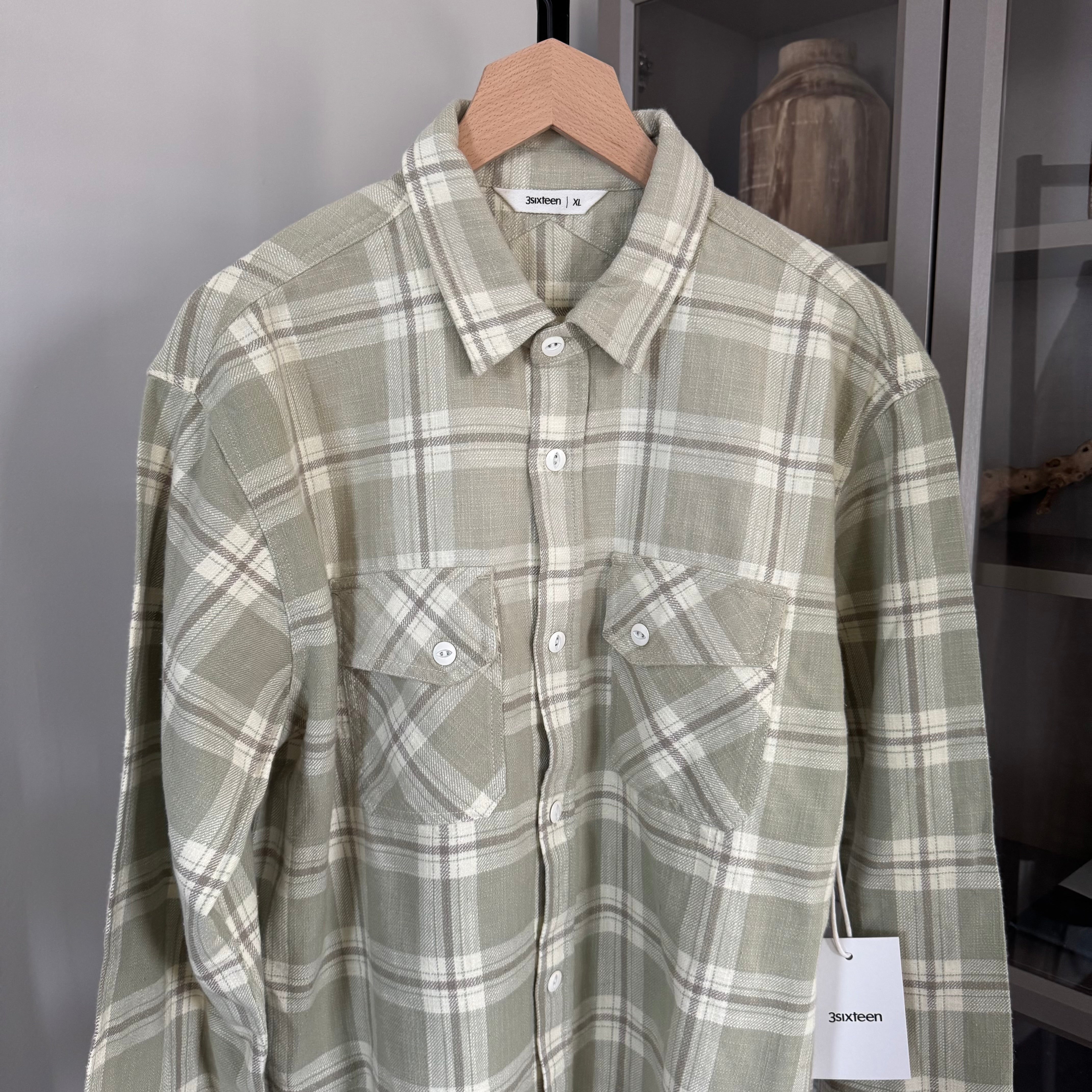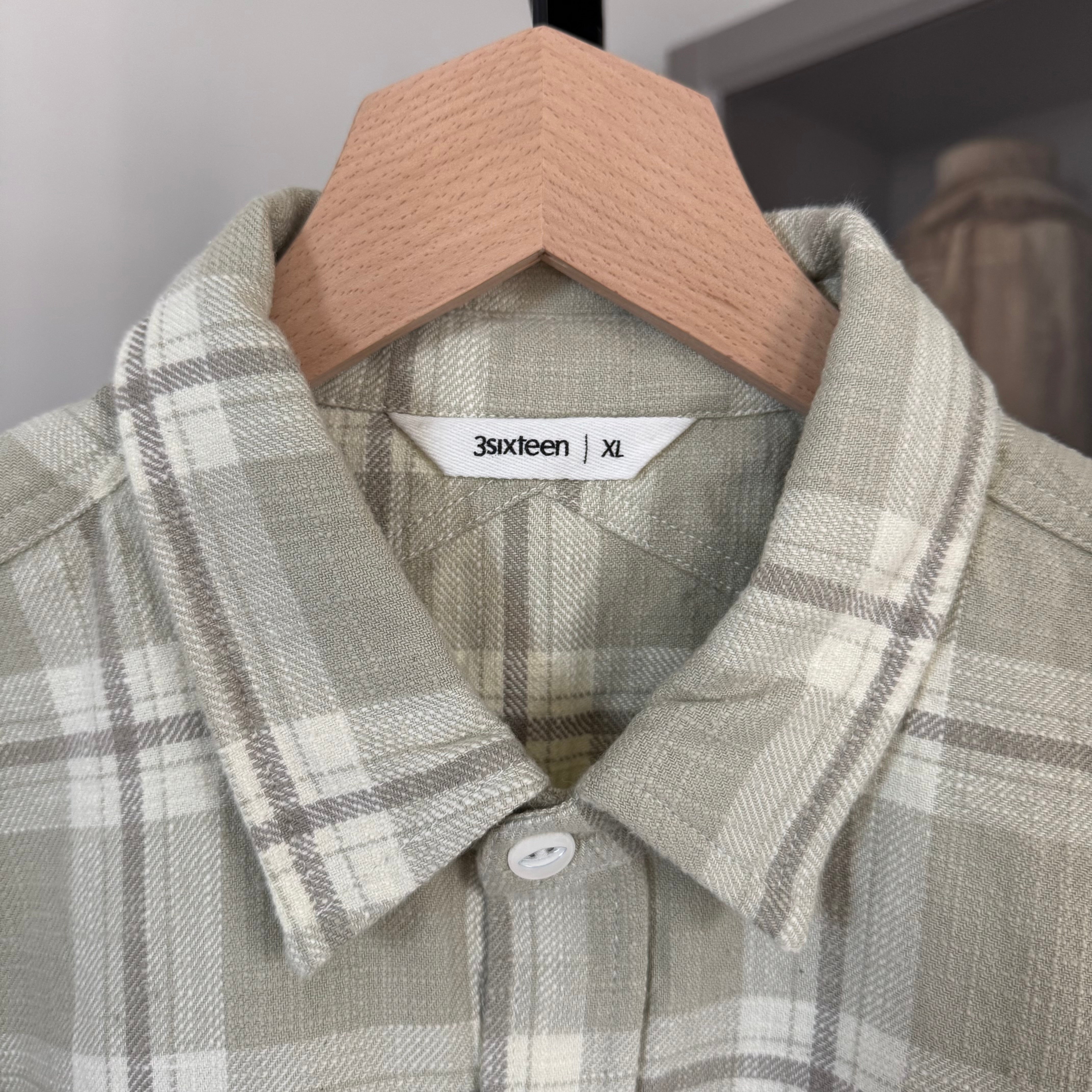 3sixteen Crosscut Flannel Seafoam Slub Plaid Long Sleeve Shirt
