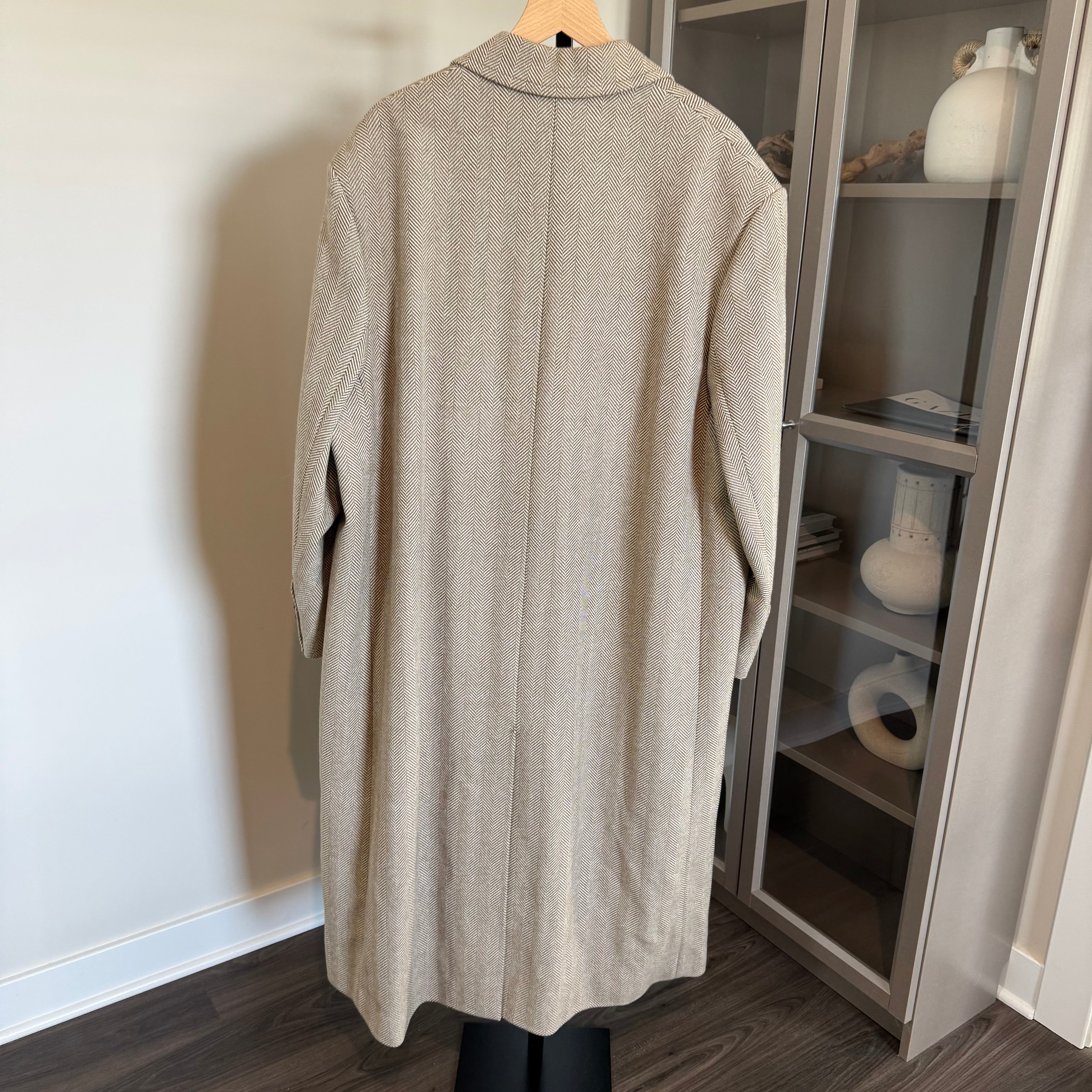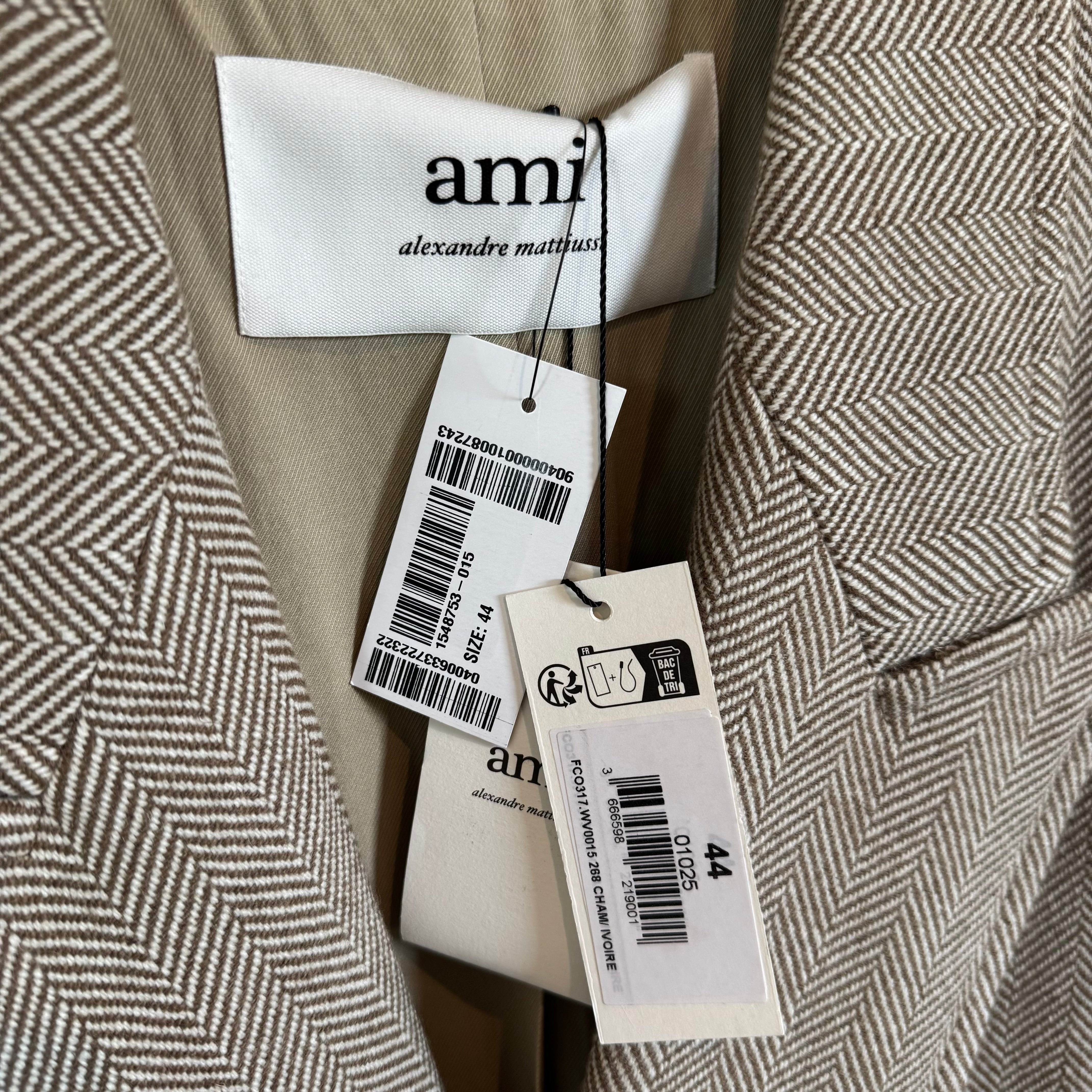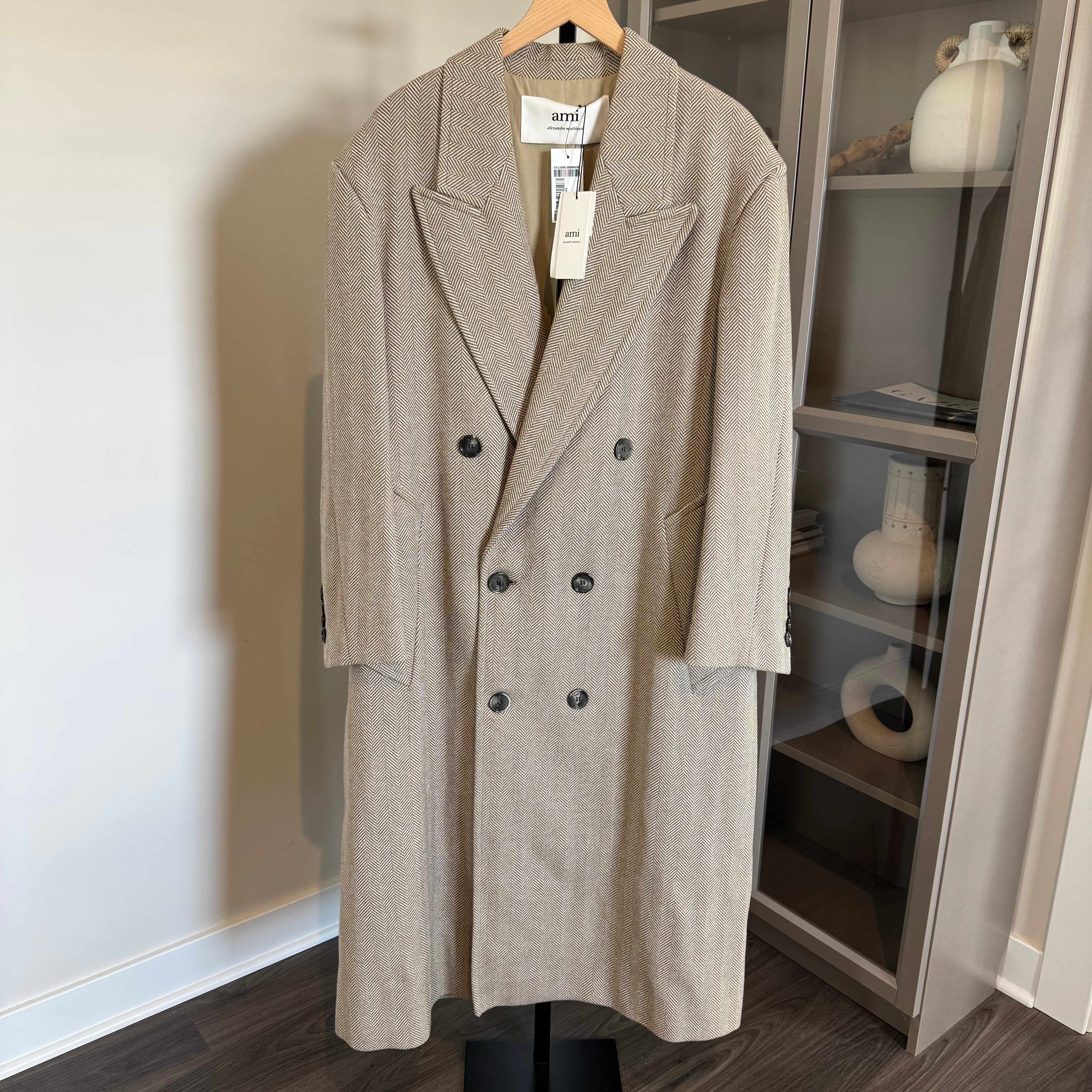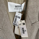 AMI Paris Double Breasted Herringbone Tan Brown Ivory Long Midi Coat