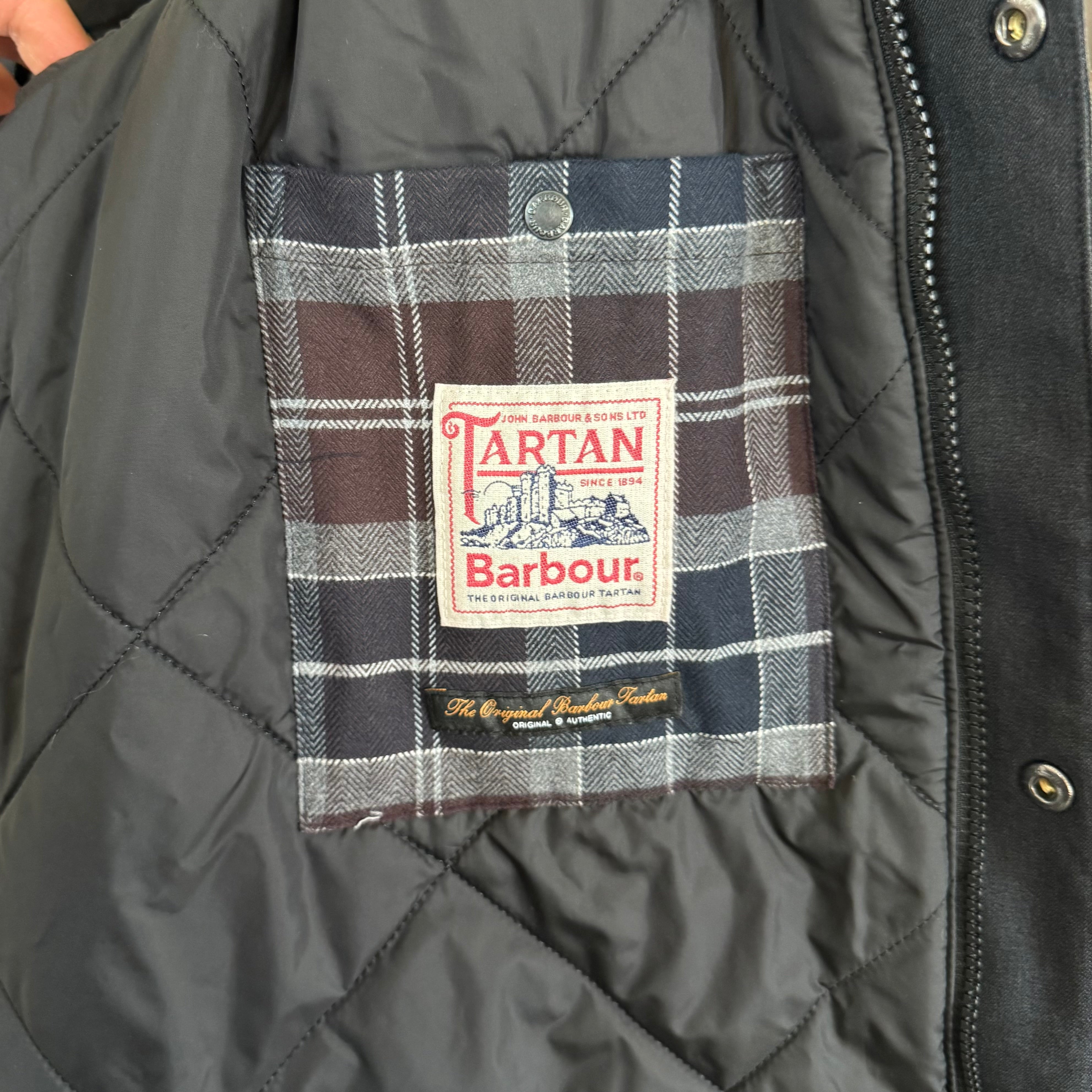 Barbour embroidery to lower left pocket