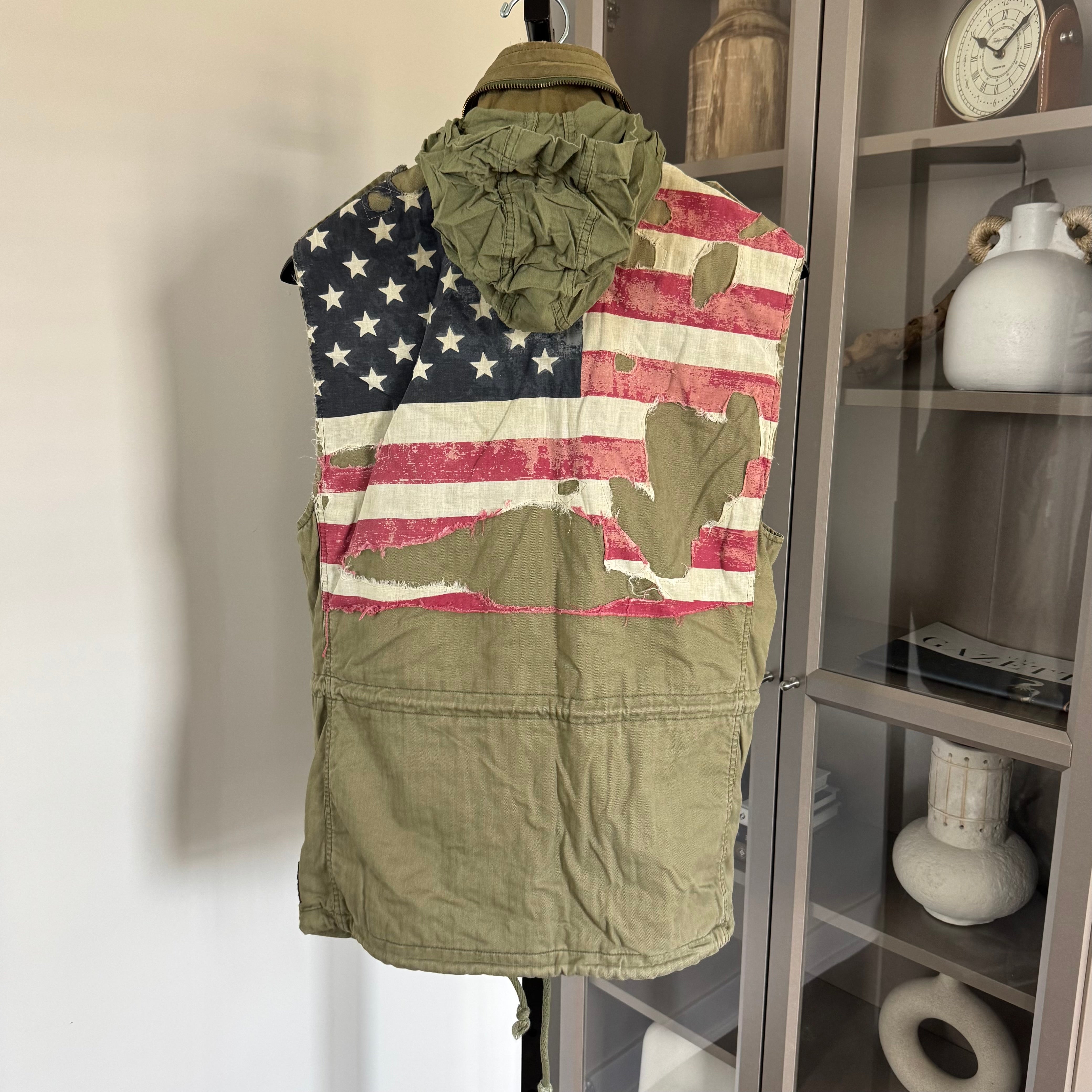 Denim & Supply Ralph Lauren Military Green Utility USA Flag Vest
