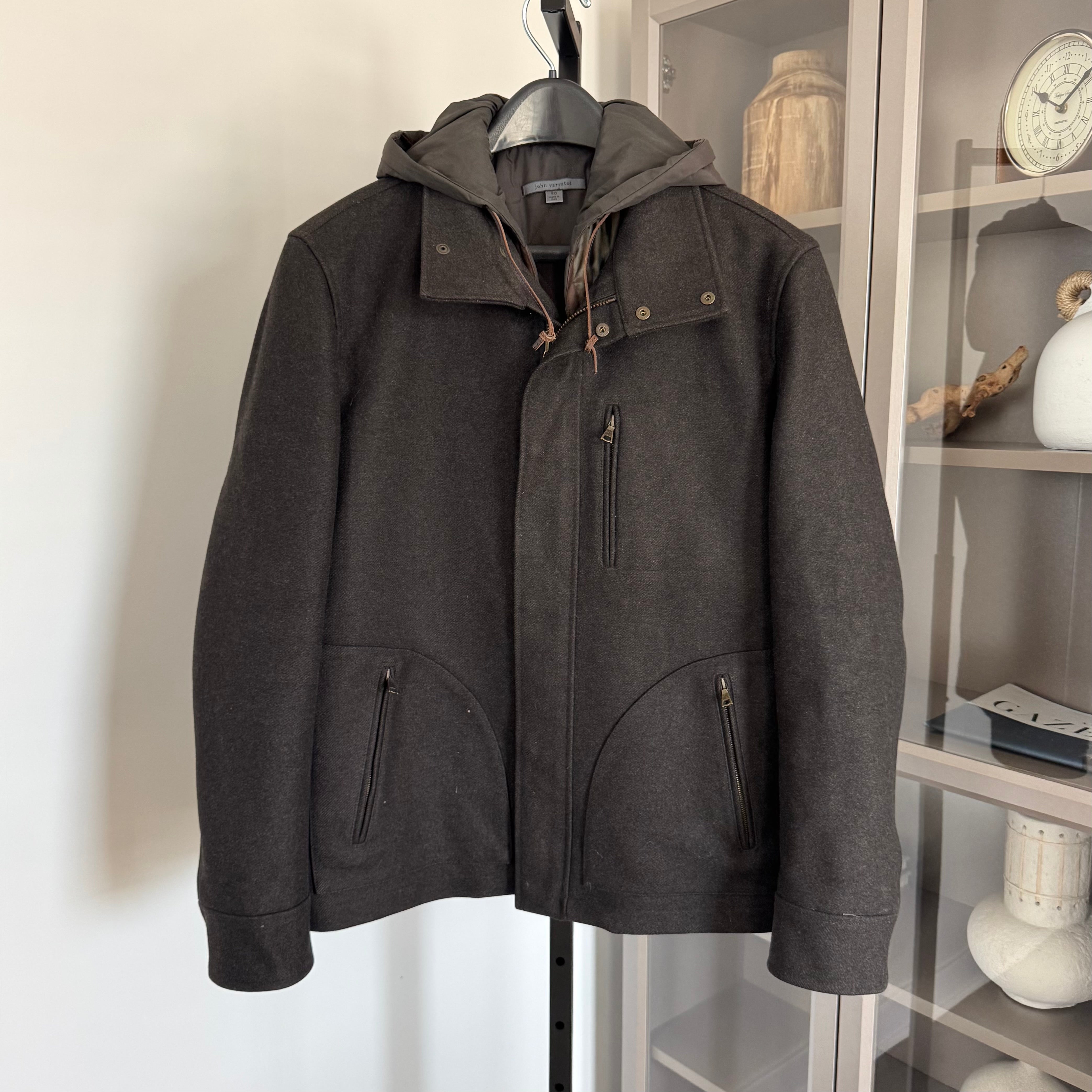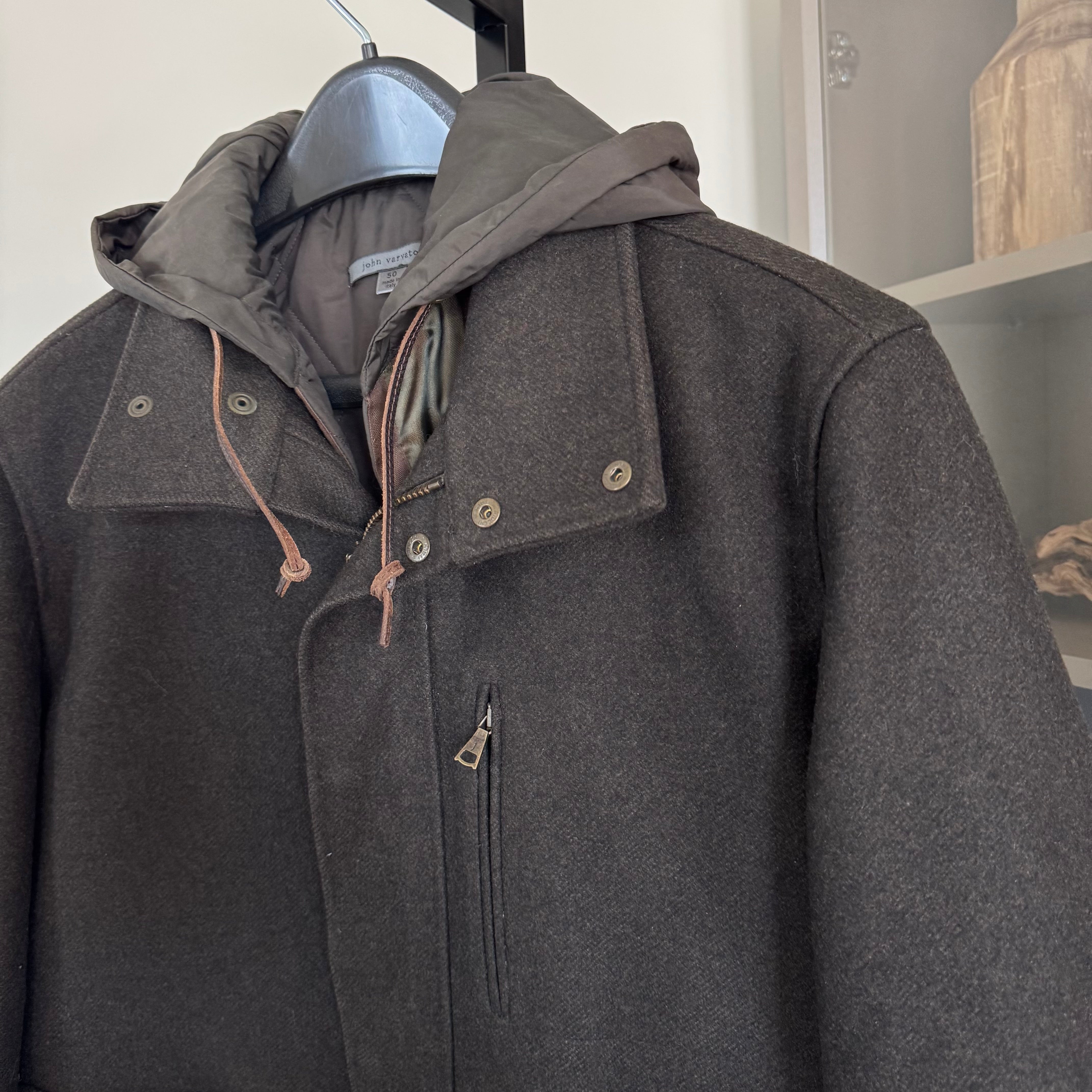 John Varvatos Brown Wool Cashmere Removable Quilted Lined Hooded Coat