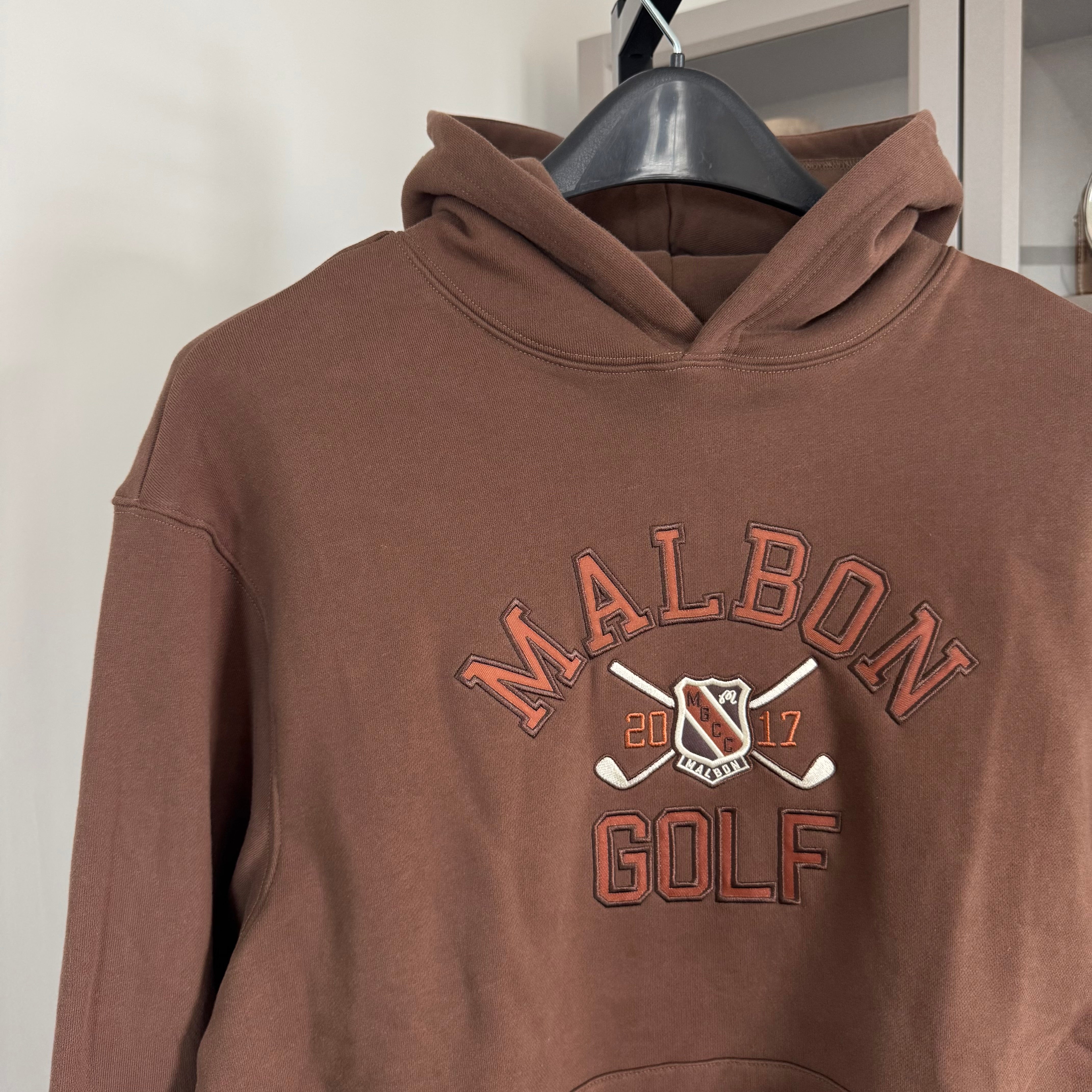 Malbon Golf Fesque Crest Embroidered Logo Hoodie Brown Sweatshirt