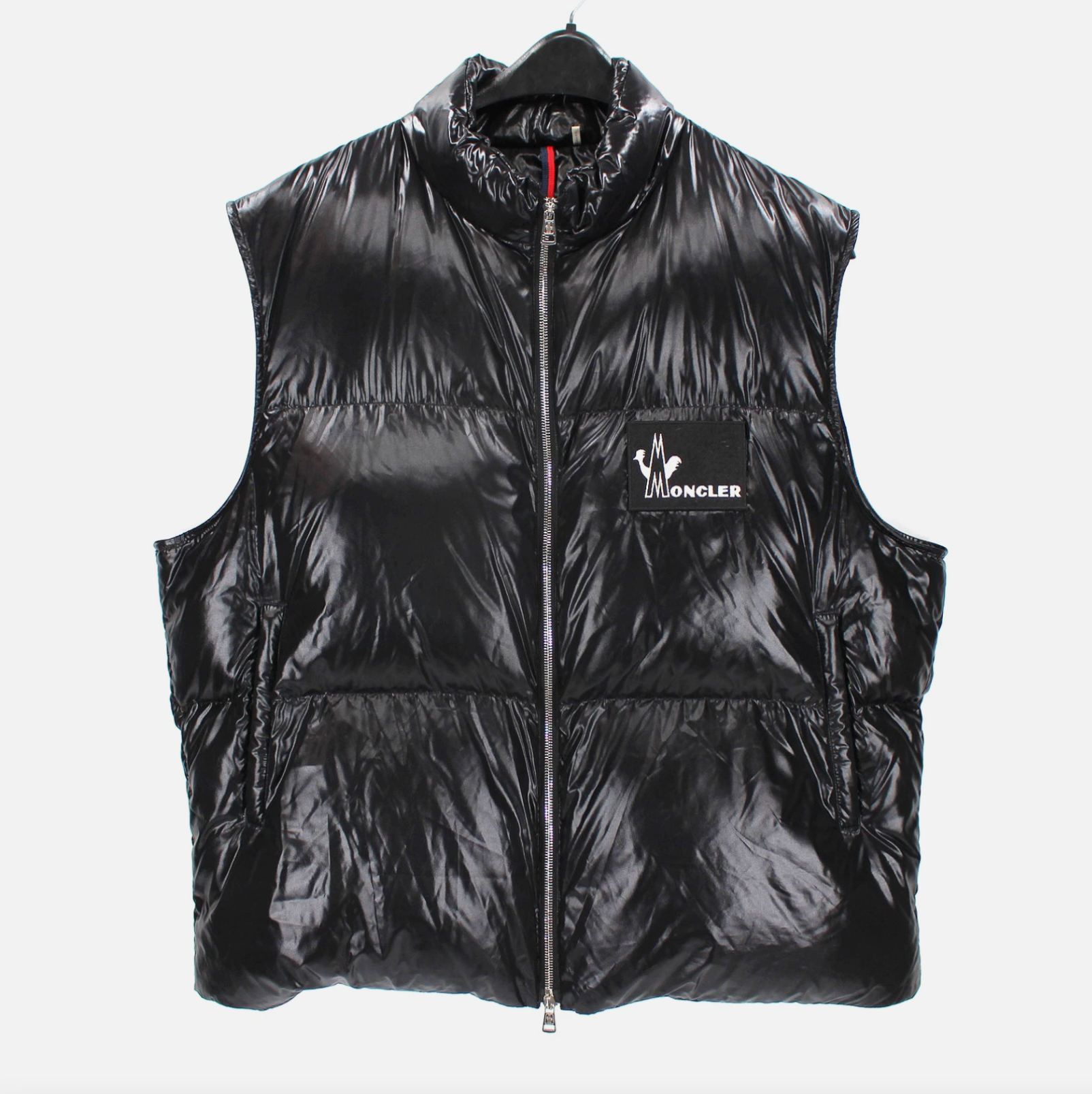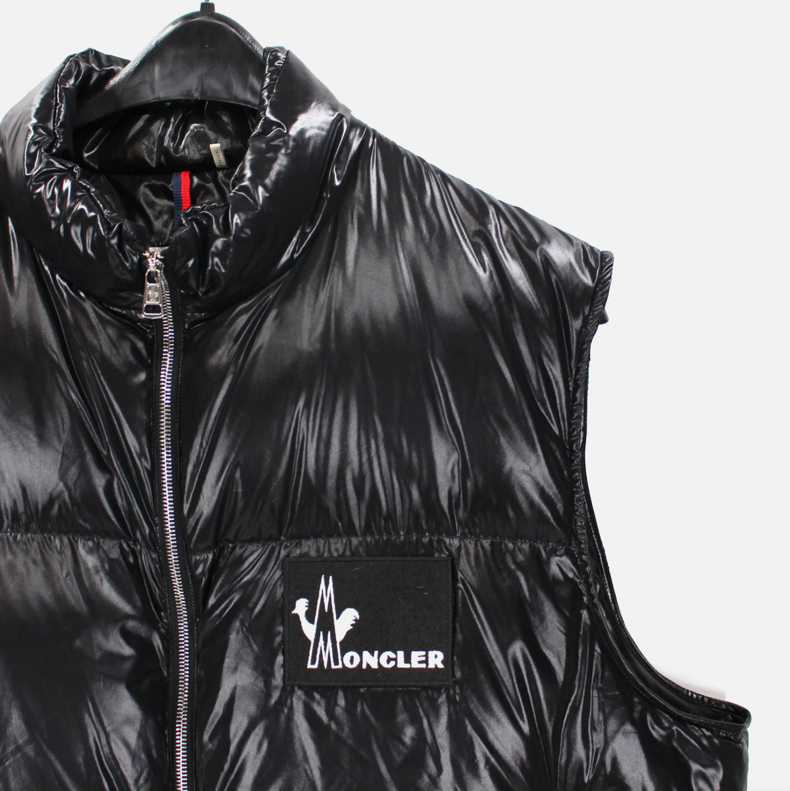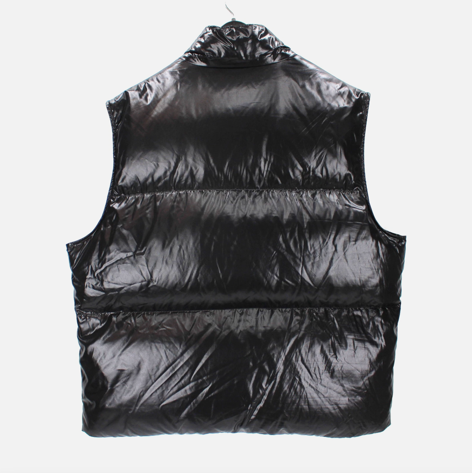 Men's Moncler Banker Logo Quilted Glossy Shell Down Gilet Black Puffer Vest.