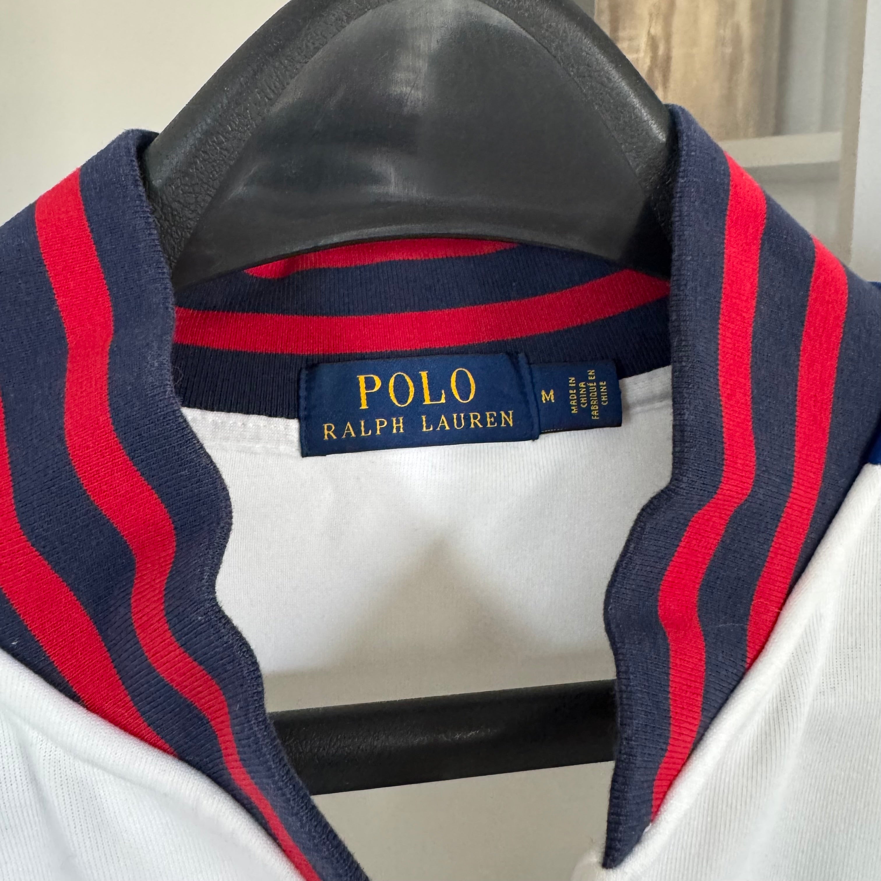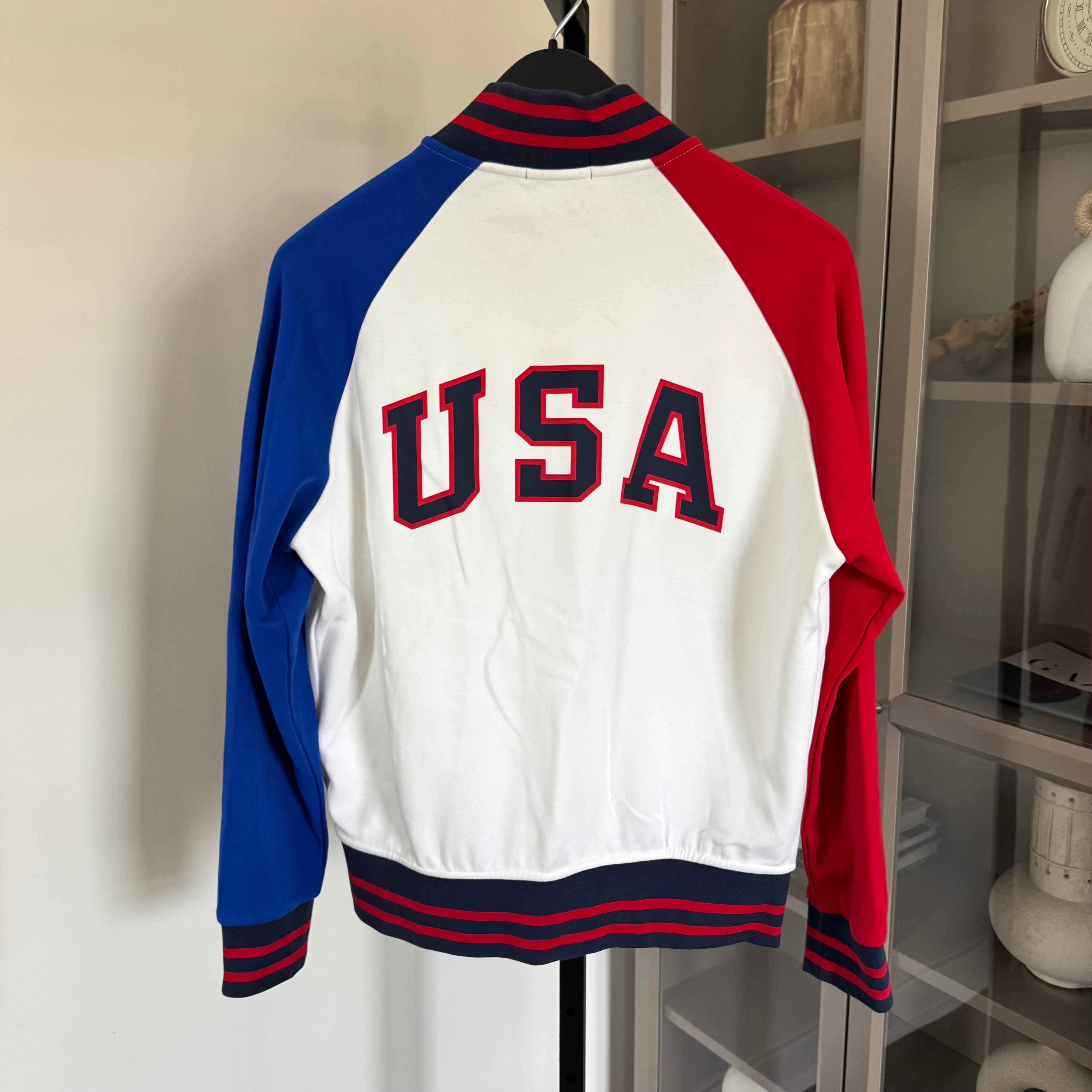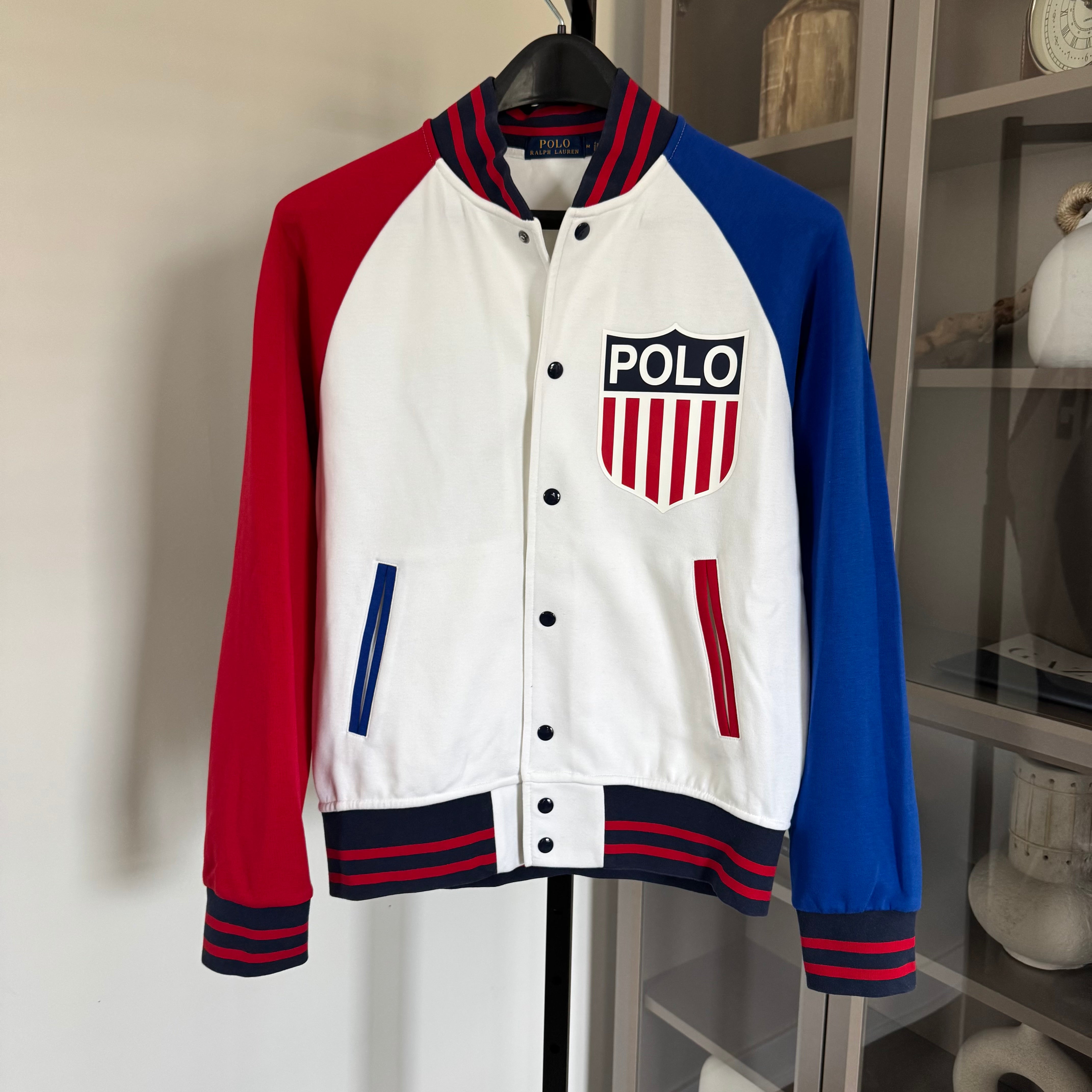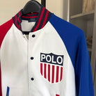 Polo Ralph Lauren Polo Shield USA Logo White Red Blue Trim Baseball Jacket