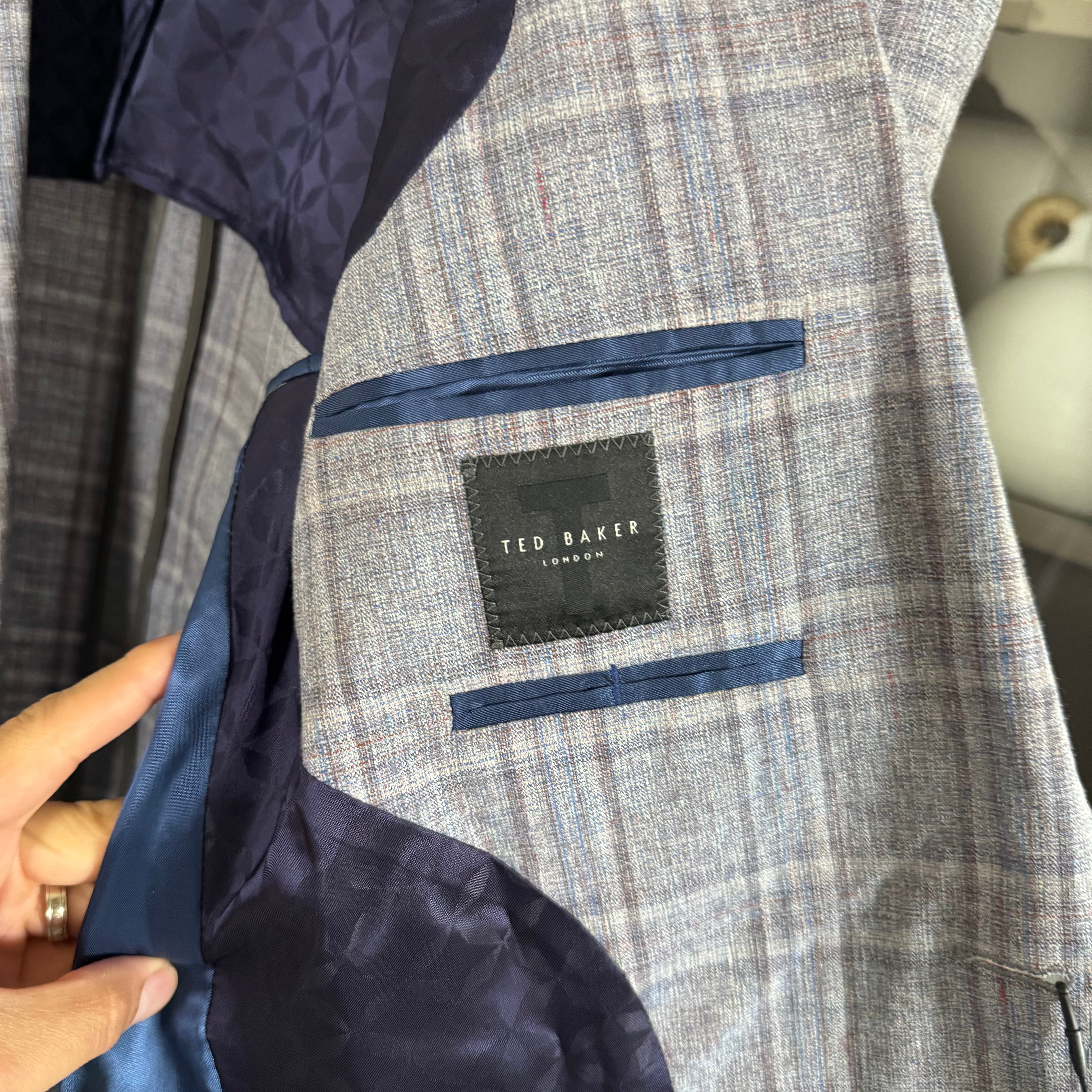 Ted Baker London Karl Lavender Plaid Single Breasted Blazer