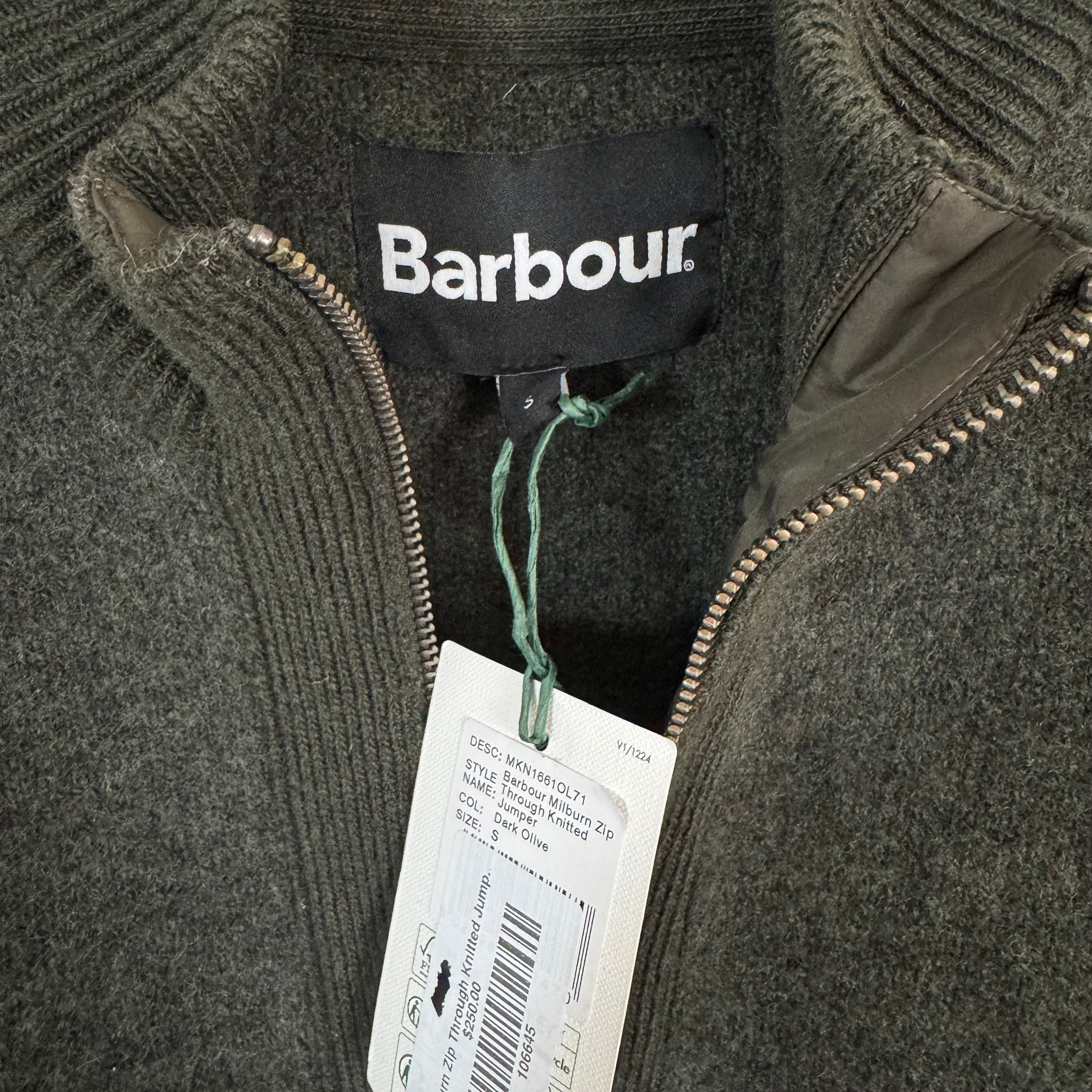 Barbour Milburn Zip Olive Jumper