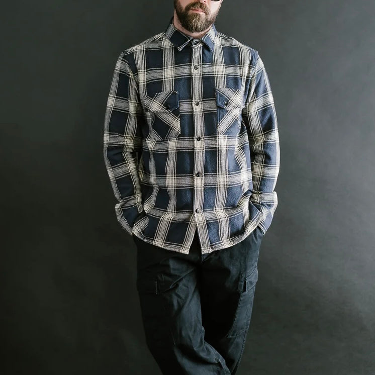 3sixteen Crosscut Flannel Midnight Navy Plaid Jacquard Weave Textured Shirt