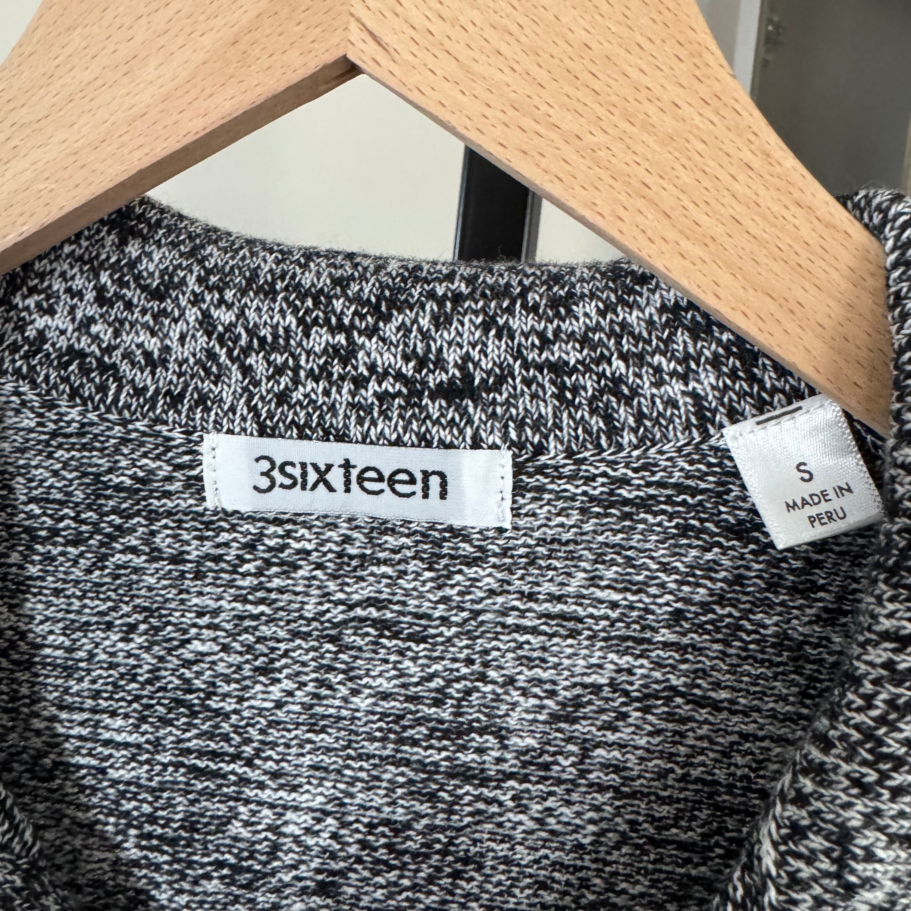 3sixteen Organic Cotton Black Marled Yarn Knit Short Sleeve Polo Shirt