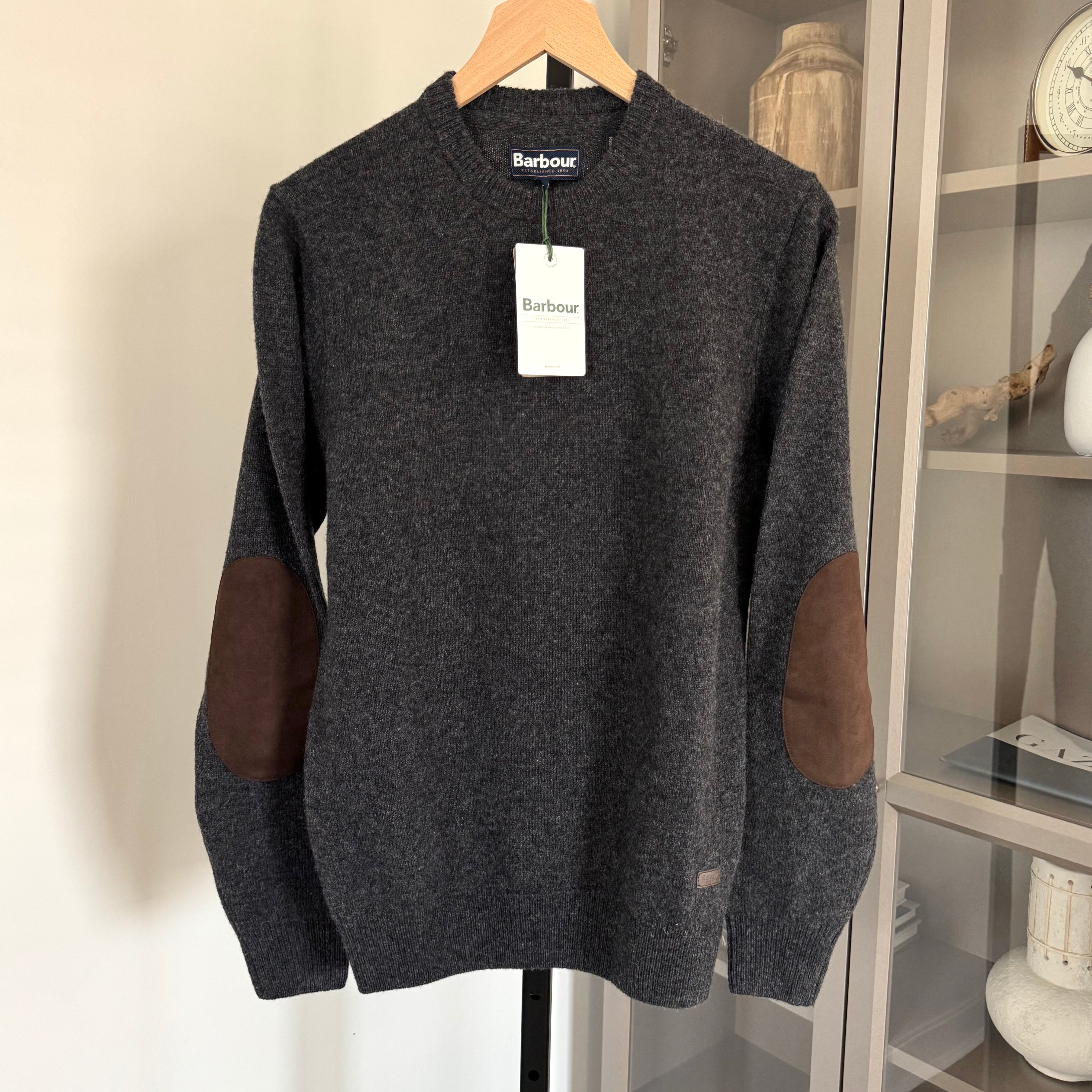 Barbour Charcoal Essential Elbow Patch Crewneck Sweater