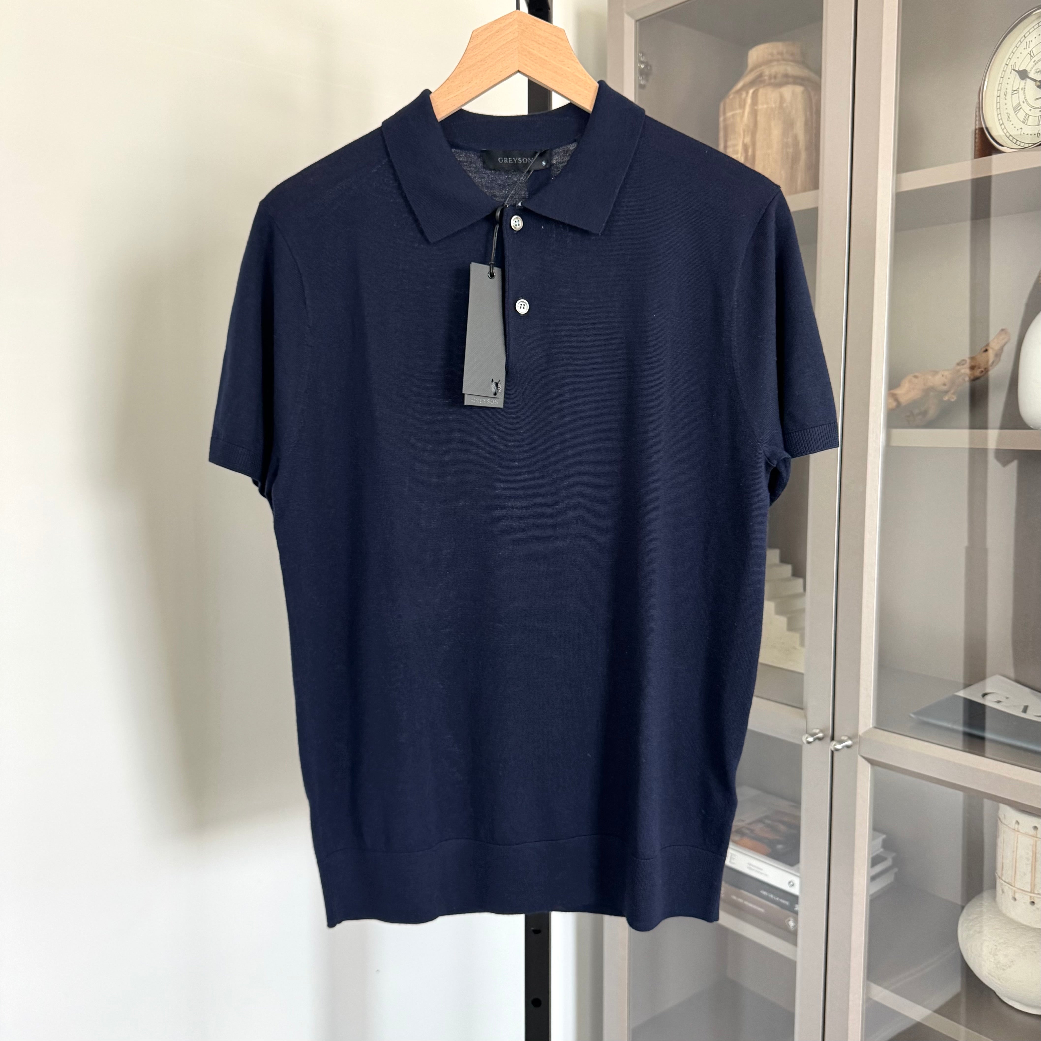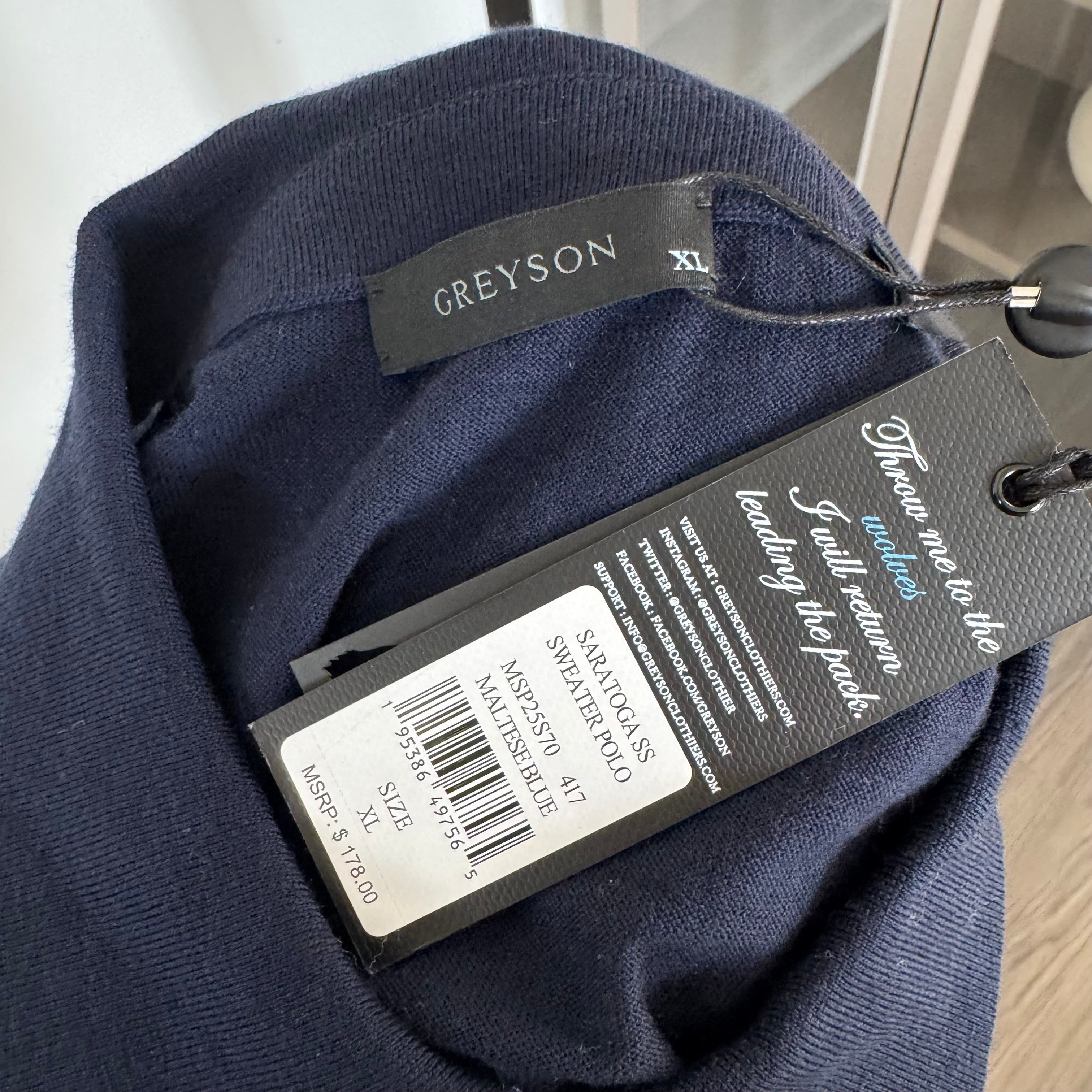 Greyson Saratoga Short Sleeve Sweater Knit Maltese Blue Polo Shirt