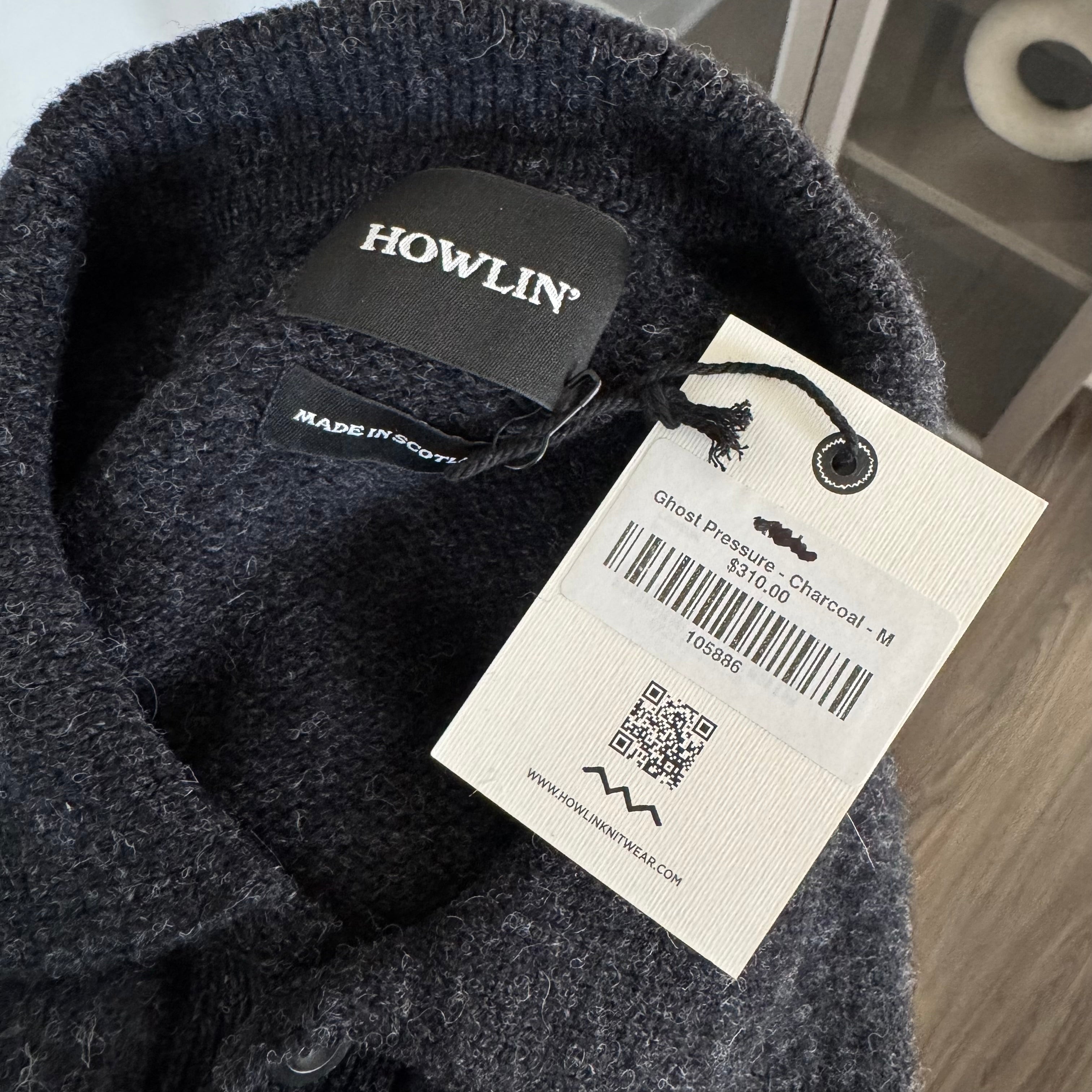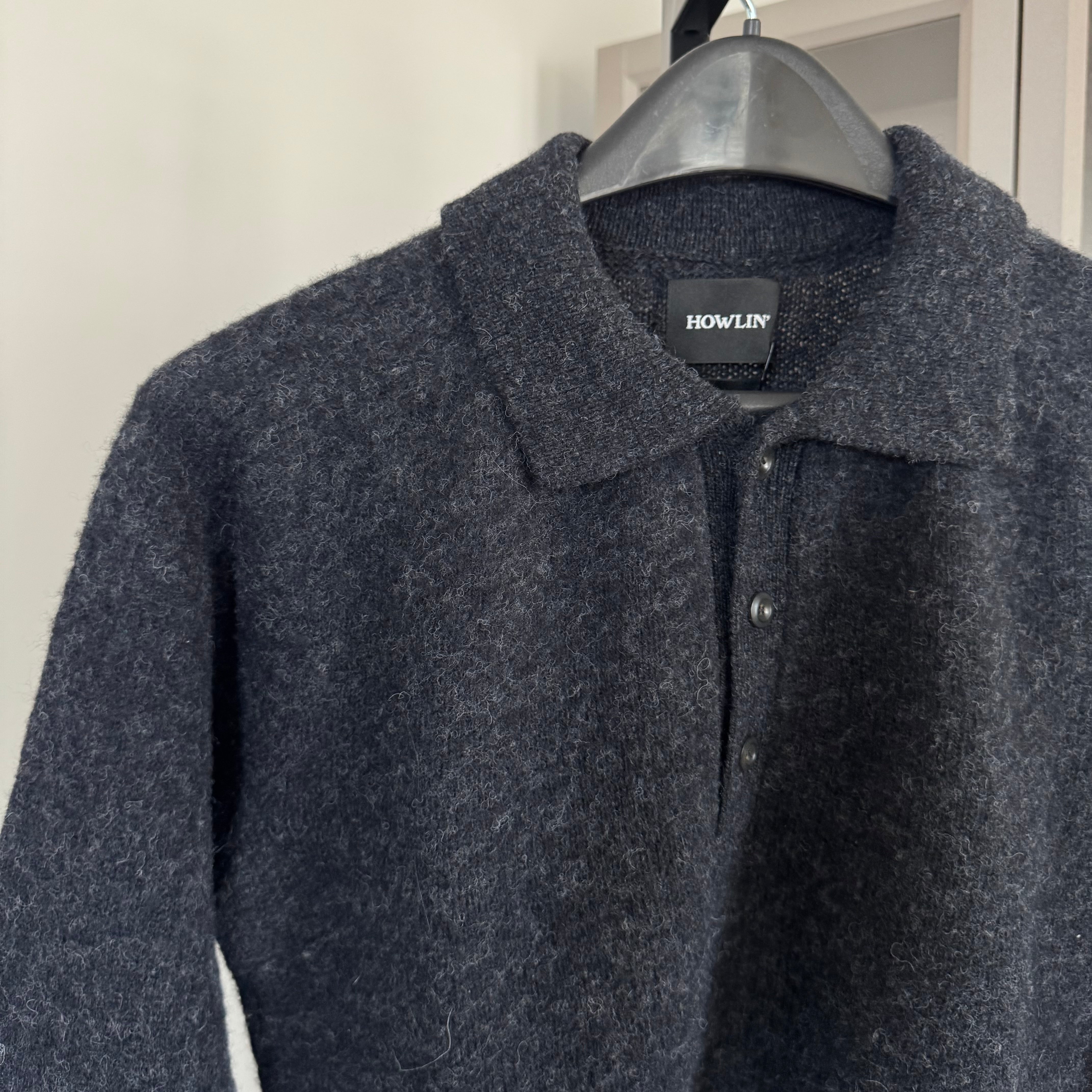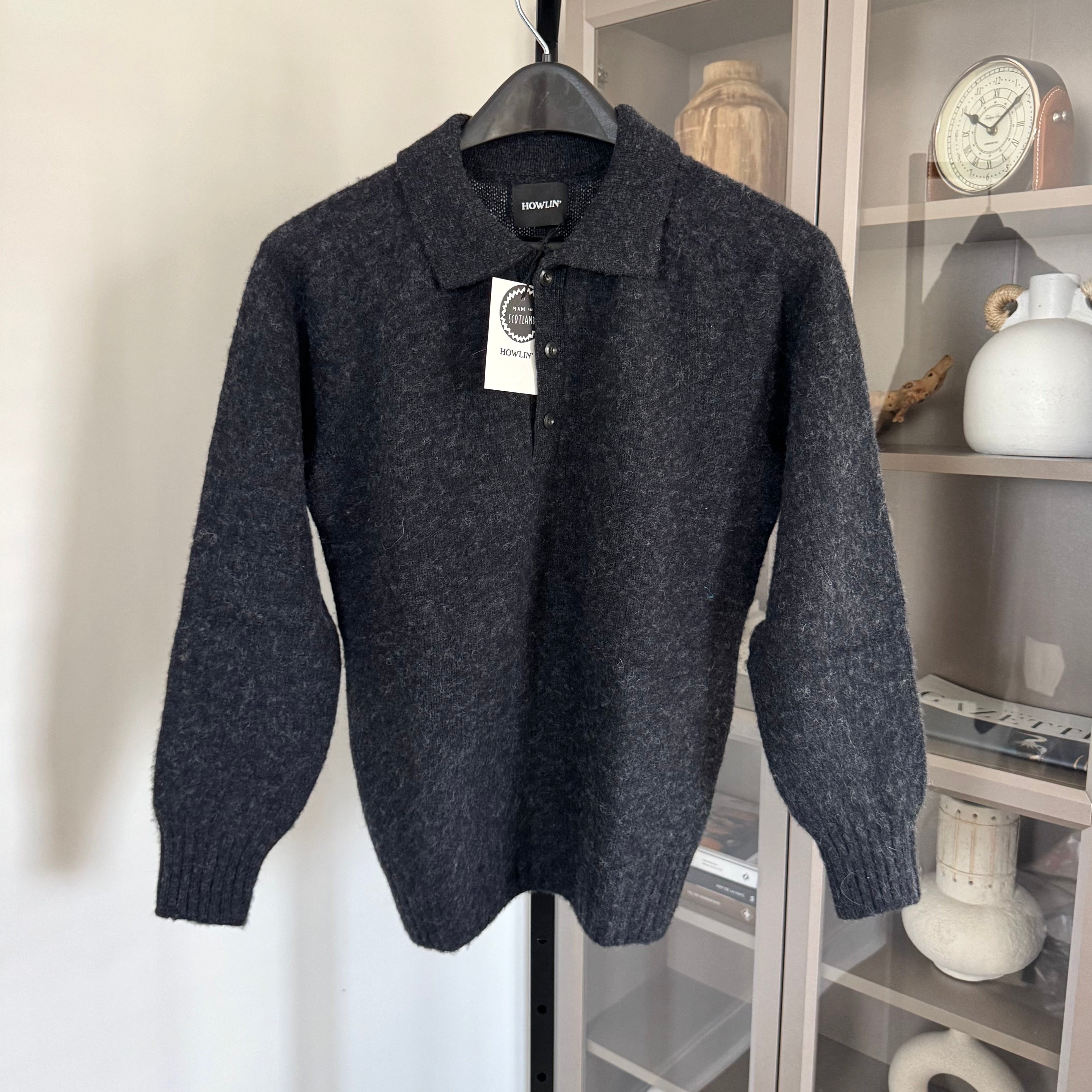 Howlin Ghost Pressure Brushed Scottish Wool Charcoal Polo Sweater