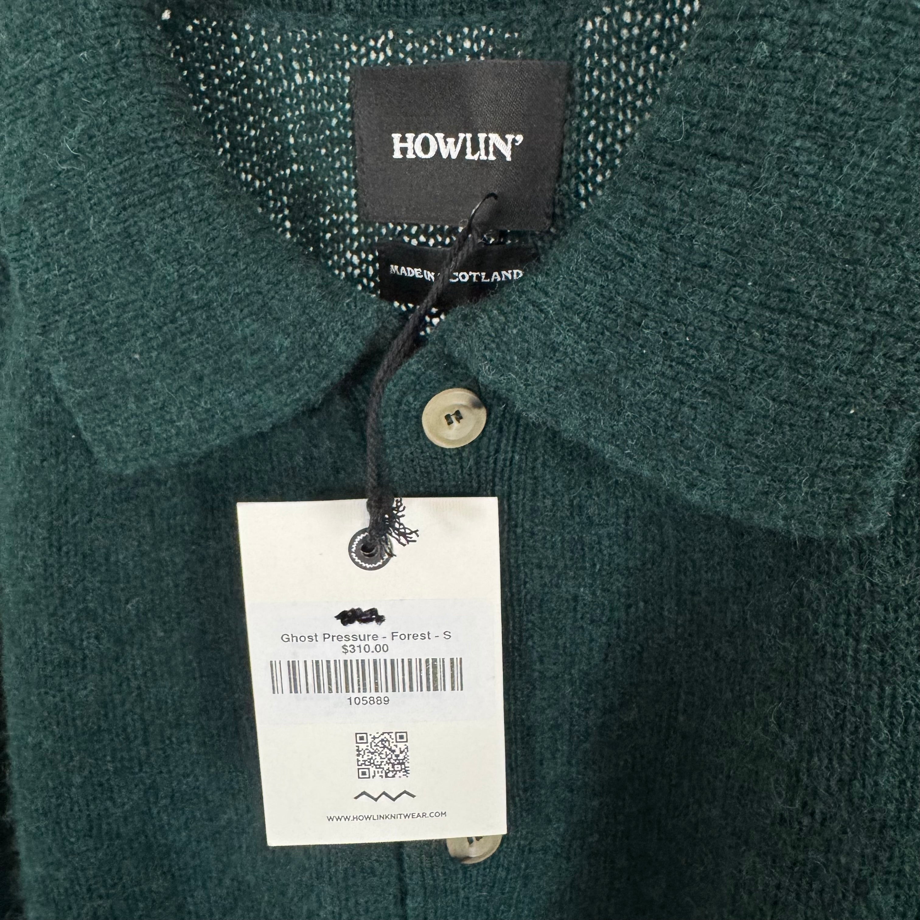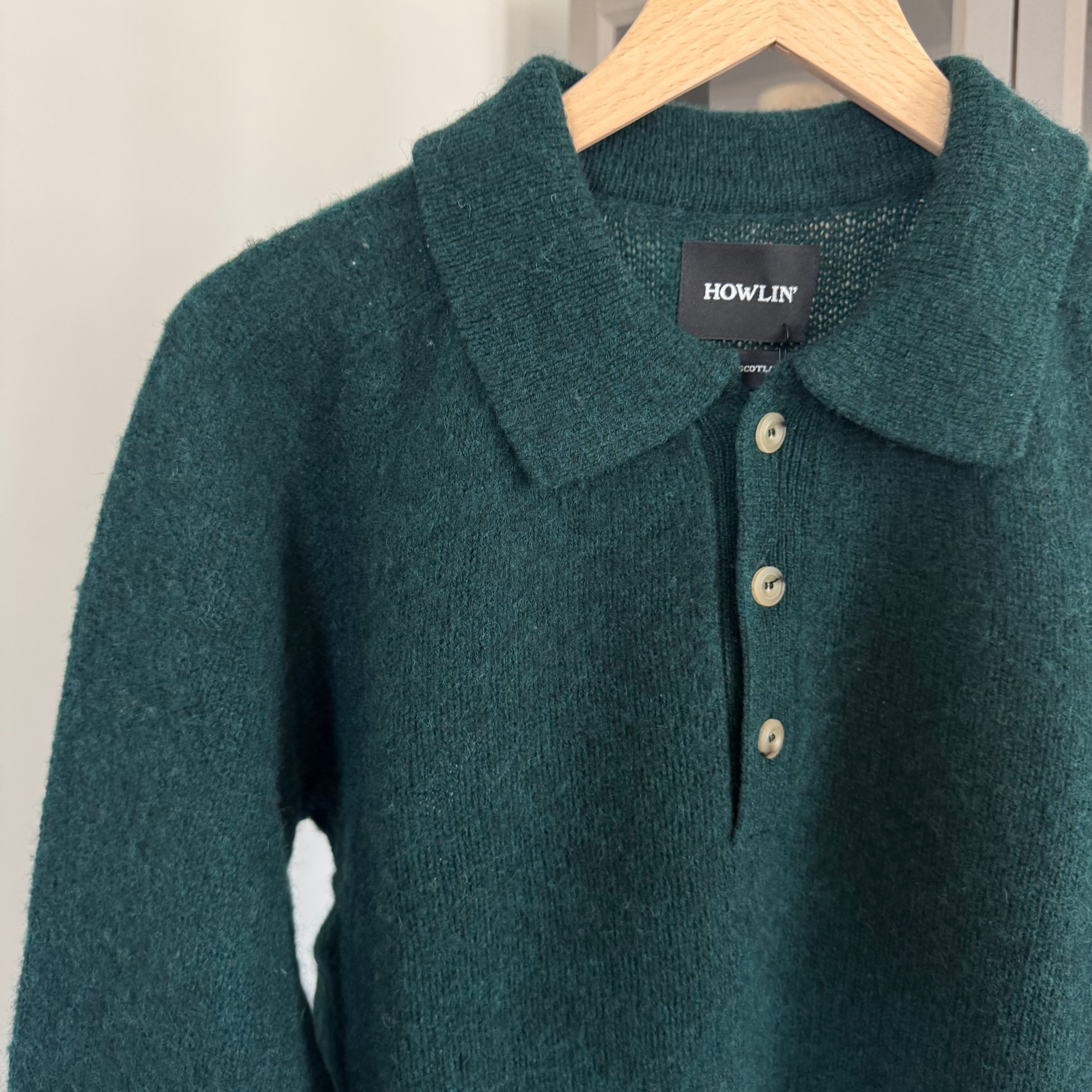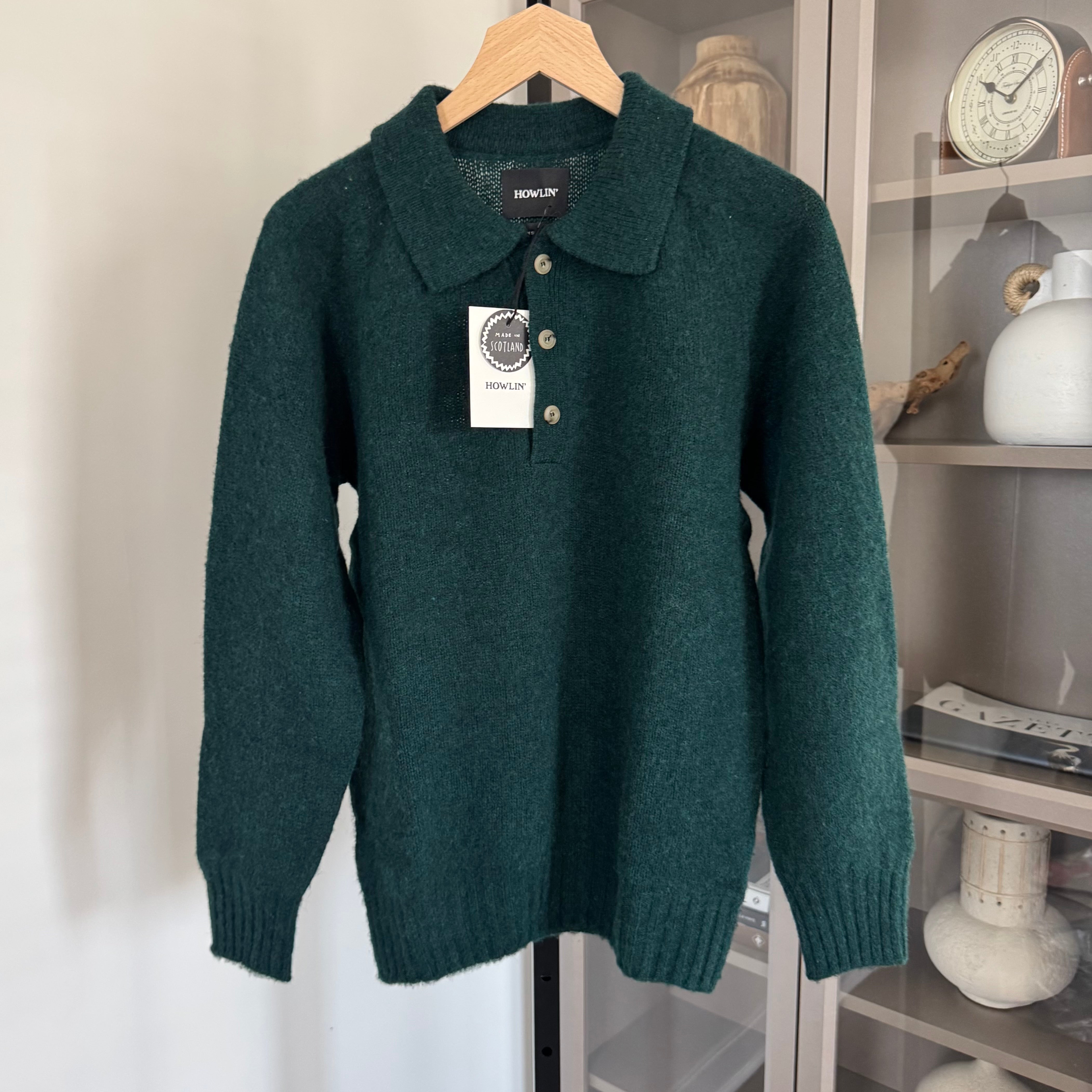 Howlin Ghost Pressure Brushed Scottish Wool Forest Green Polo Sweater