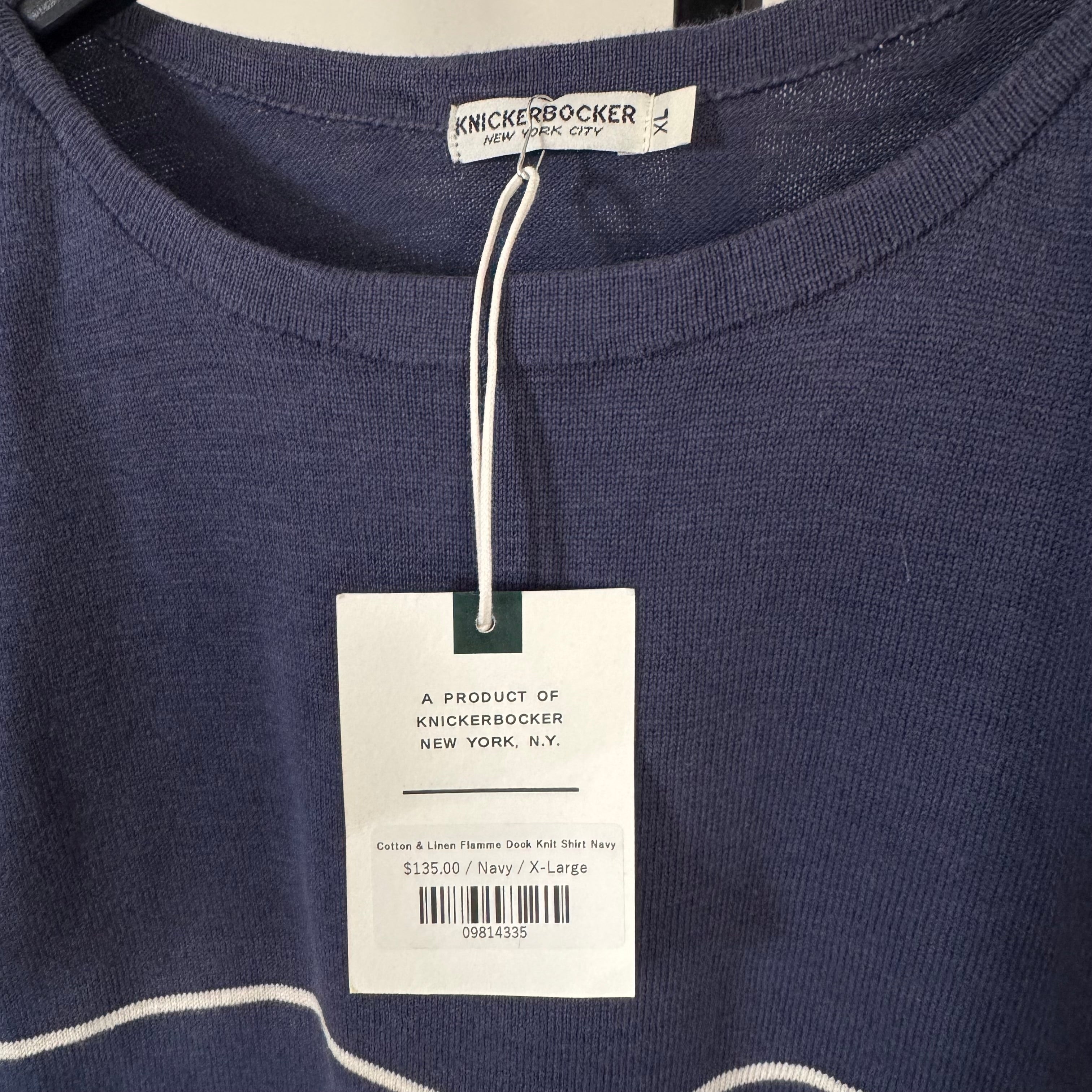 Knickerbocker Cotton Flamme Dock Knit Stripe Navy Short Sleeve Shirt