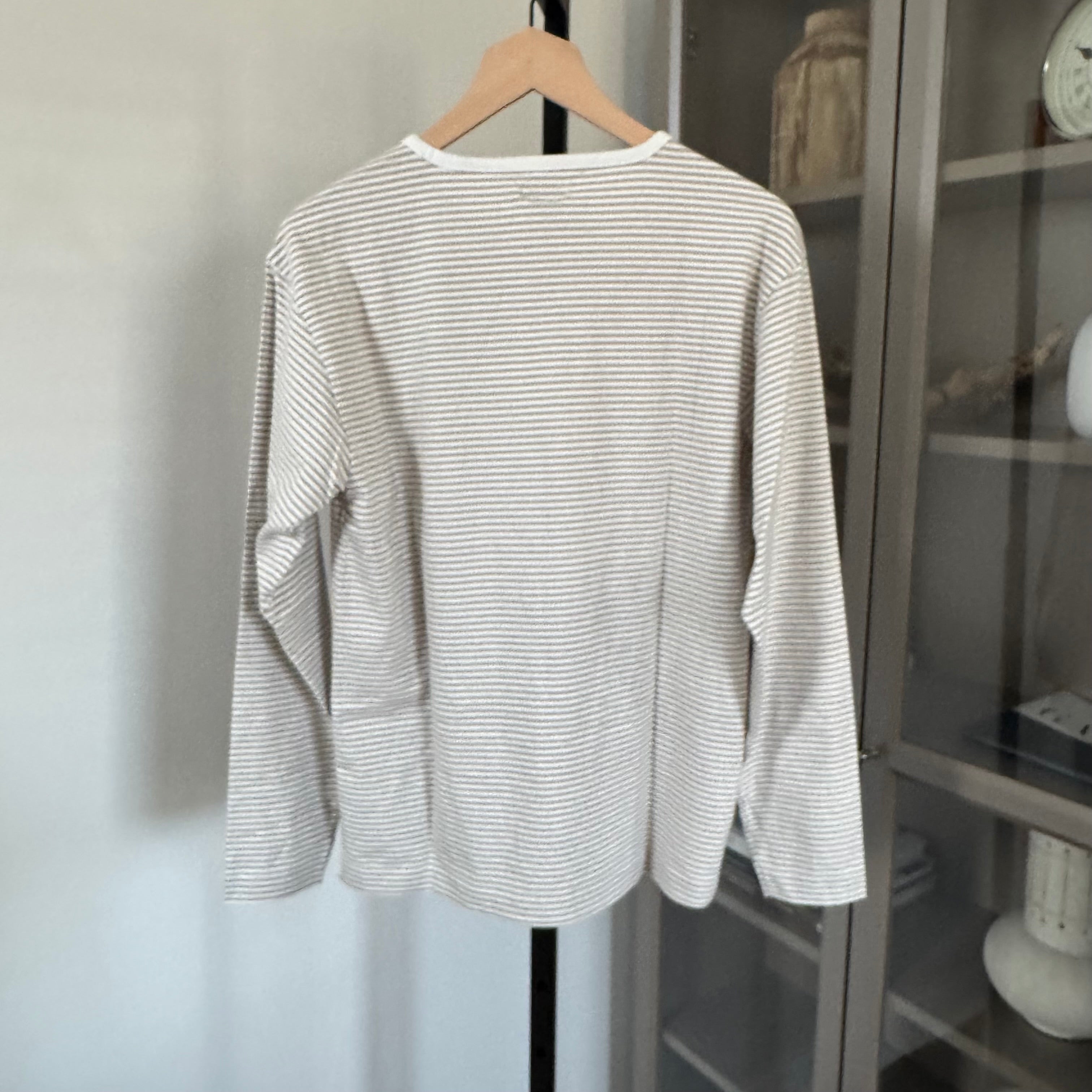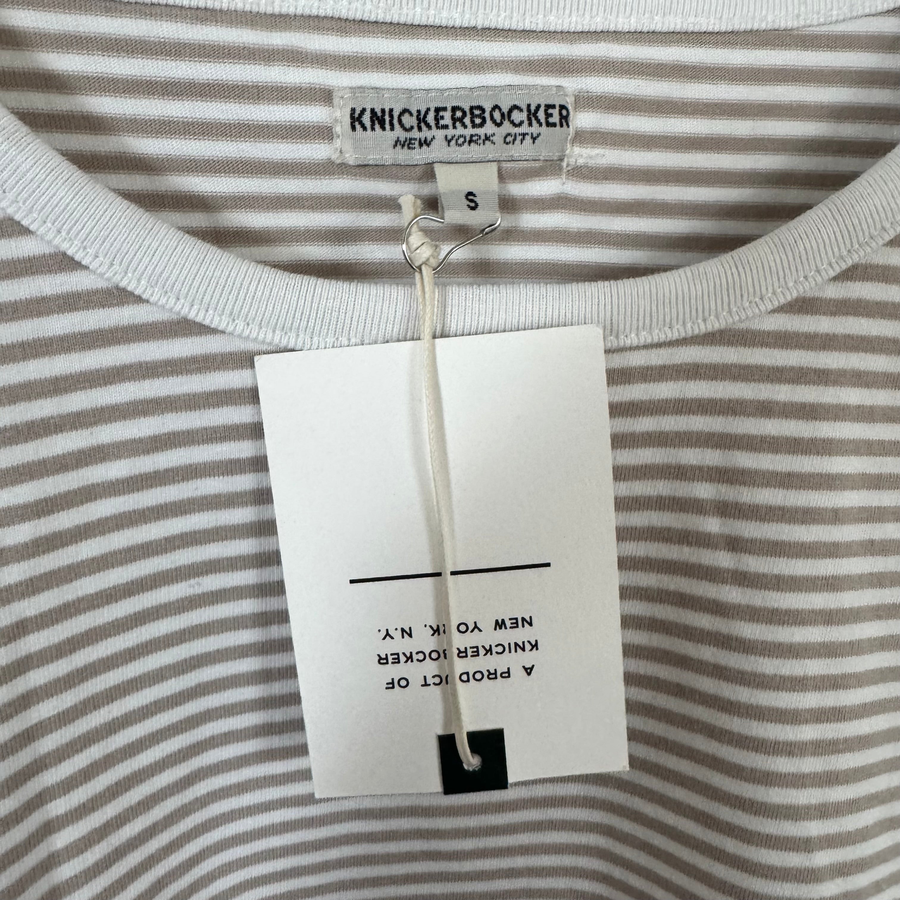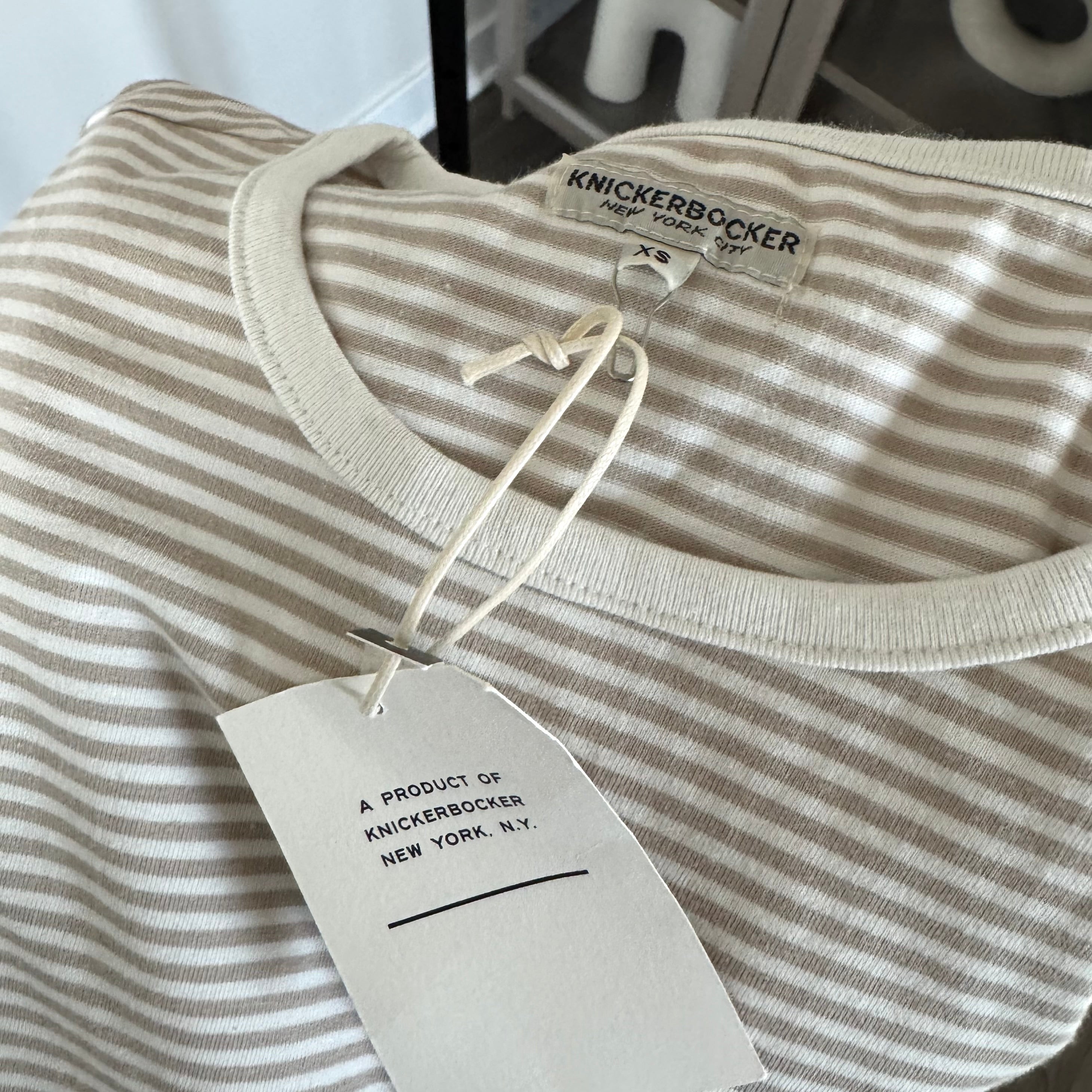 Knickerbocker Mod Stripe White Tan Long Sleeve Cotton Shirt