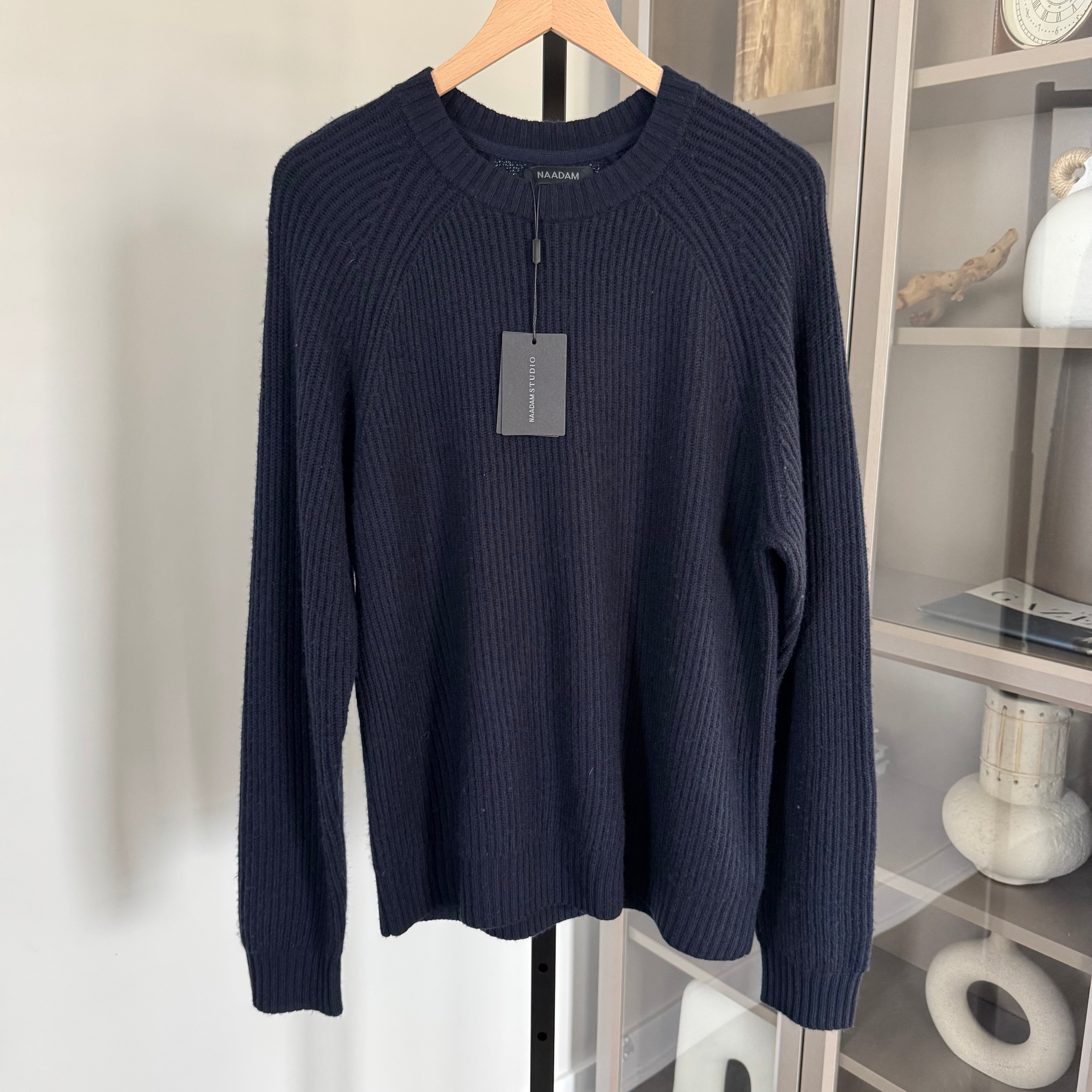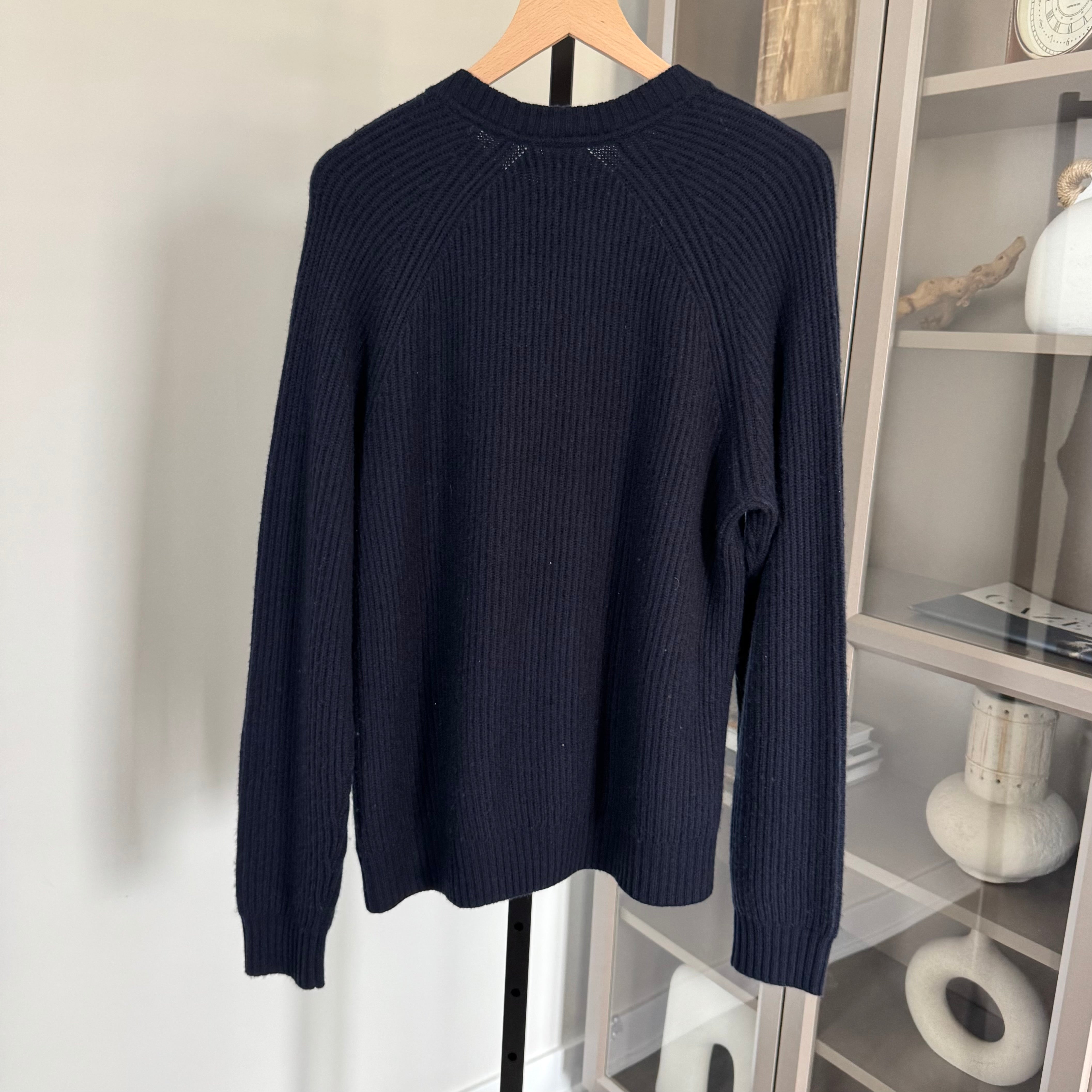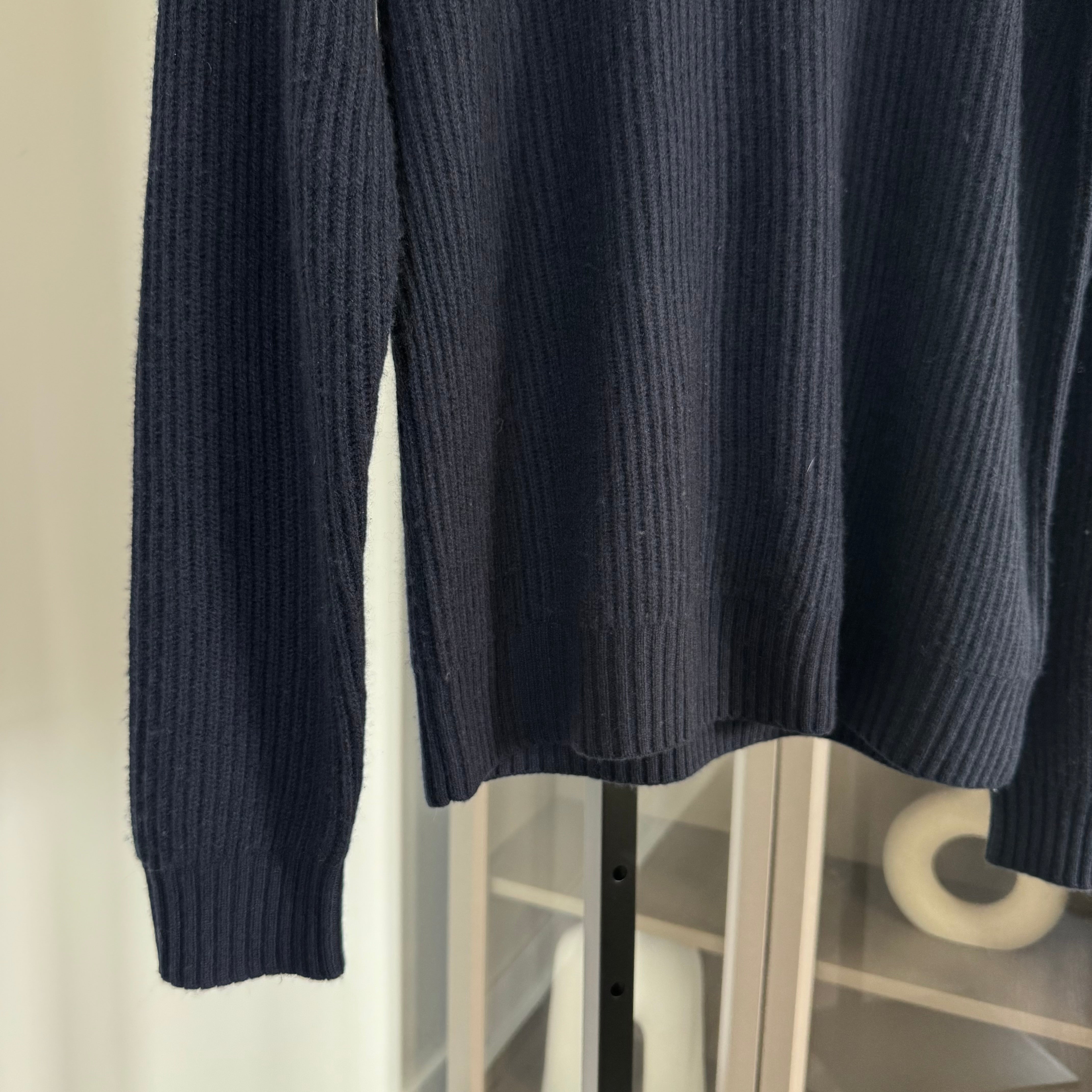 Naadam Luxe Wool Cashmere Navy Rib Knit Crewneck Sweater