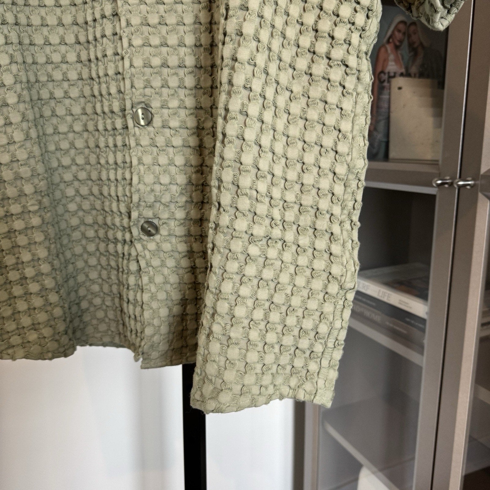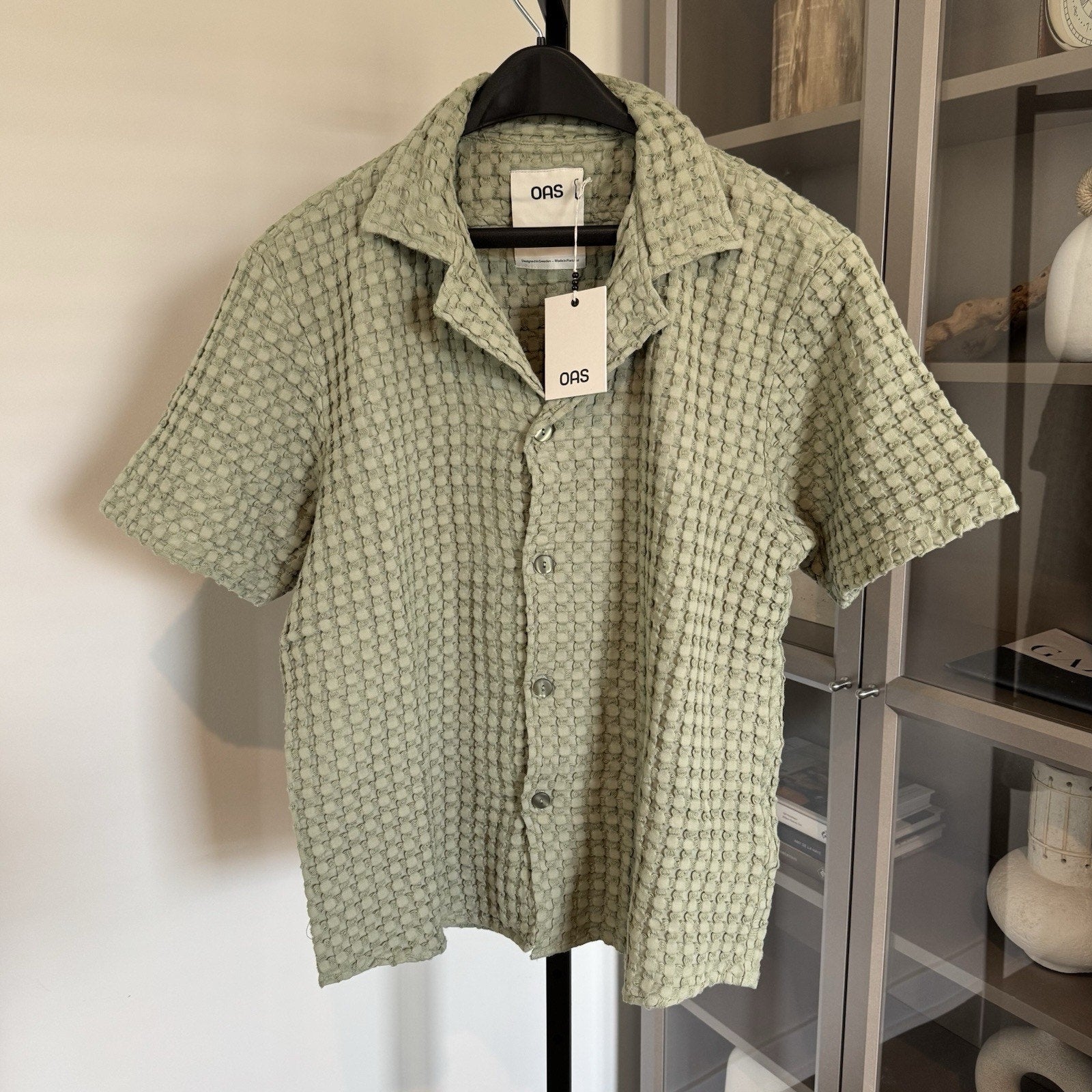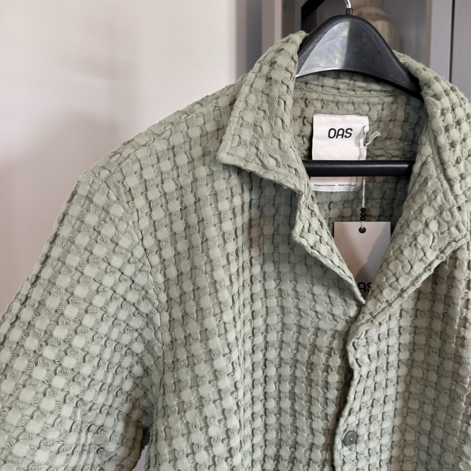OAS Cuba Waffle Cotton Knit Dusty Green Short Sleeve Button Up Shirt