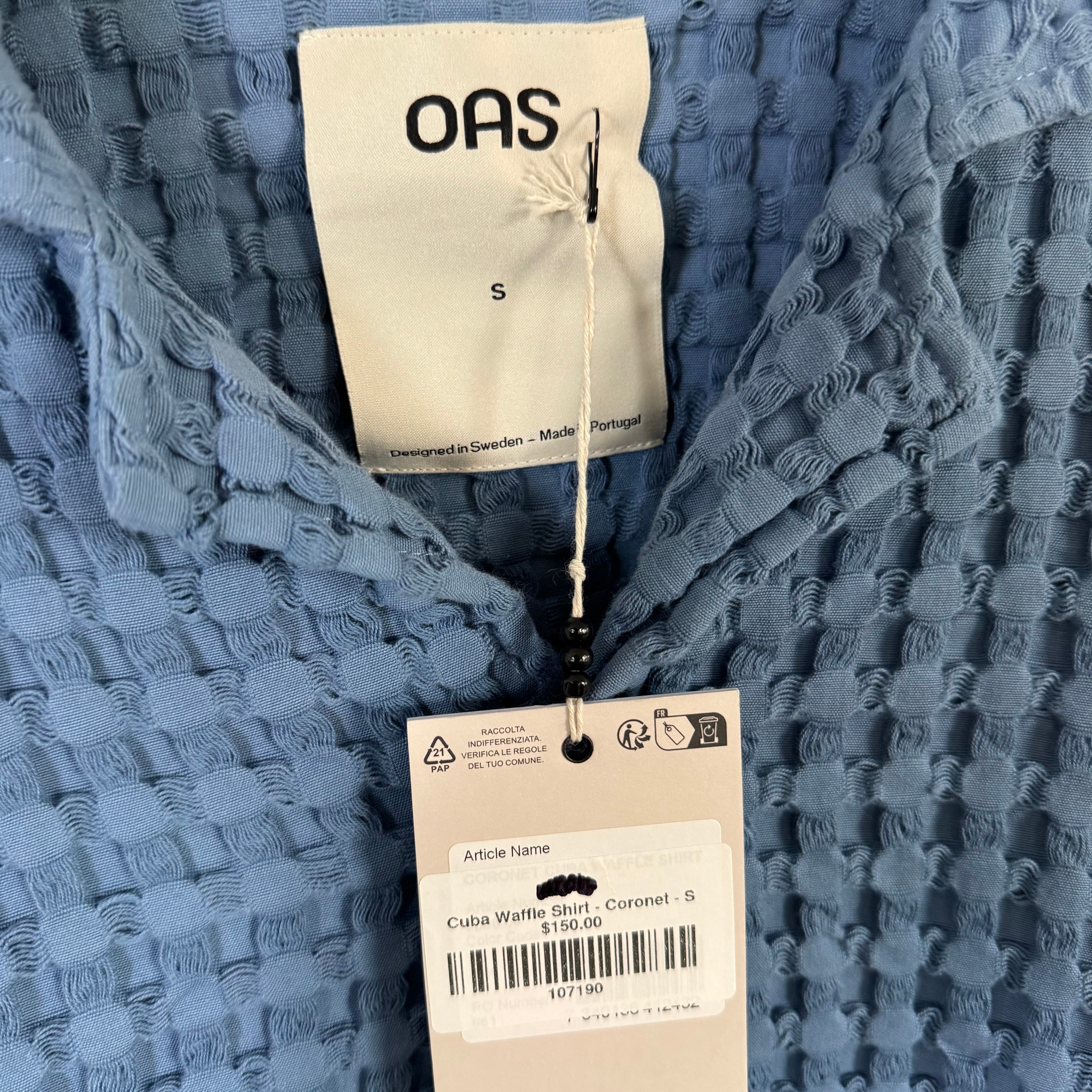 OAS Cuba Waffle Knit Classic Fit Coronet Blue Short Sleeve Shirt
